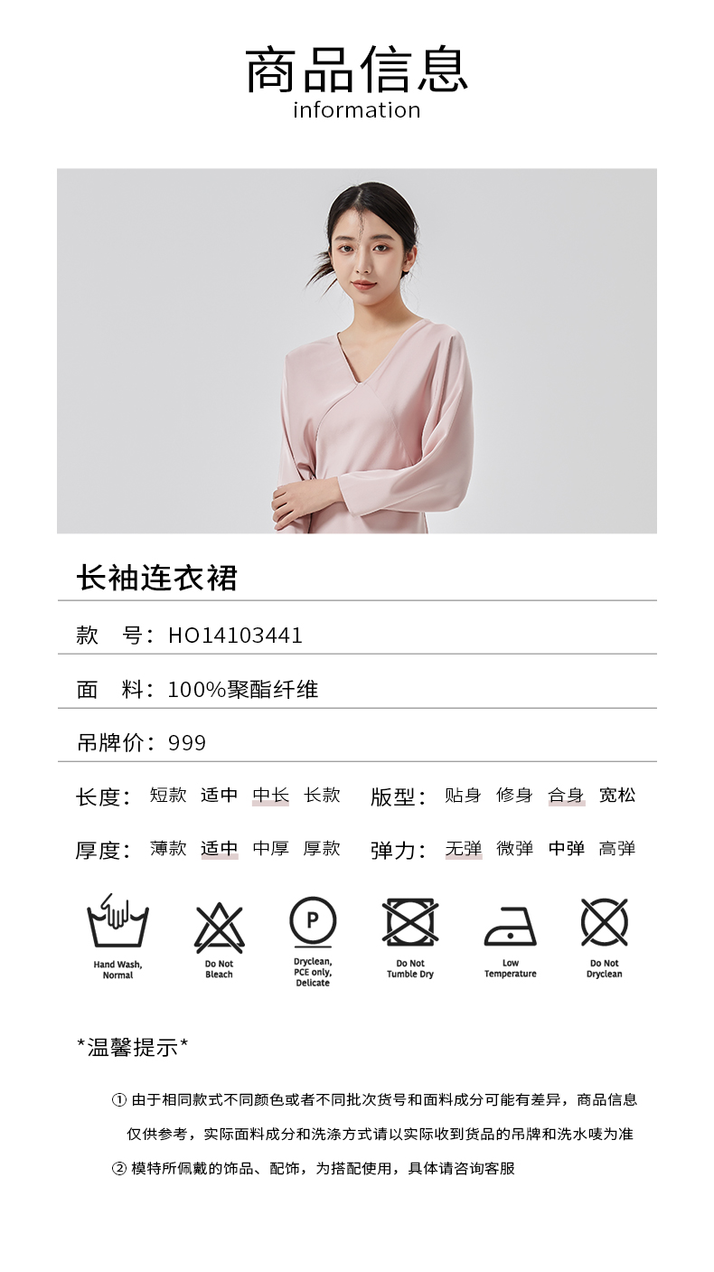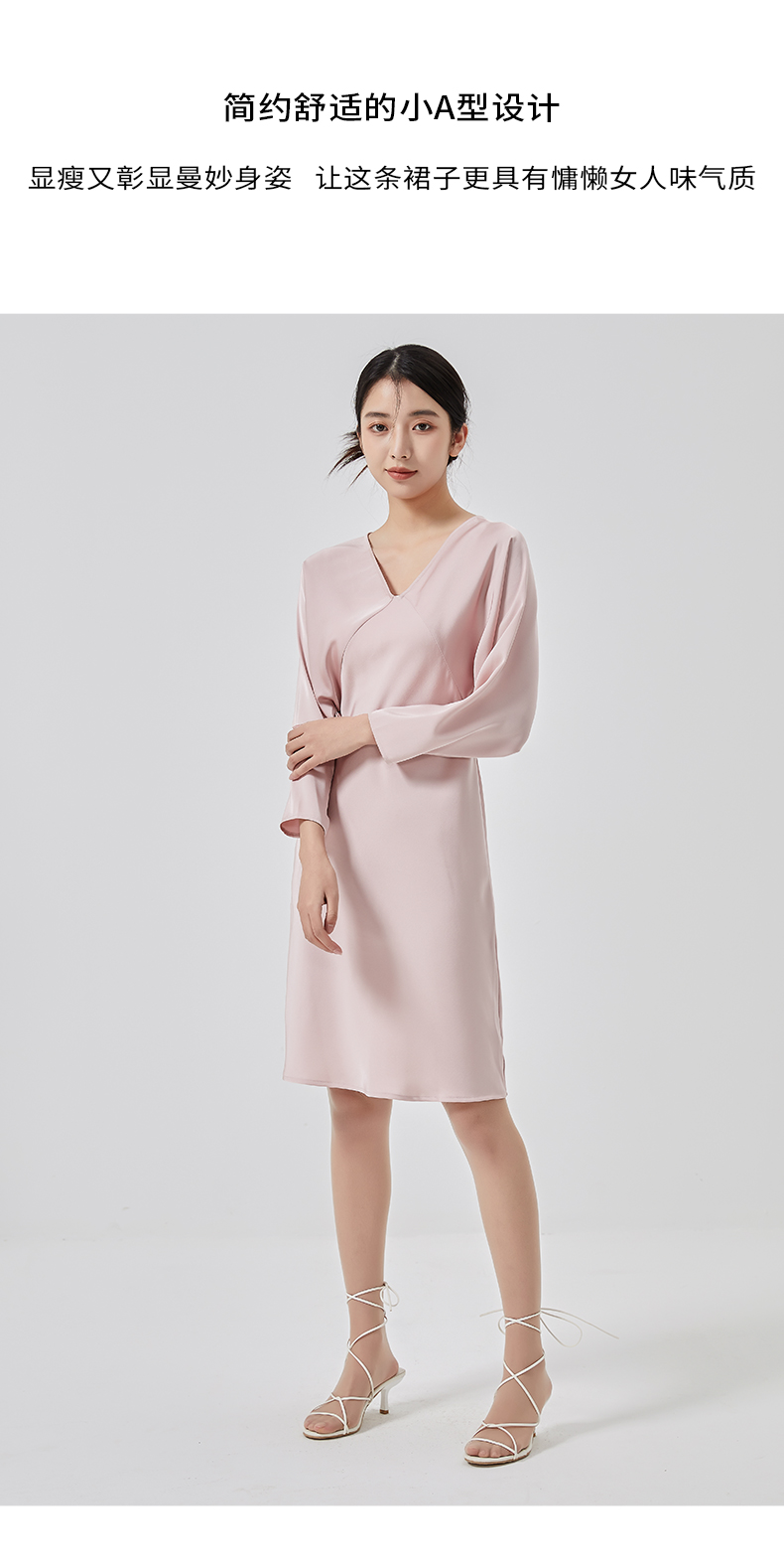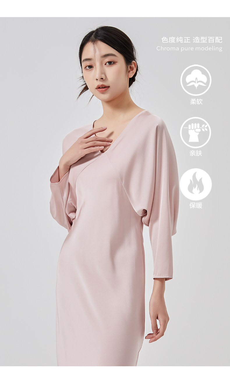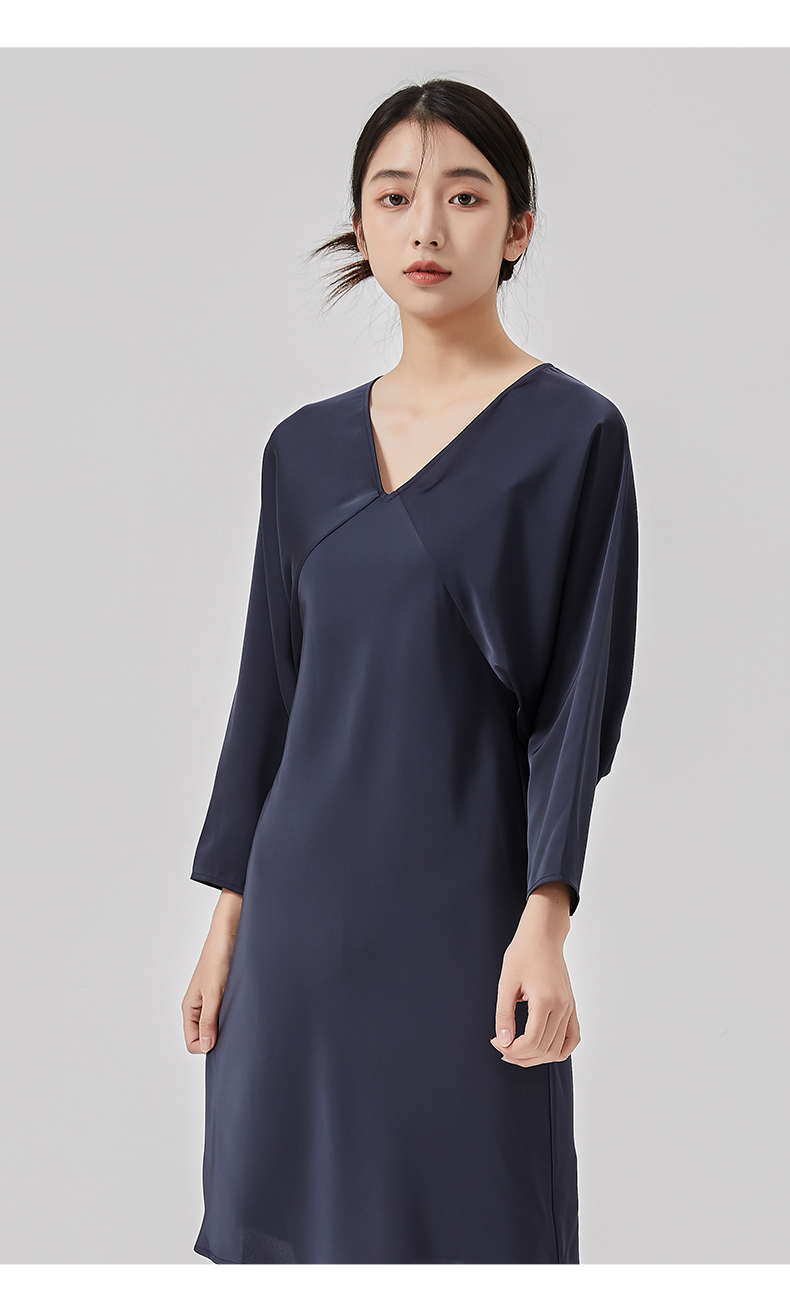 oldcolour2023春新款高级V领显瘦七分袖中长款连衣裙女HO14103441