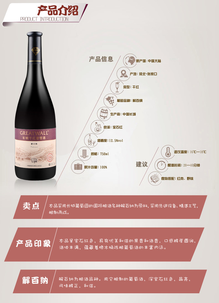 中粮长城钻石橡木桶解百纳干红葡萄酒