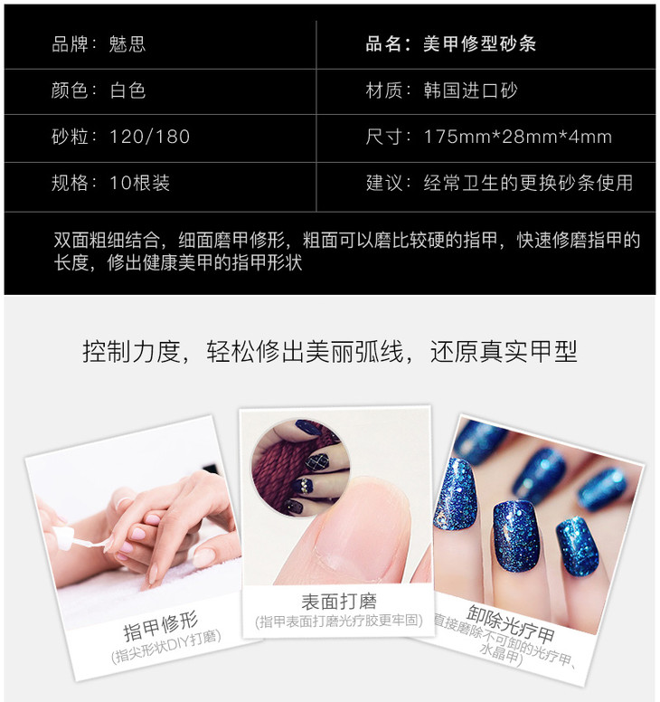 魅思 菱形挫条10条装(进口砂,可水洗,不掉砂超级好用)