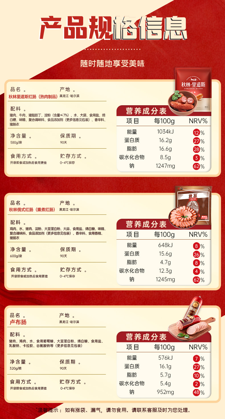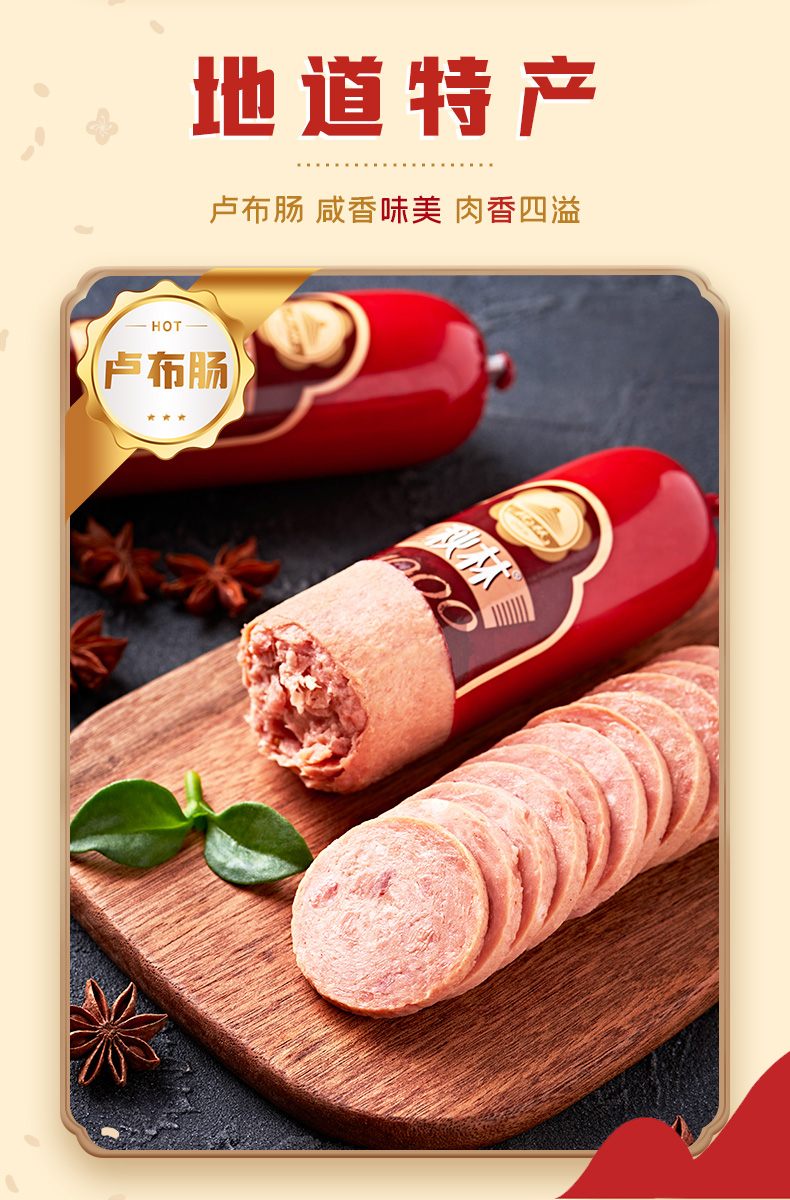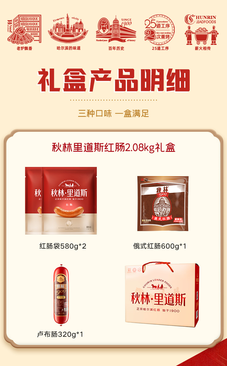 秋林里道斯2.08kg年货红肠礼盒【红肠580g*2+ 俄式600*1+ 卢布肠320g*1】