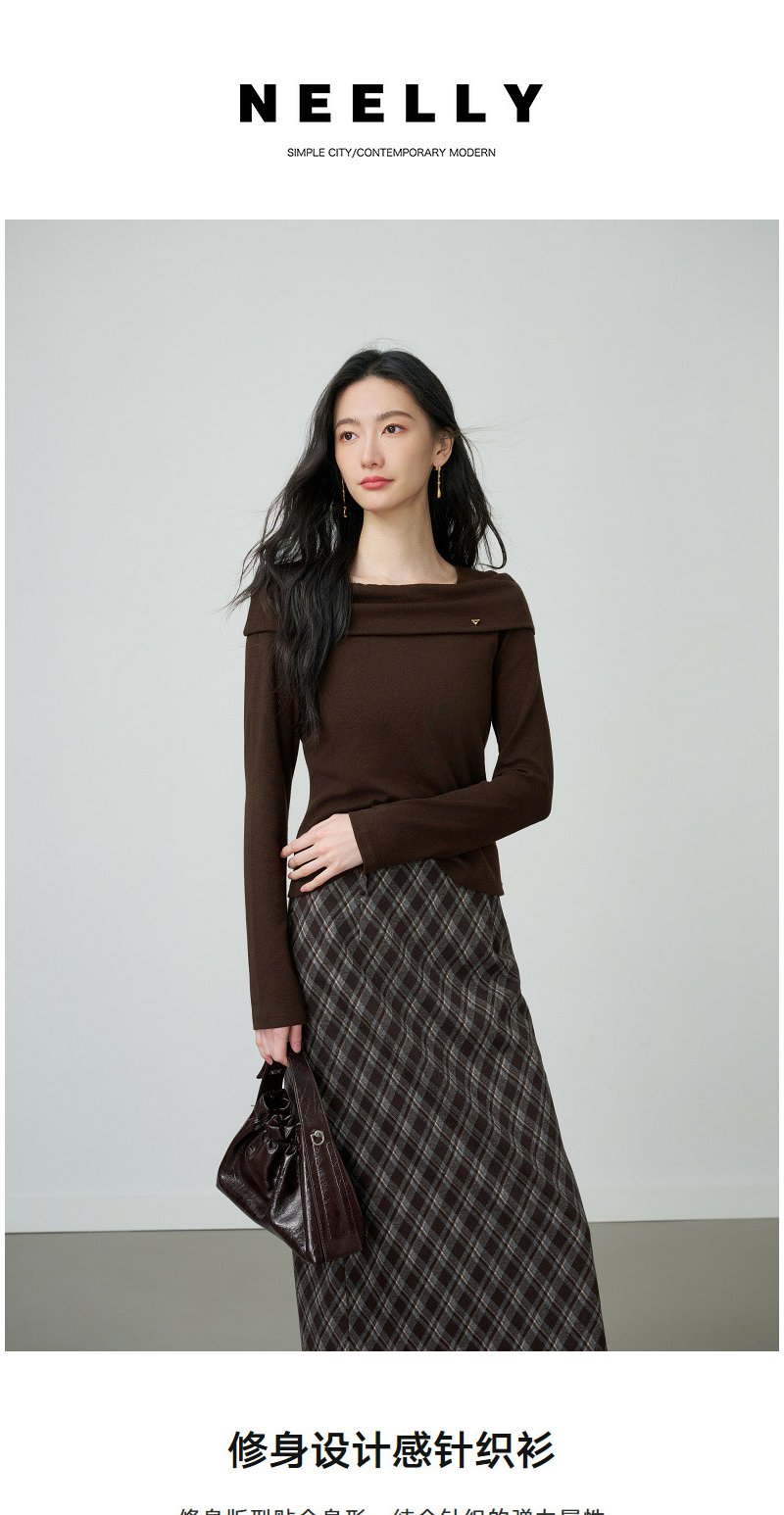 NEELLY纳俪商场同款春季新款时髦修身设计感针织衫女显瘦亲肤上衣N26014R07702
