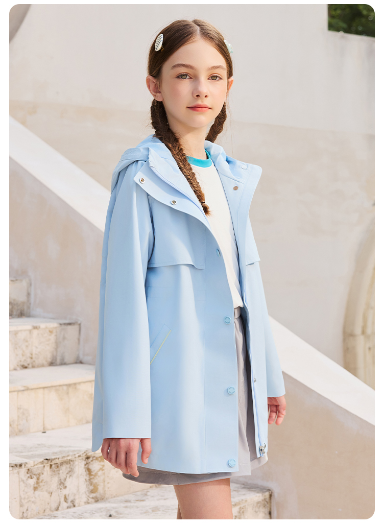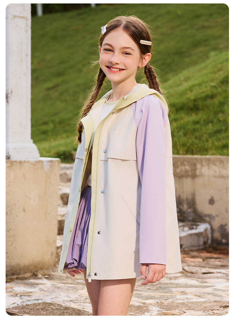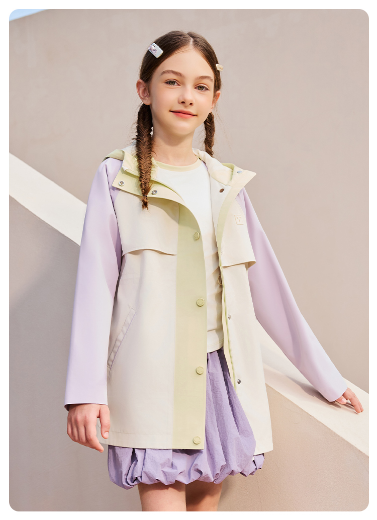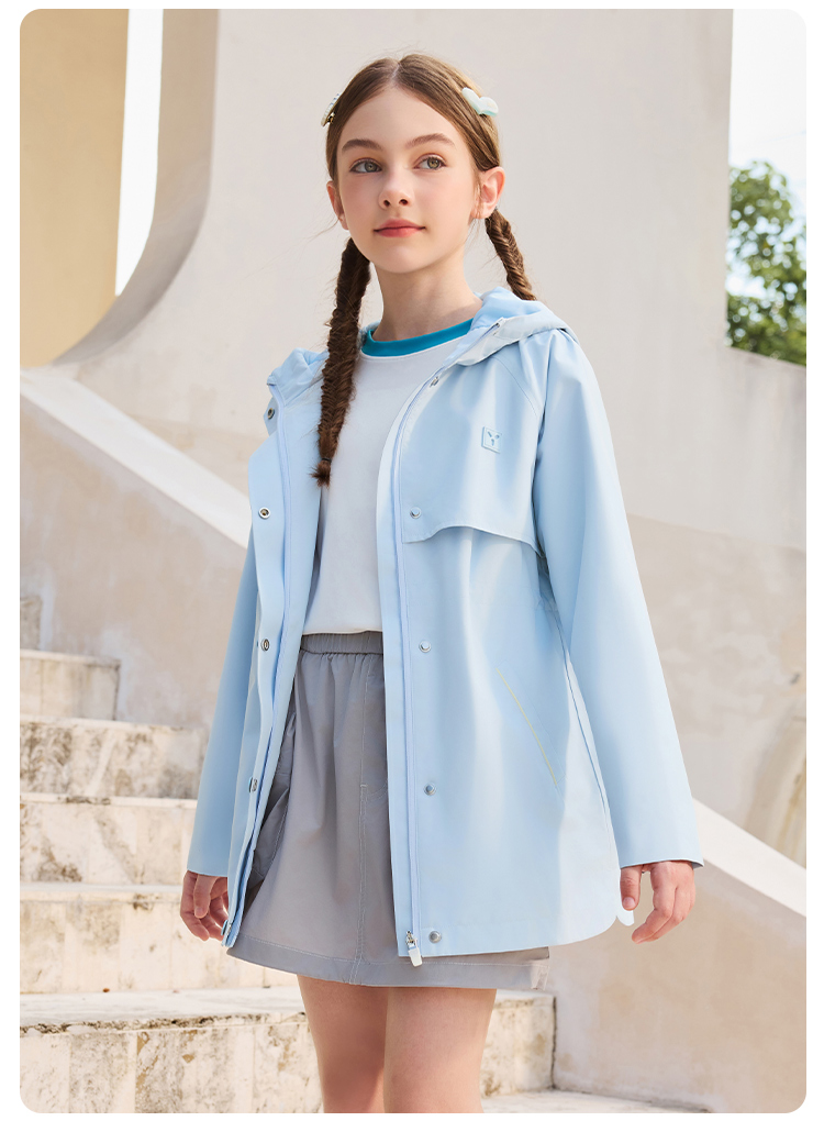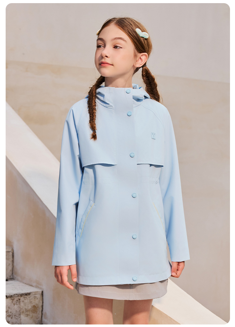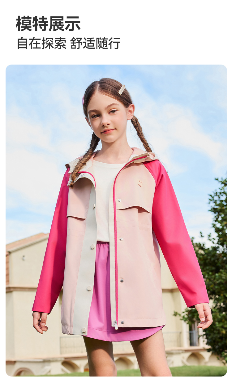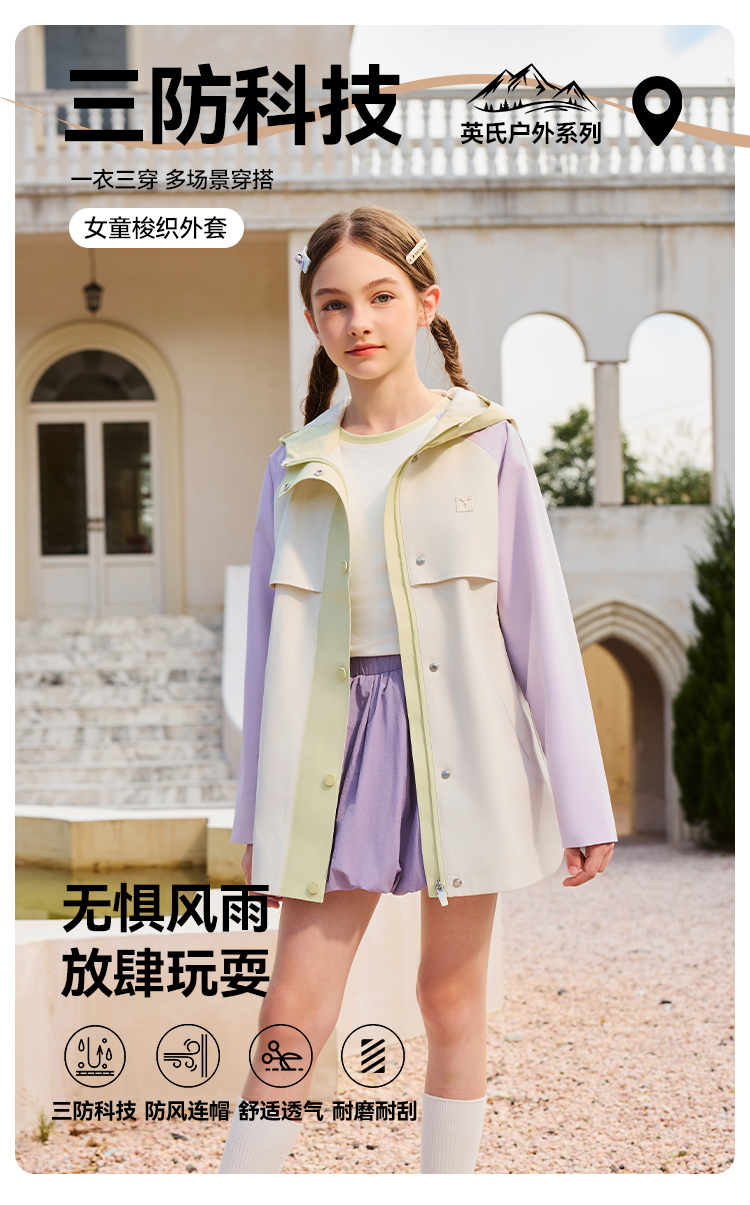 【英氏】【三防科技】【110-170】女童春秋款中长款冲锋衣外套