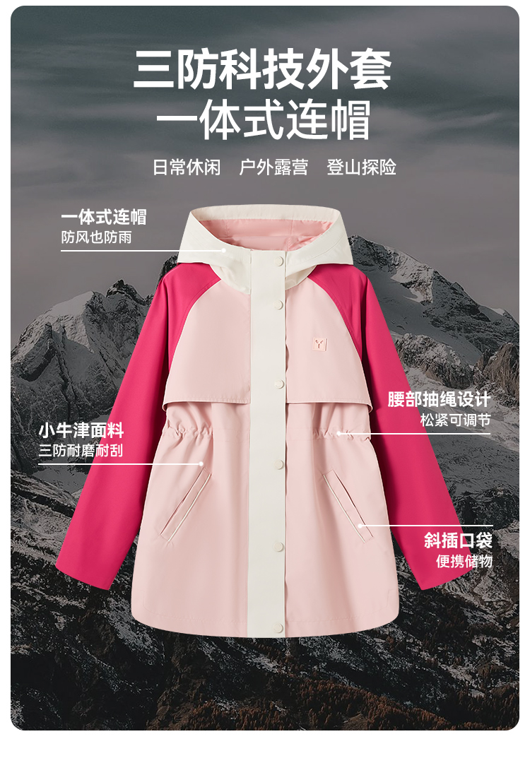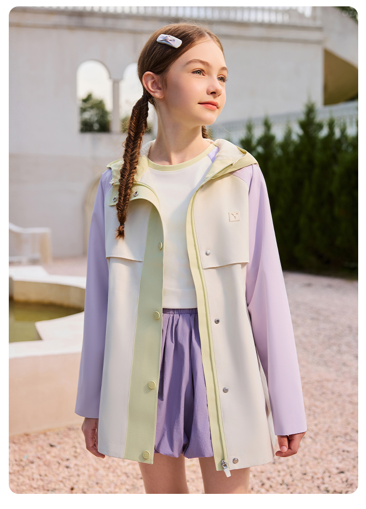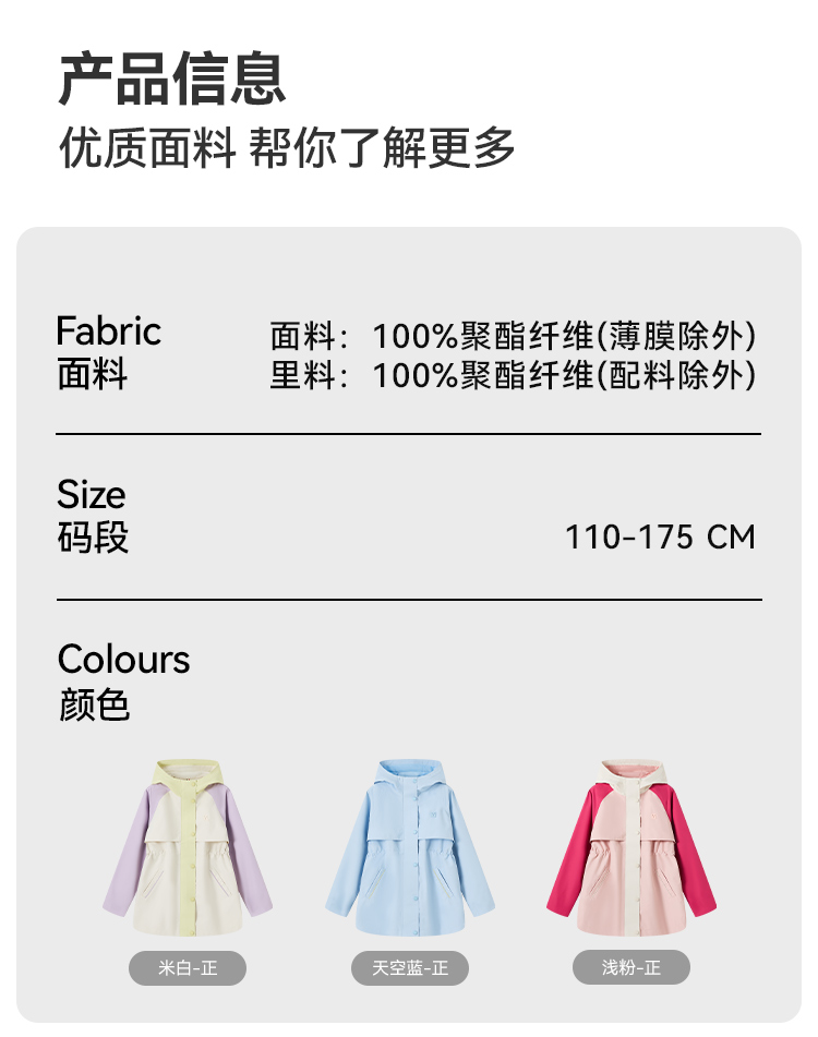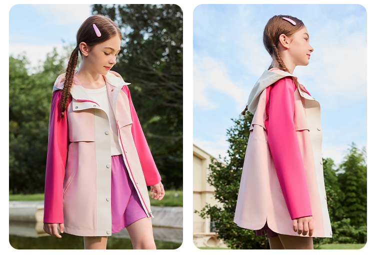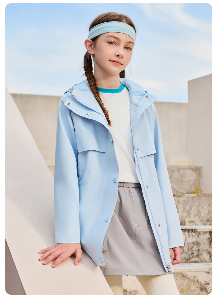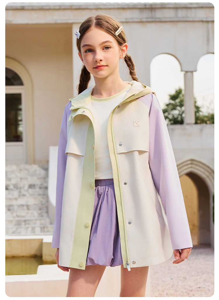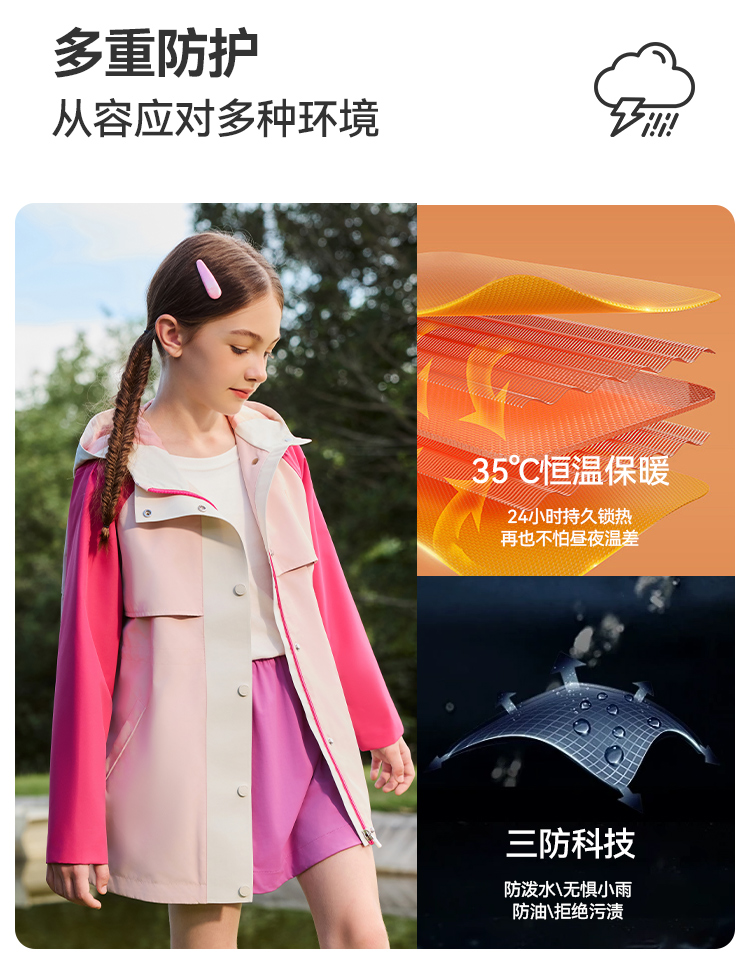 【英氏】【三防科技】【110-170】女童春秋款中长款冲锋衣外套