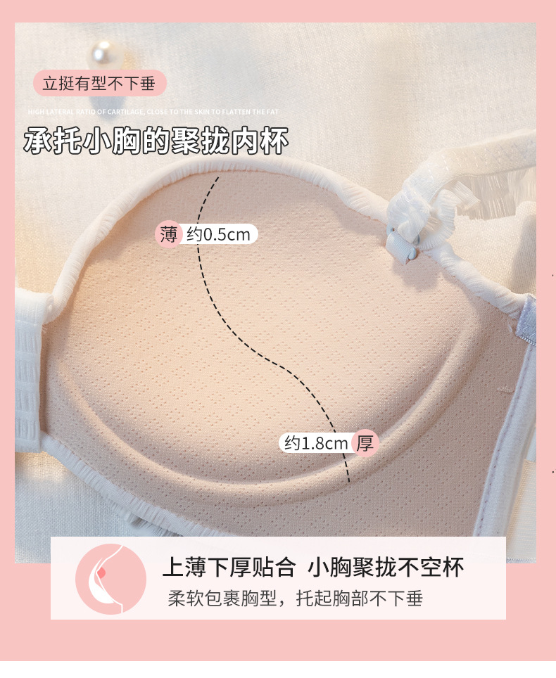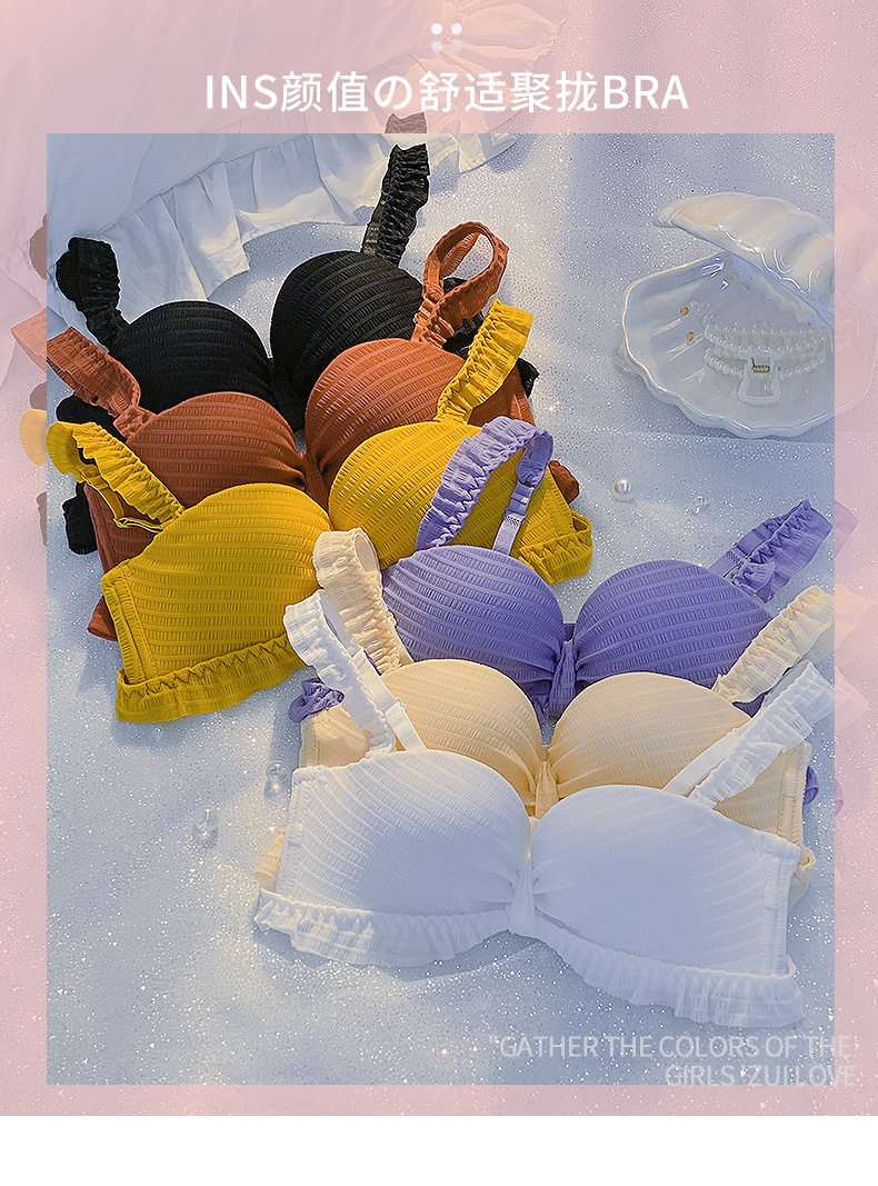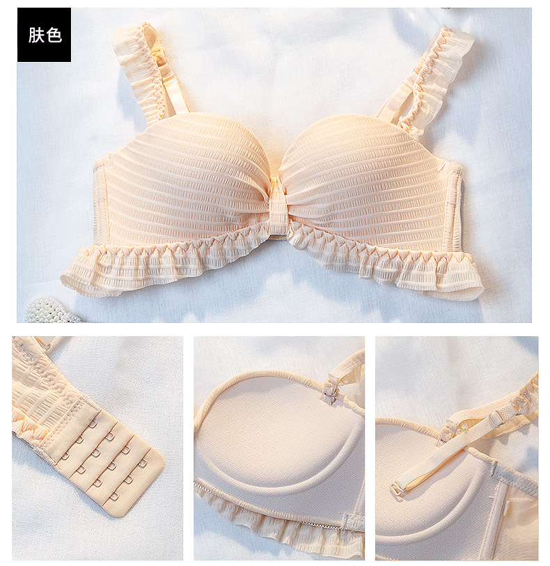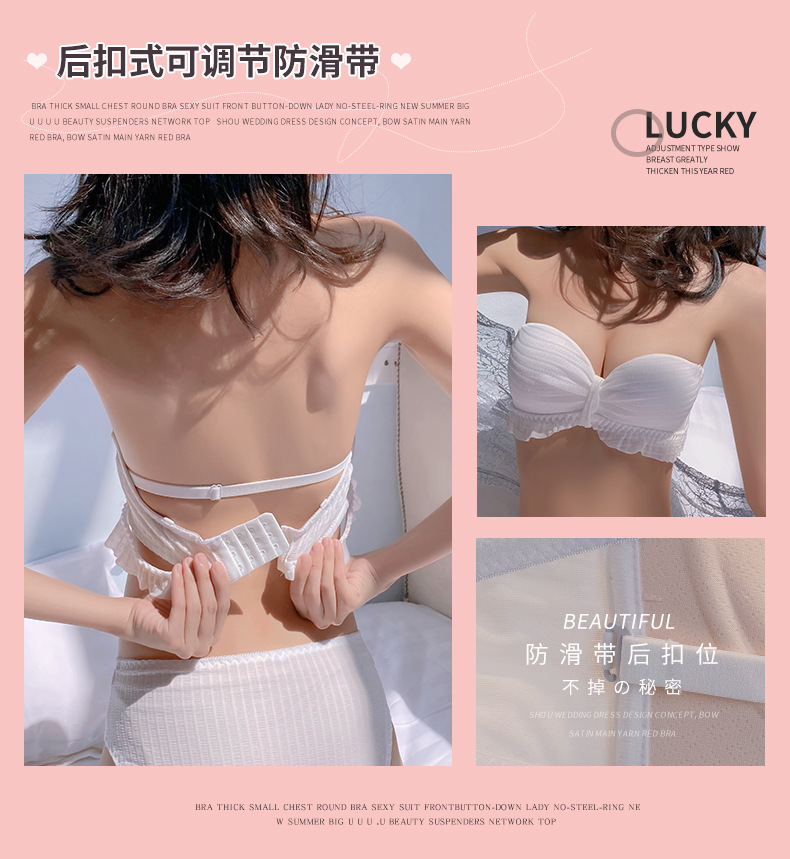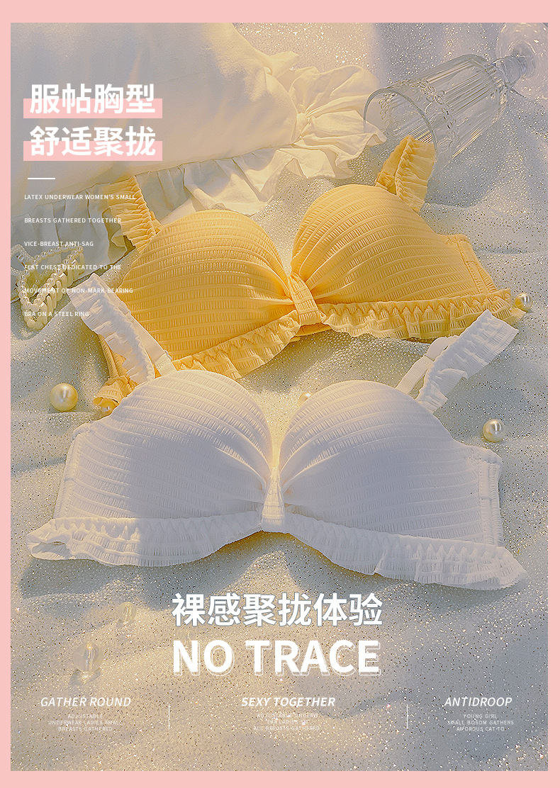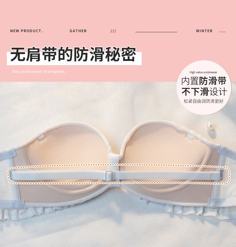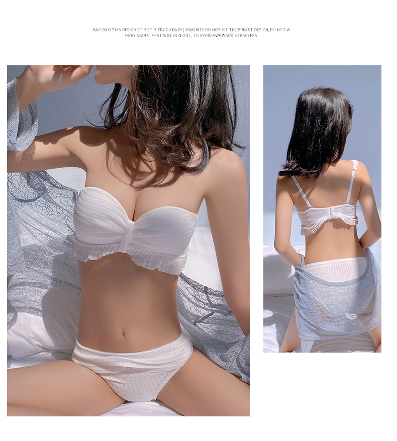 白色内衣少女小胸聚拢平胸显大无钢圈褶皱无肩带防滑文胸罩套装厚