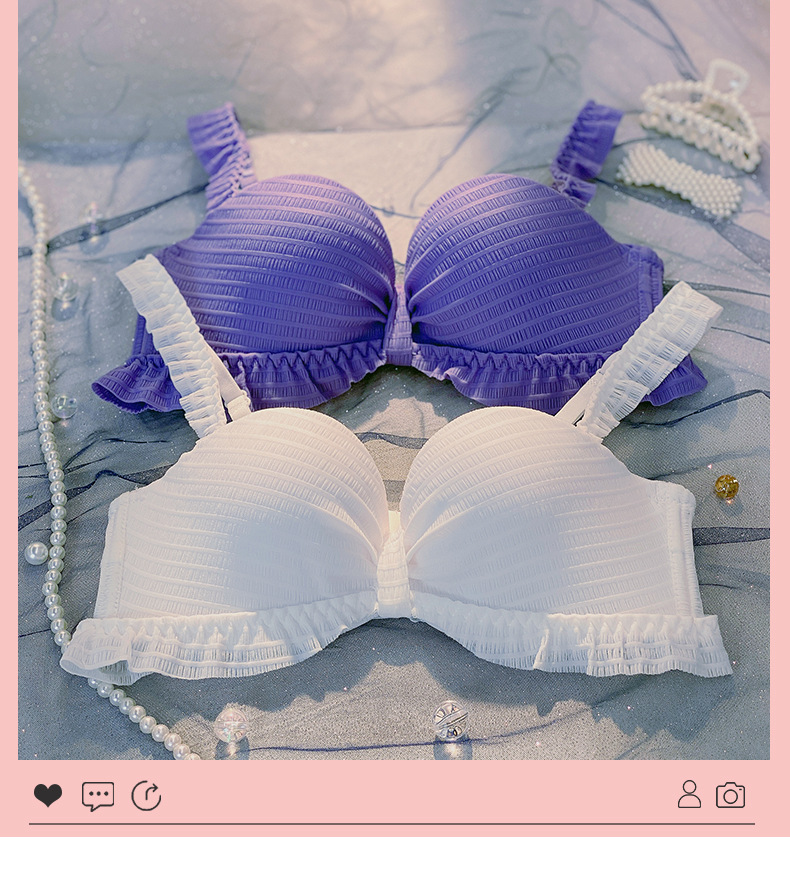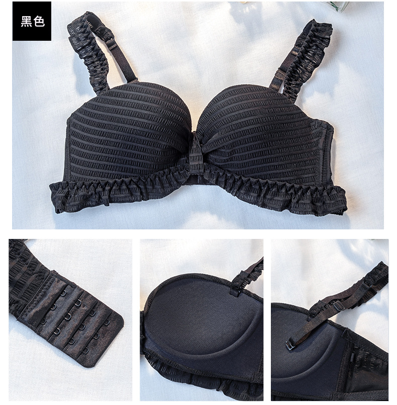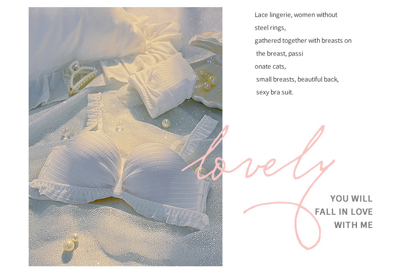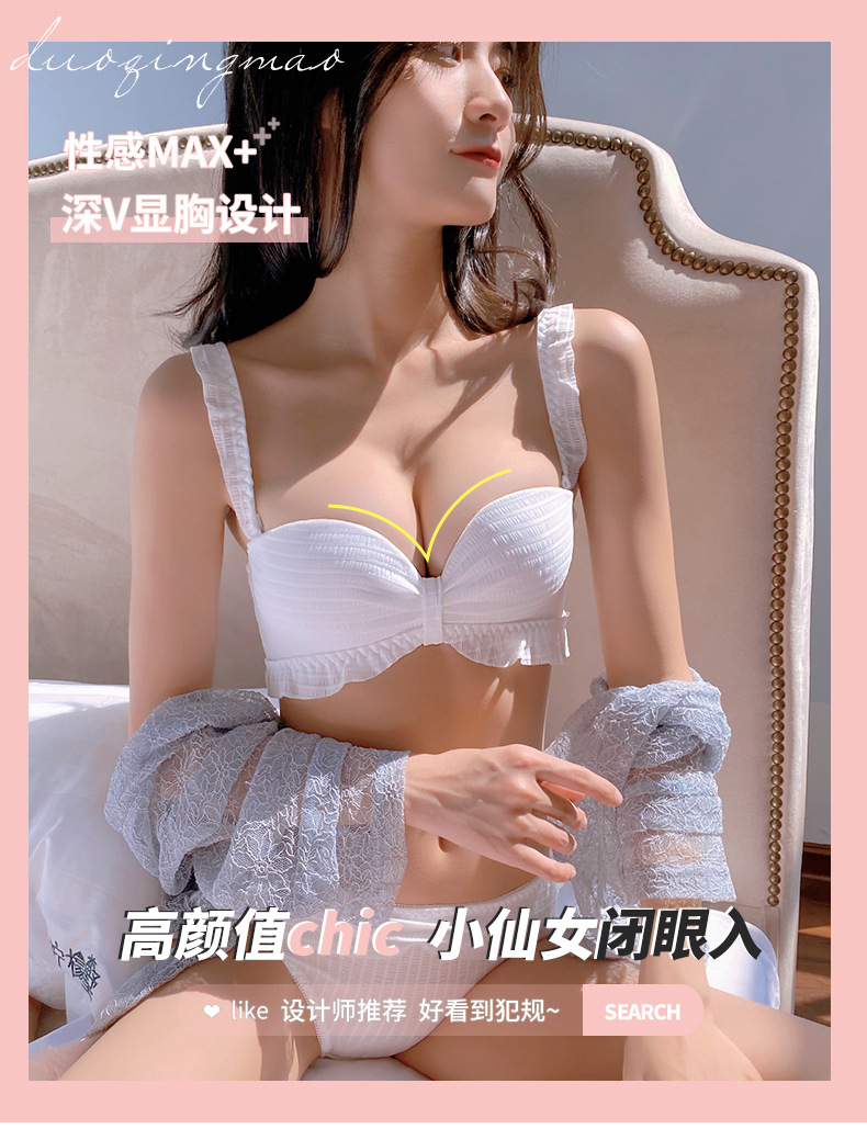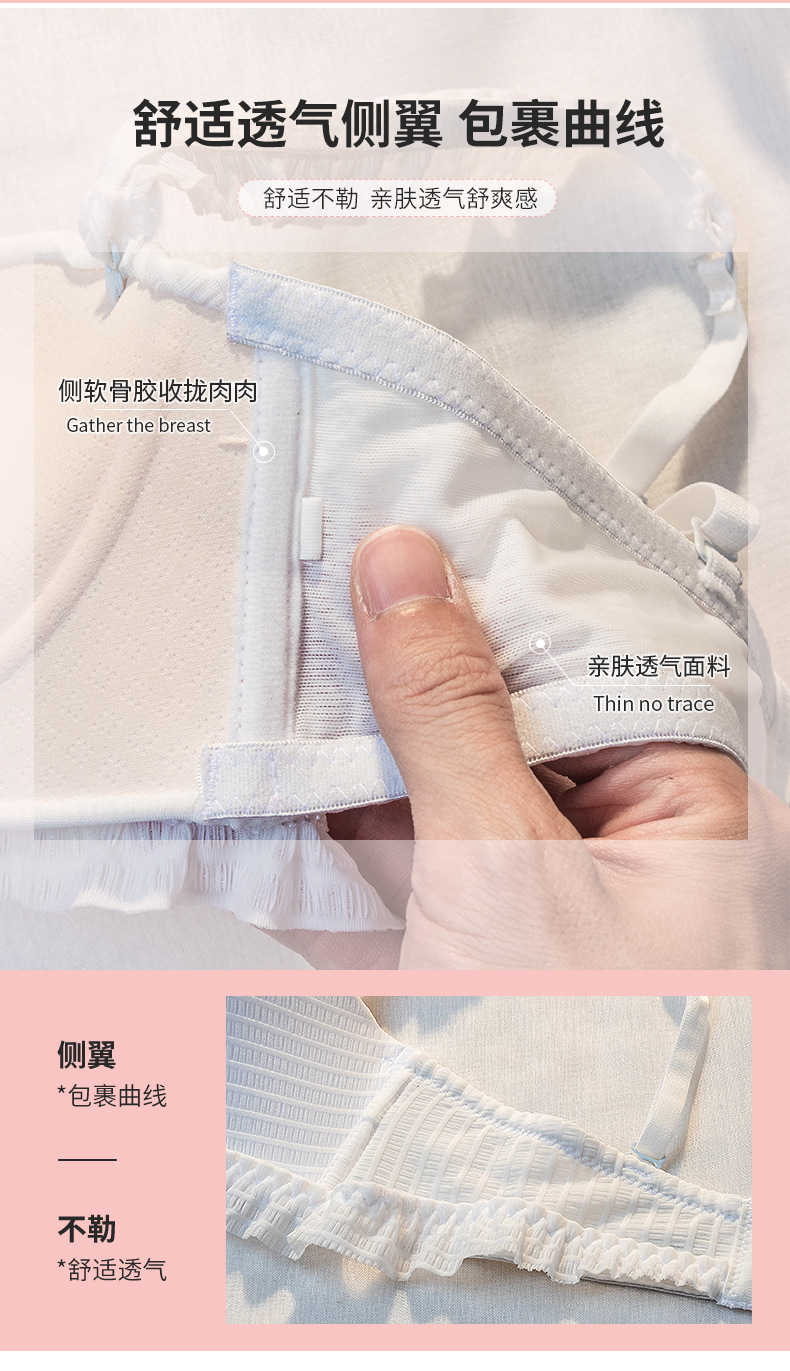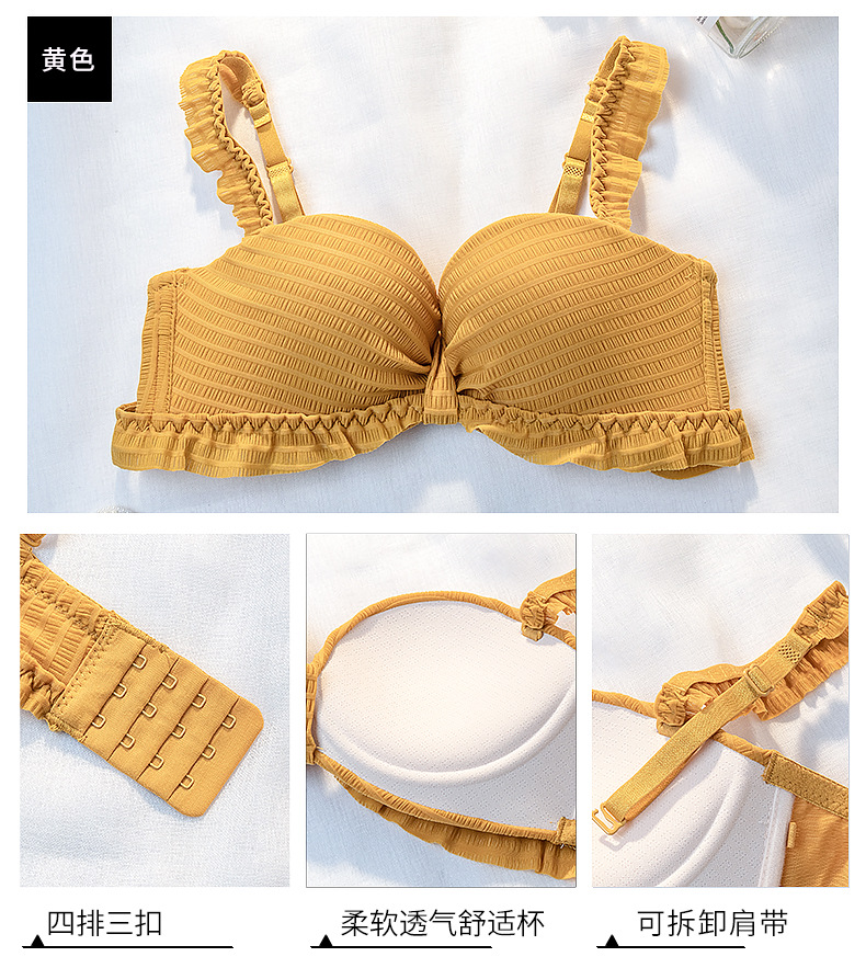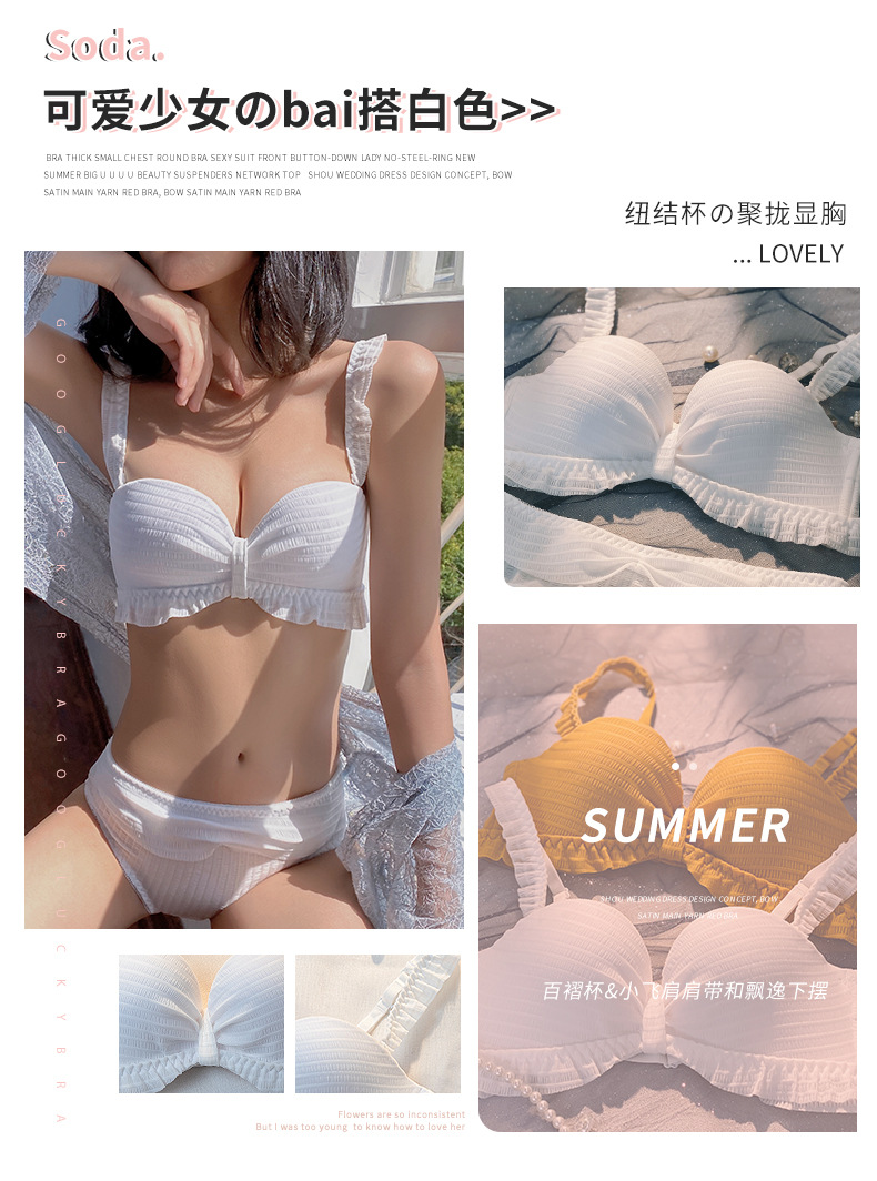 白色内衣少女小胸聚拢平胸显大无钢圈褶皱无肩带防滑文胸罩套装厚