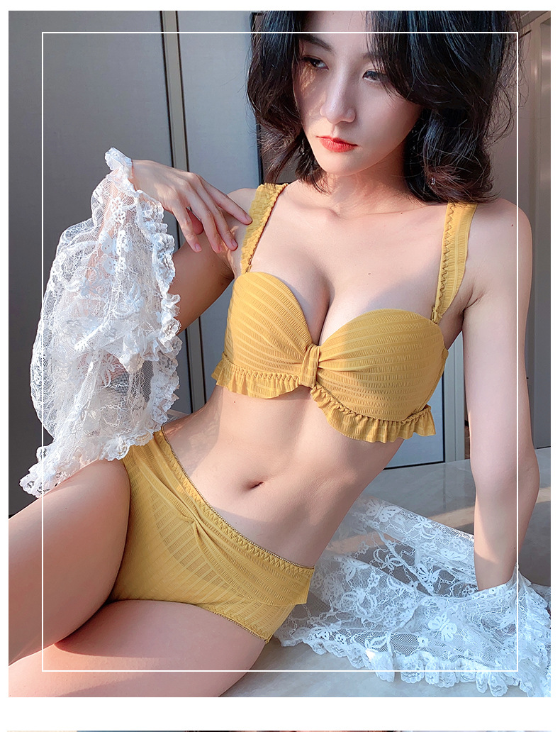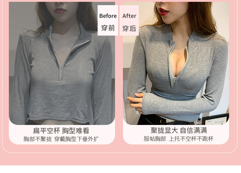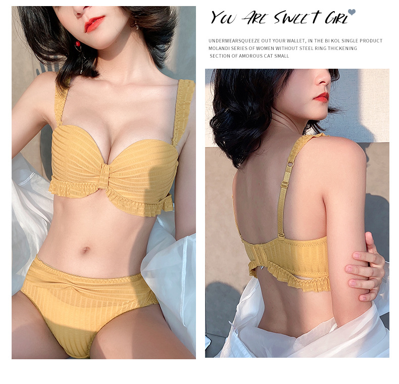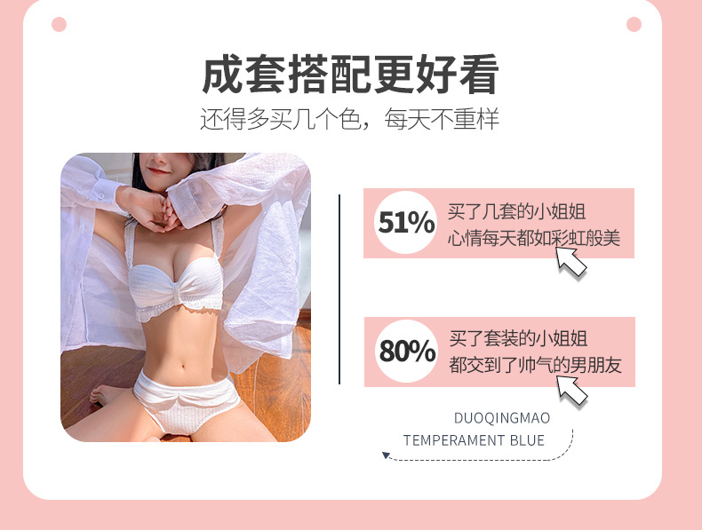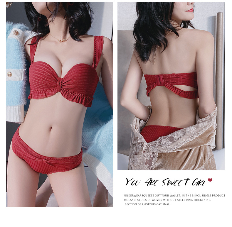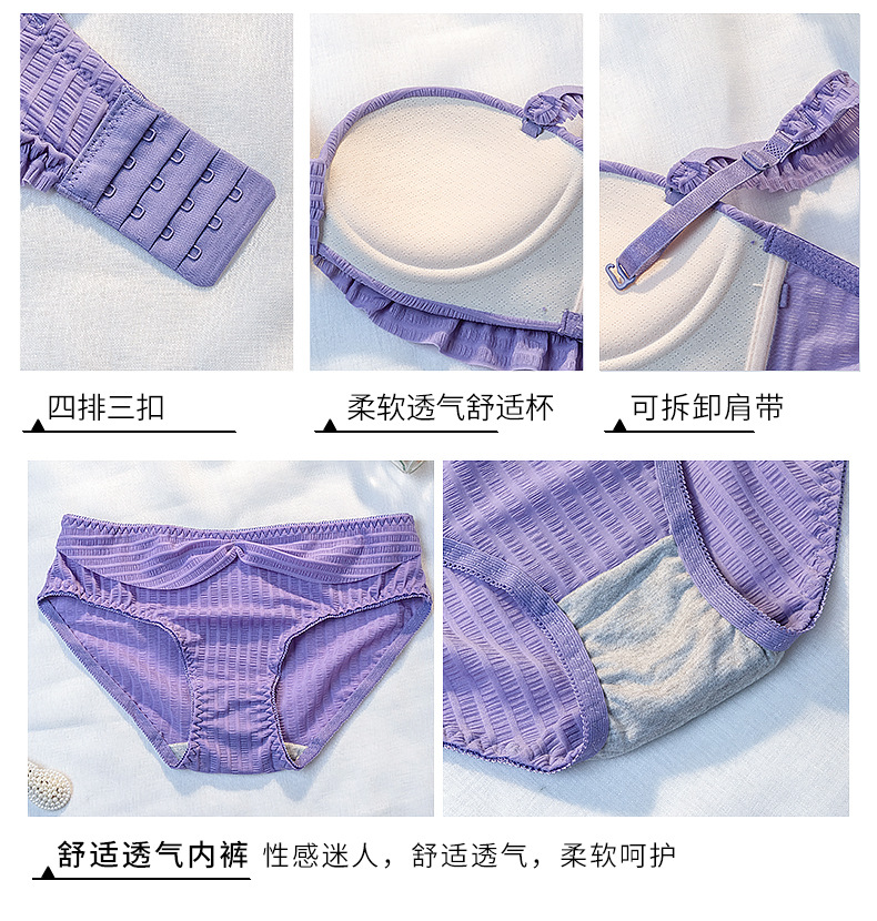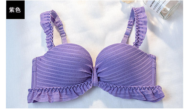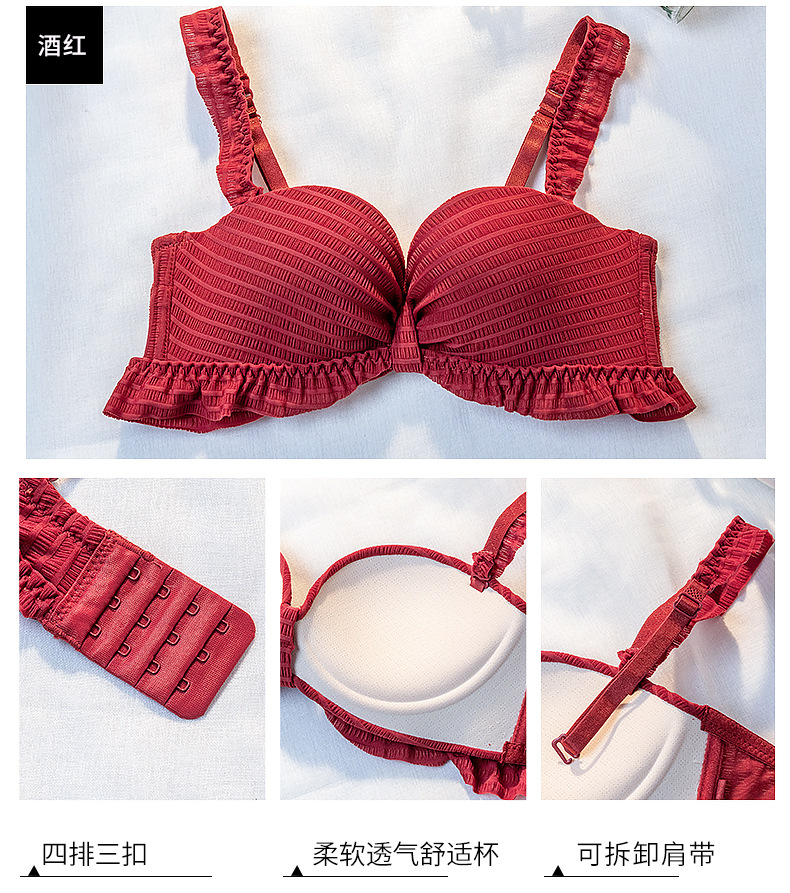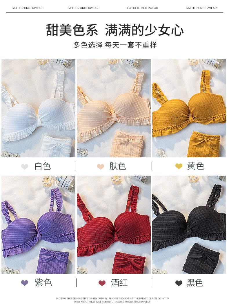 白色内衣少女小胸聚拢平胸显大无钢圈褶皱无肩带防滑文胸罩套装厚