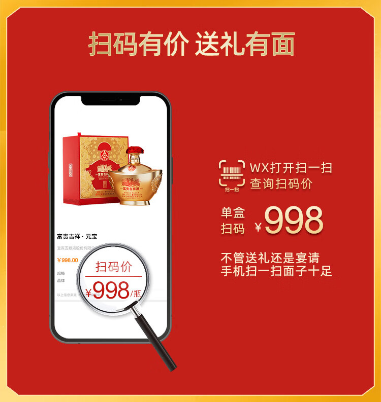 52度五粮液 富贵吉祥·元宝500ml 单瓶