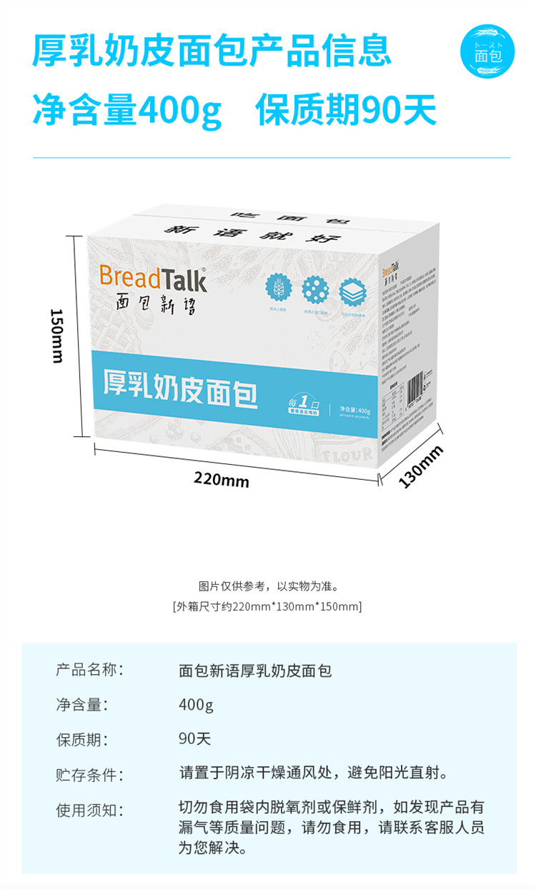 面包新语 厚乳奶皮白面包 400g/400g*2