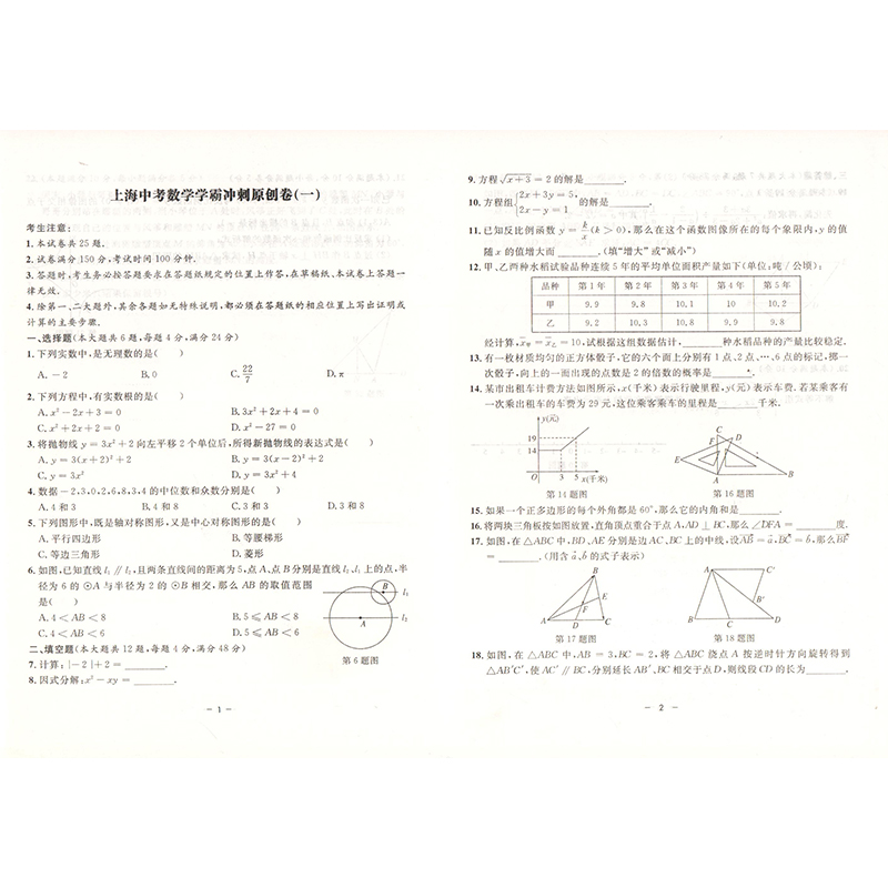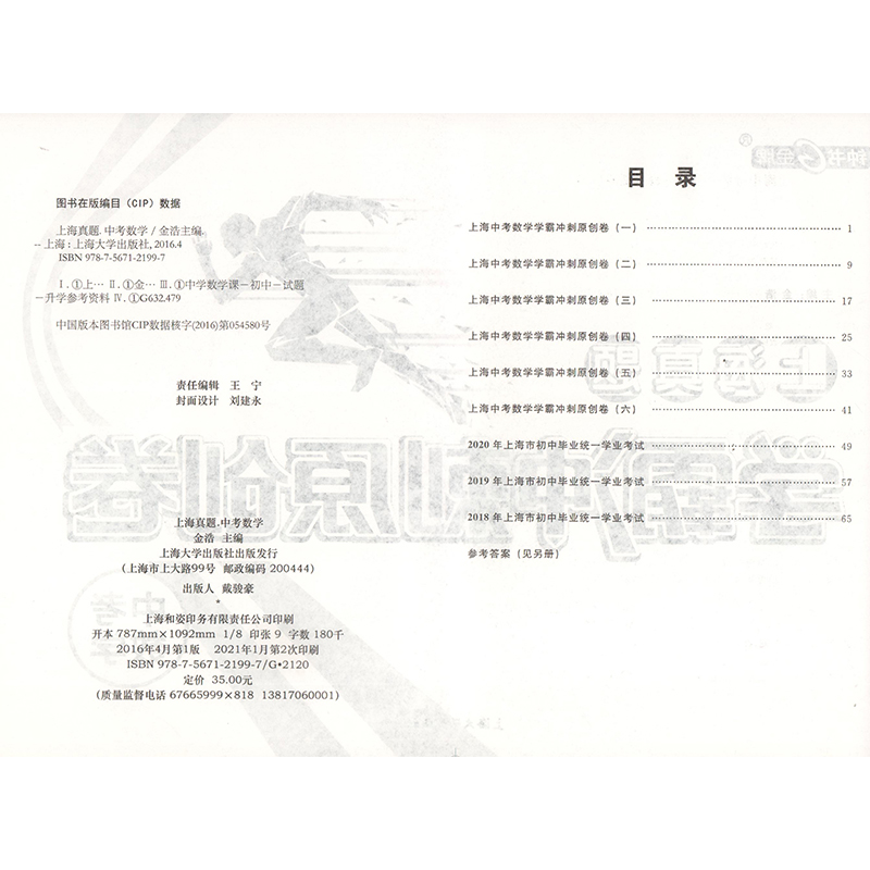 钟书金牌 2021新版 上海真题学霸冲刺原创卷 中考数学 2018-2020上海初中学业考试卷 上海大学出版社
