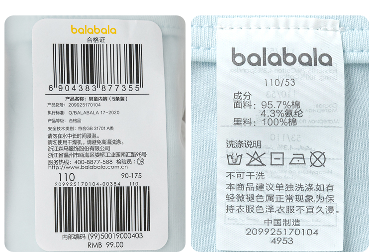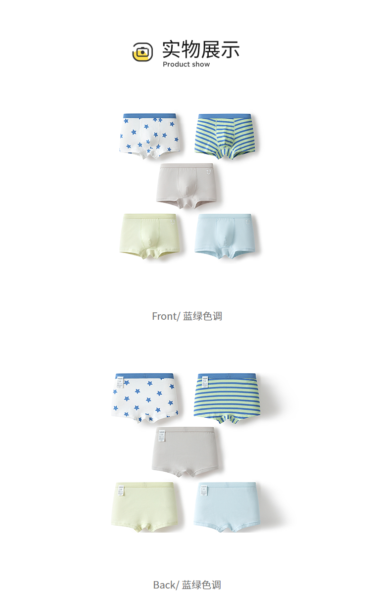 巴拉巴拉儿童内裤棉a类男童平角短裤小童中大童宝宝四角裤五条装