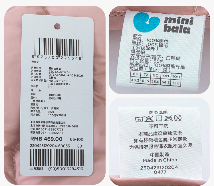 【三防】迷你巴拉羽绒连体衣冬季宝宝时尚潮流保暖婴儿衣服