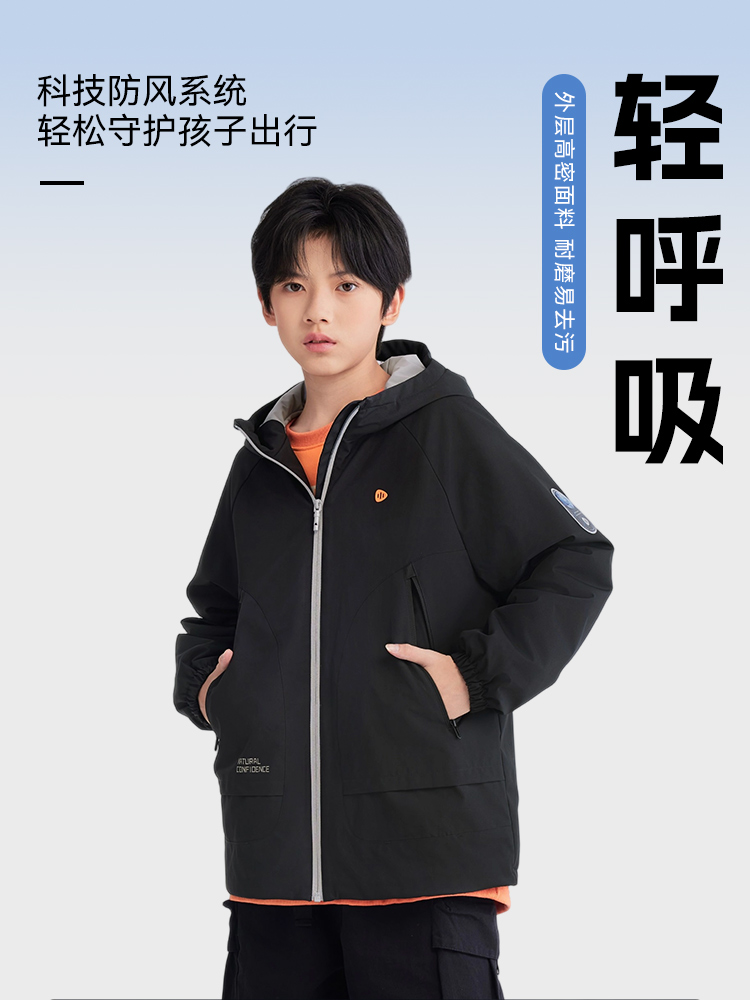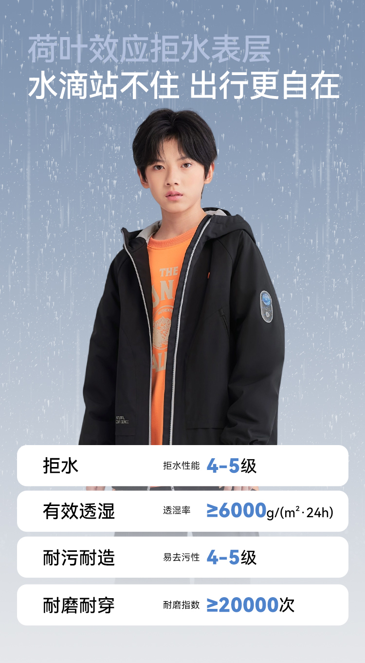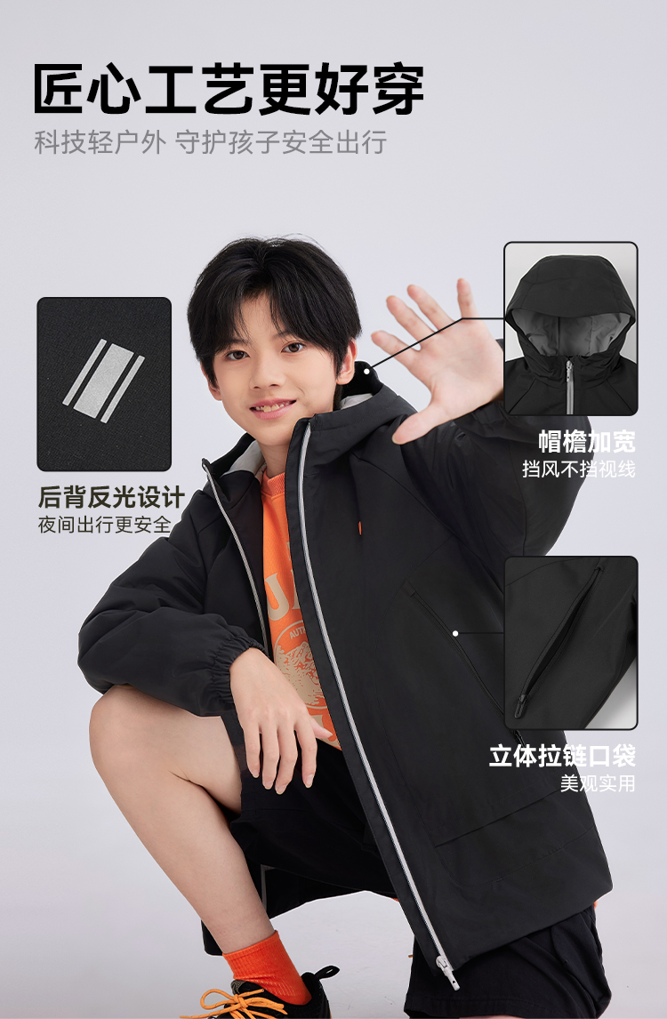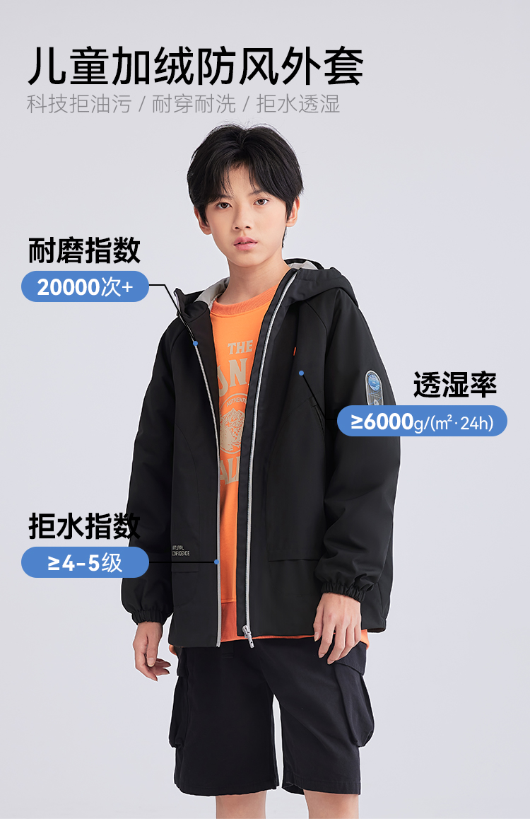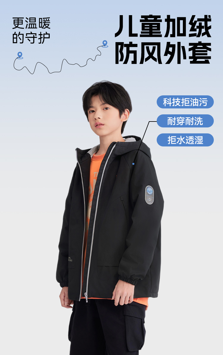 水孩儿童装儿童外套加绒2025秋冬装新品三防女童风衣男童连帽上衣