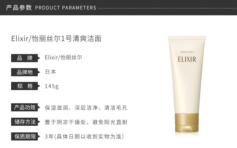 ELIXIR/怡丽丝尔 优悦活颜保湿清爽洗面奶 1号 145G