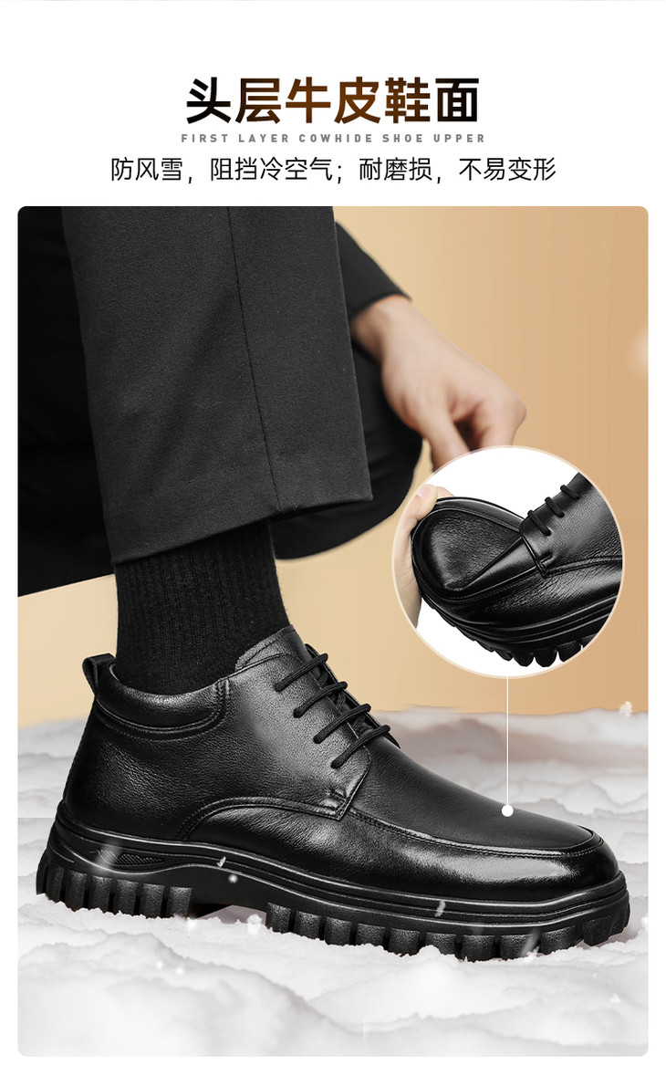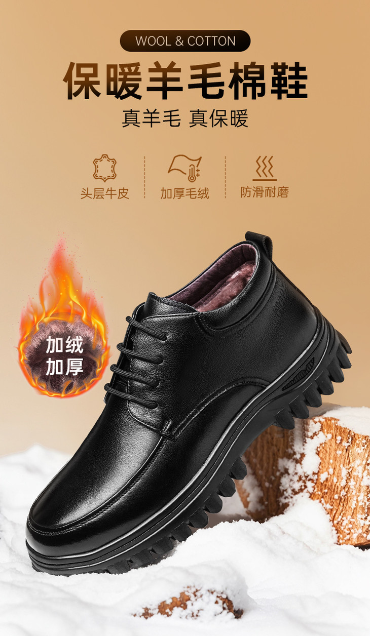 【牛皮系带保暖羊毛棉鞋】防风通勤棉鞋休闲加绒通勤鞋XM404