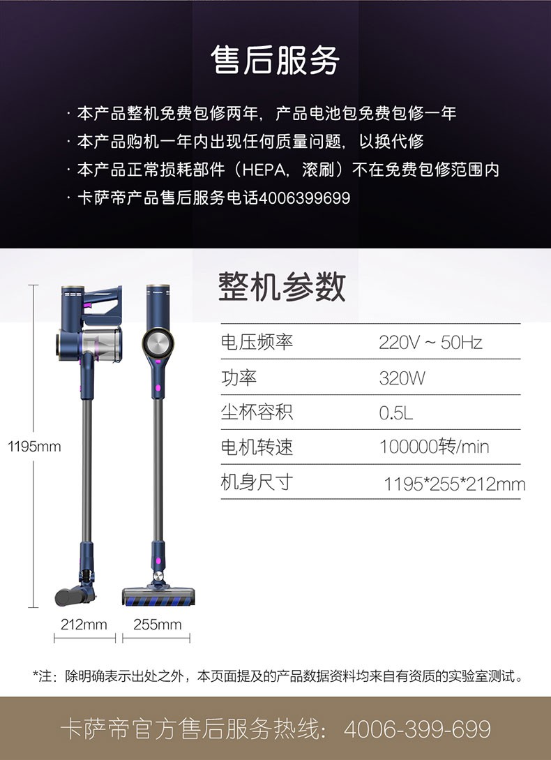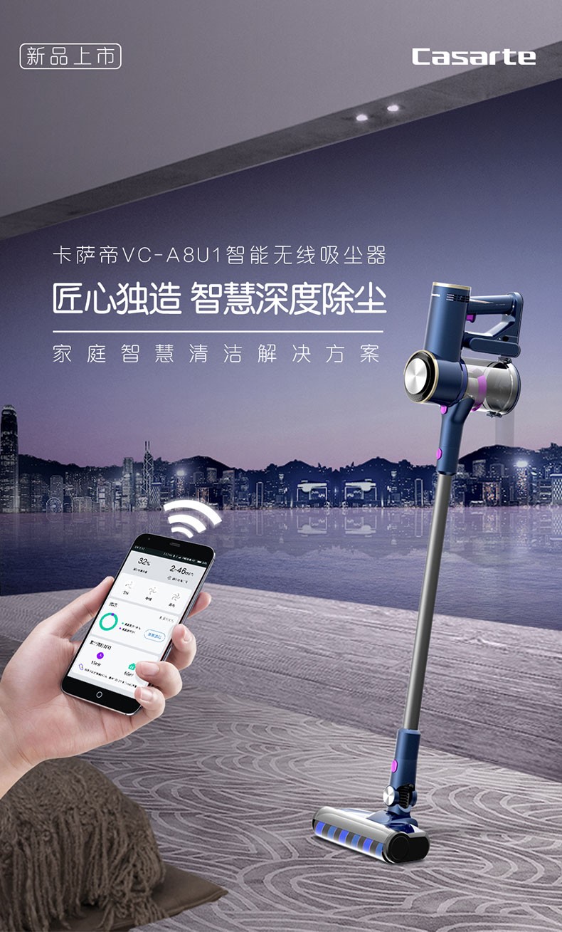 卡萨帝(Casarte)无线吸尘器家用手持立式大吸力除螨宠物地毯吸尘机 【17KPa大吸力】 VC-A8U1