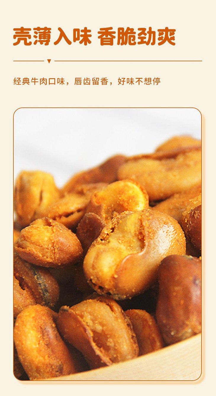 兰花豆不仅口感出众 营养价值也非常高! 兰花豆具有增强体质,补中益气的功能 而牛肉味的加入又使兰花豆多了点🧂咸香 两者结合,既能满足您的味蕾😋 又能为您的身体提供所需的营养