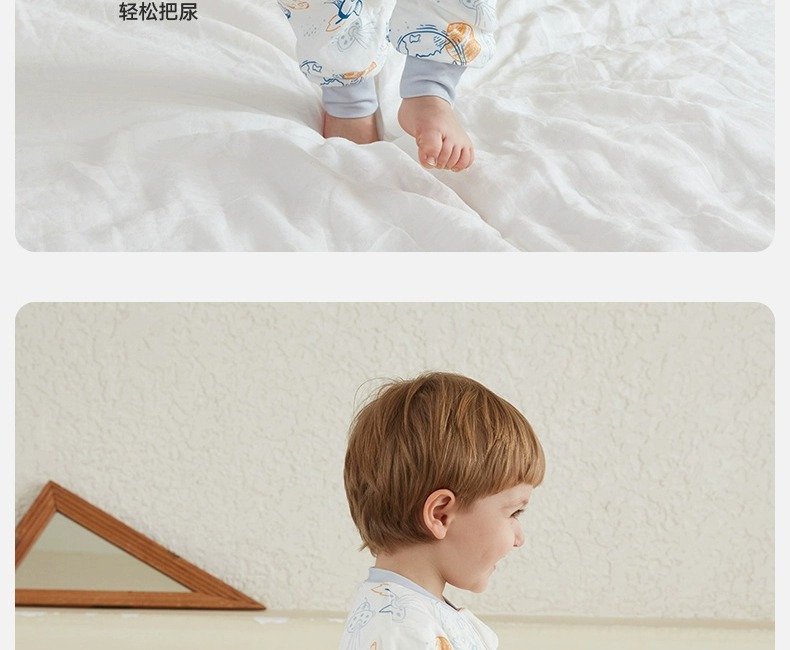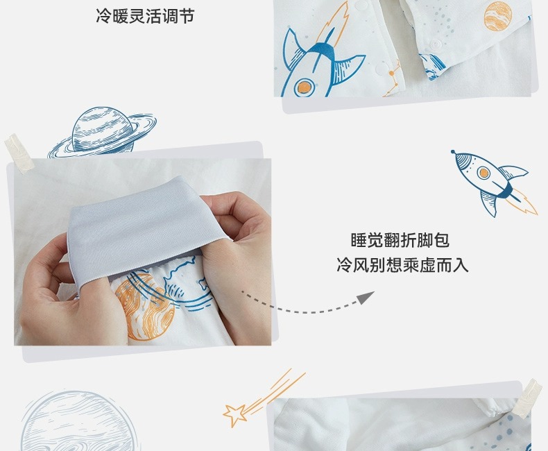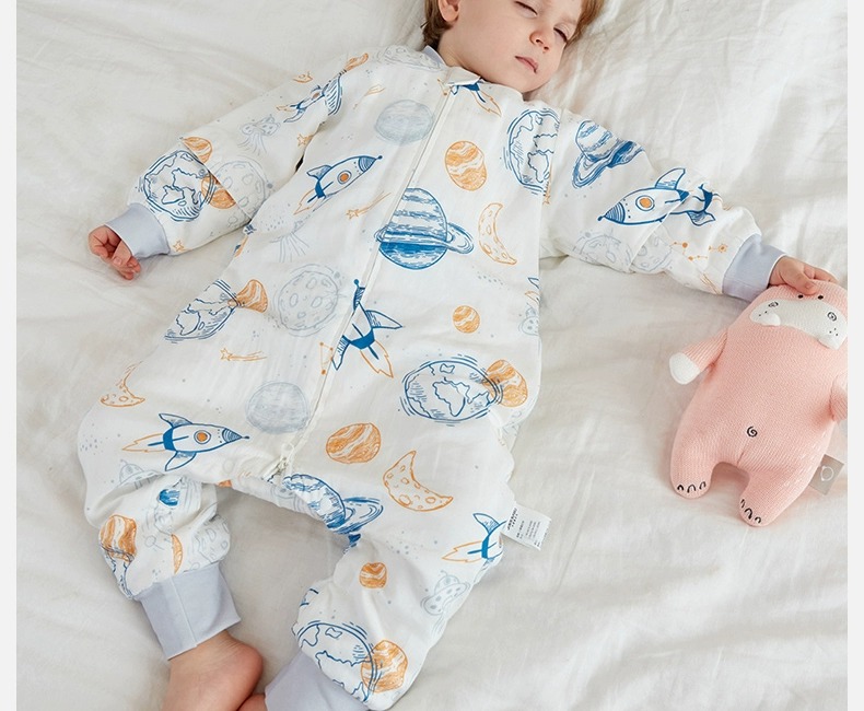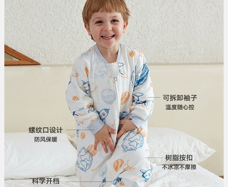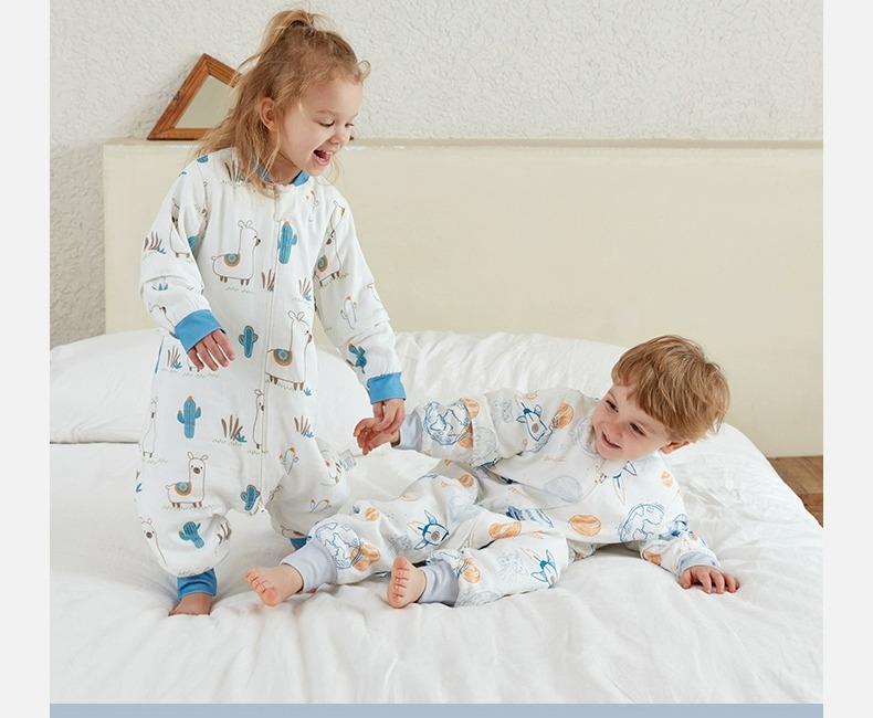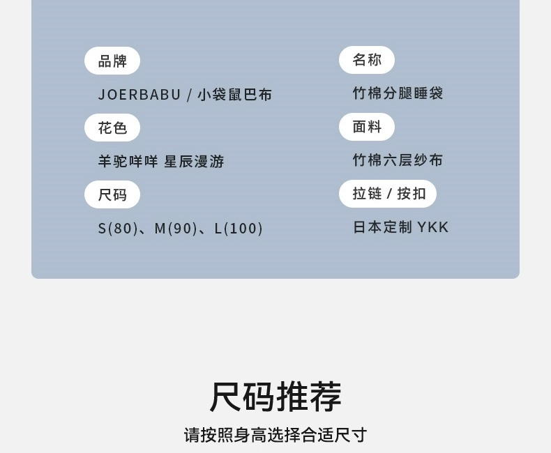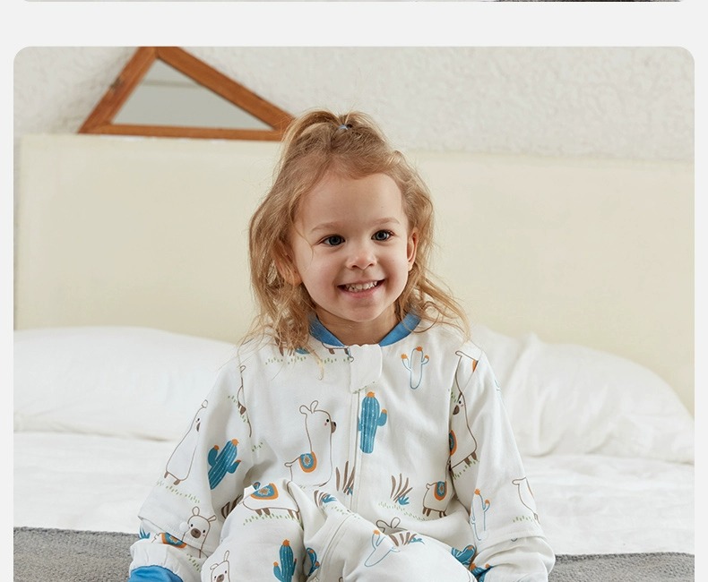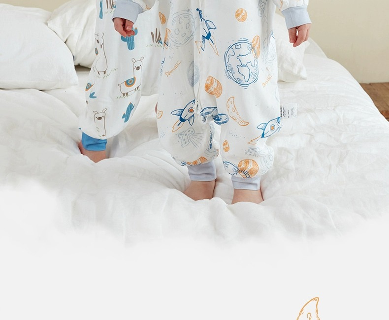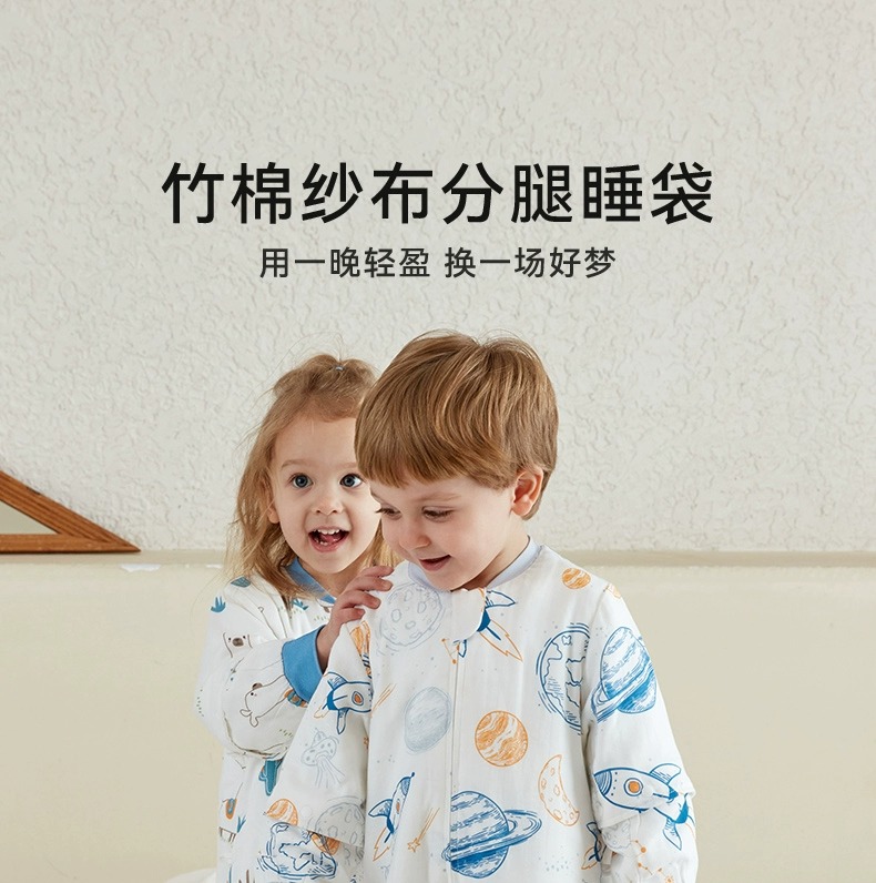 小袋鼠巴布婴儿睡袋防惊跳儿童竹棉纱布春秋款分腿宝宝睡袋夏季