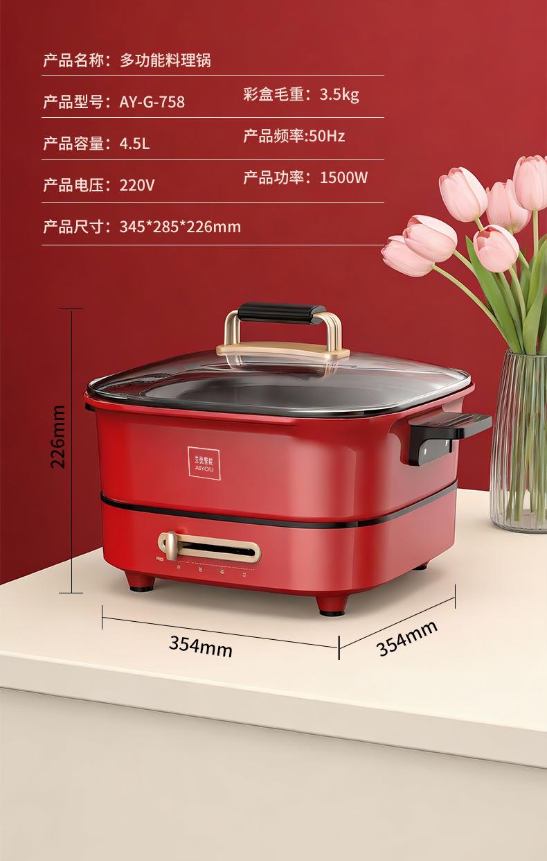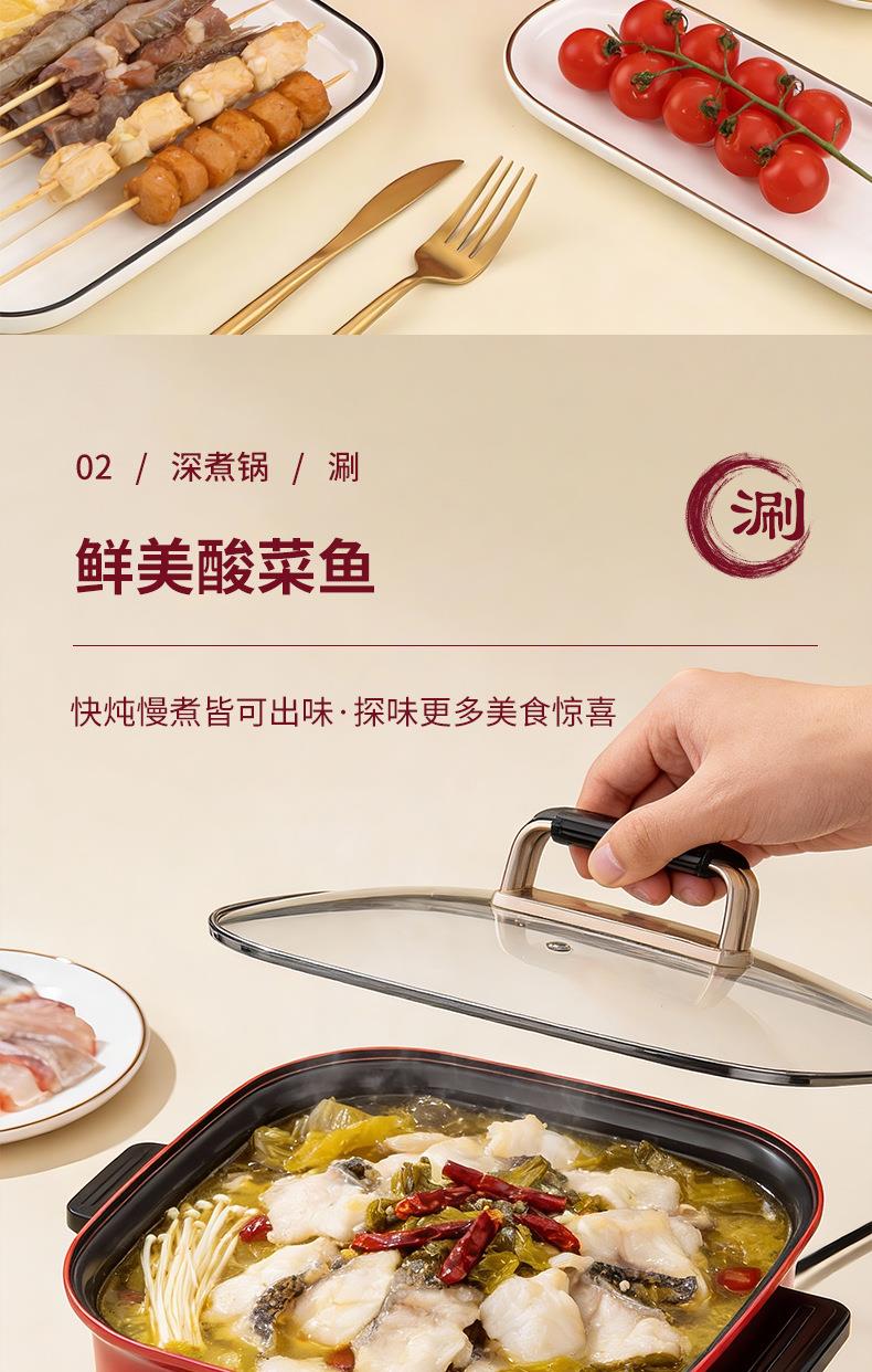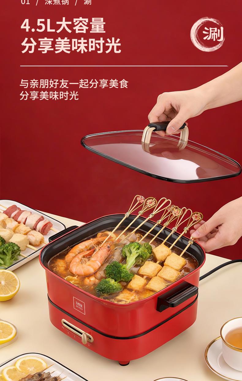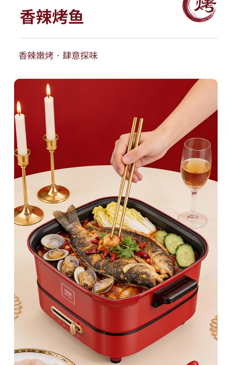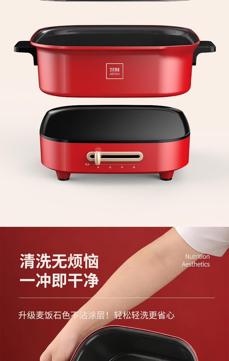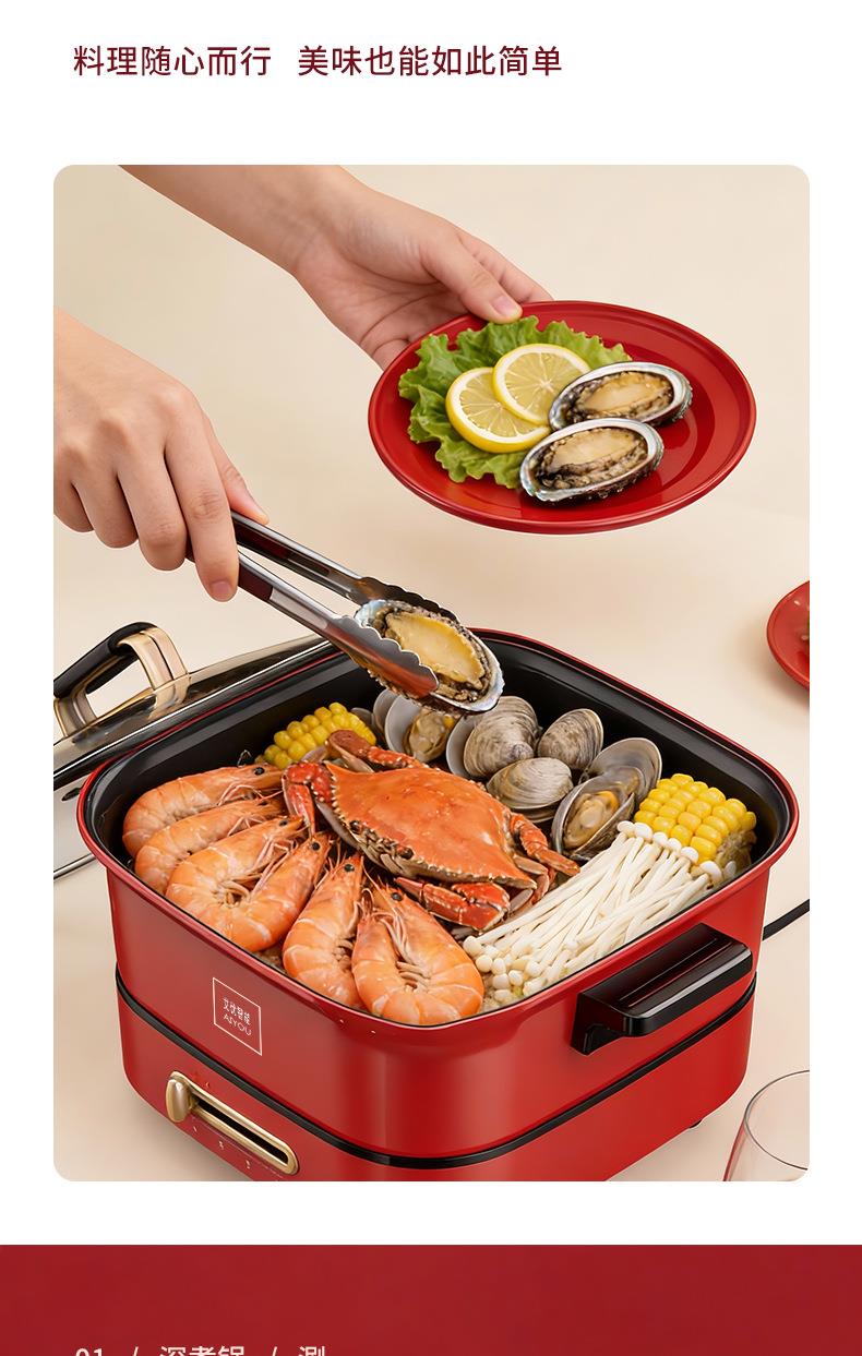 家用多功能一体锅大容量电热焖炖烙锅电火锅电炒锅煎烤一体不粘锅