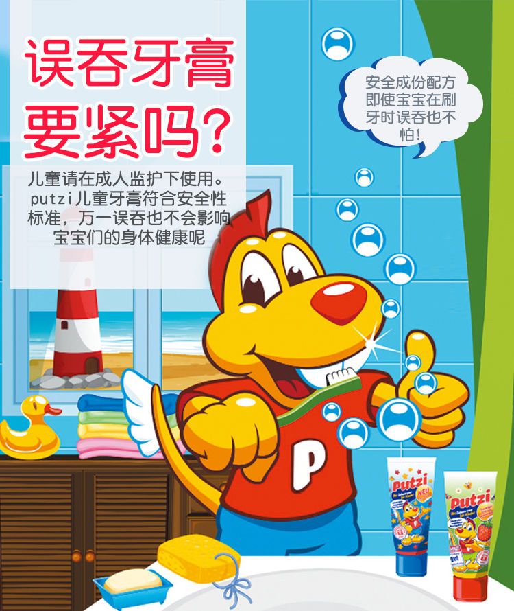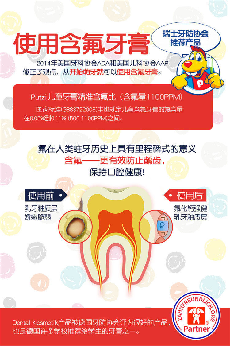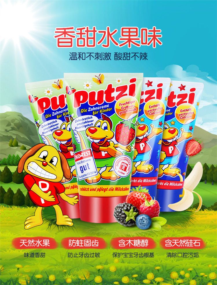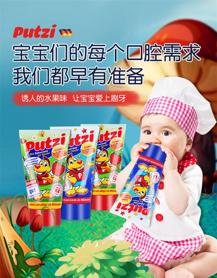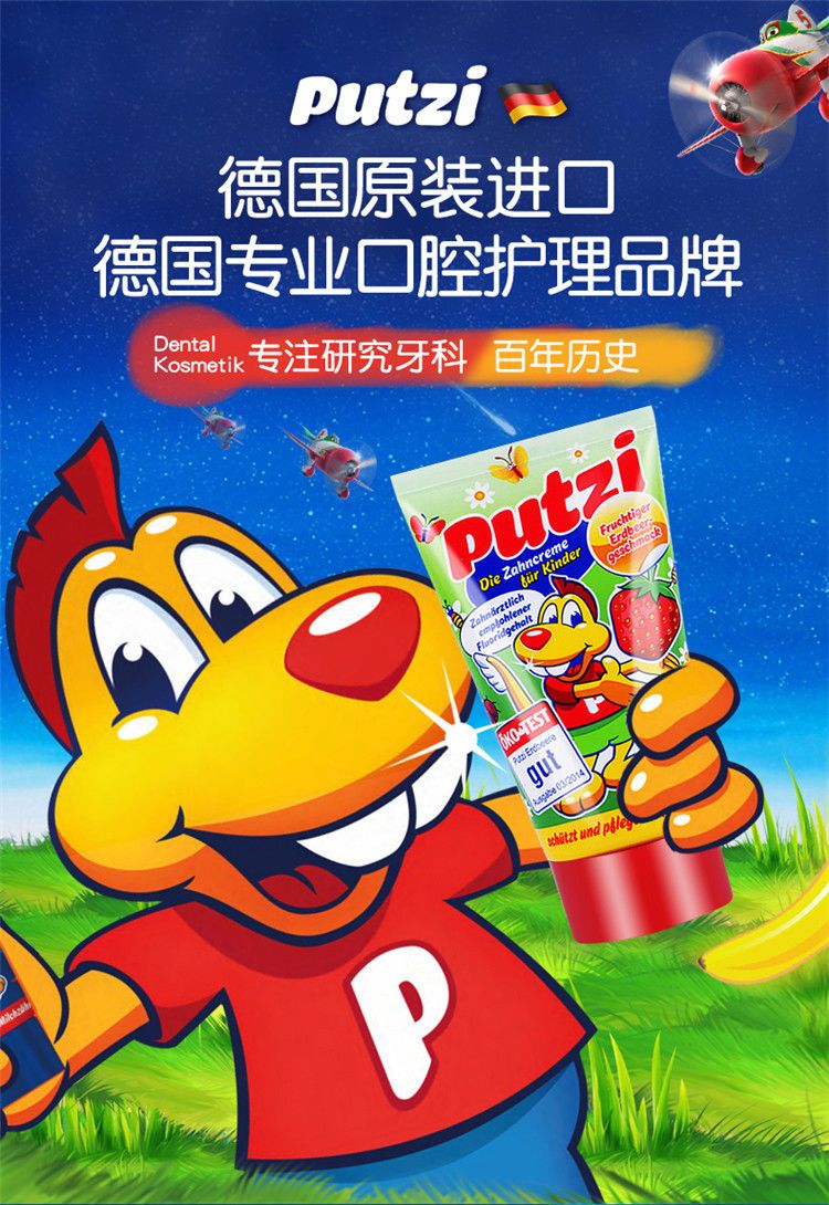 【爆款超低价预售 急单慎拍】德国进口putzi宝宝儿童牙膏1-7岁含氟防蛀固齿经典草莓味牙膏50ml