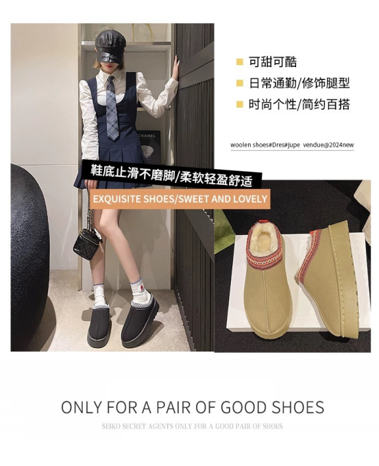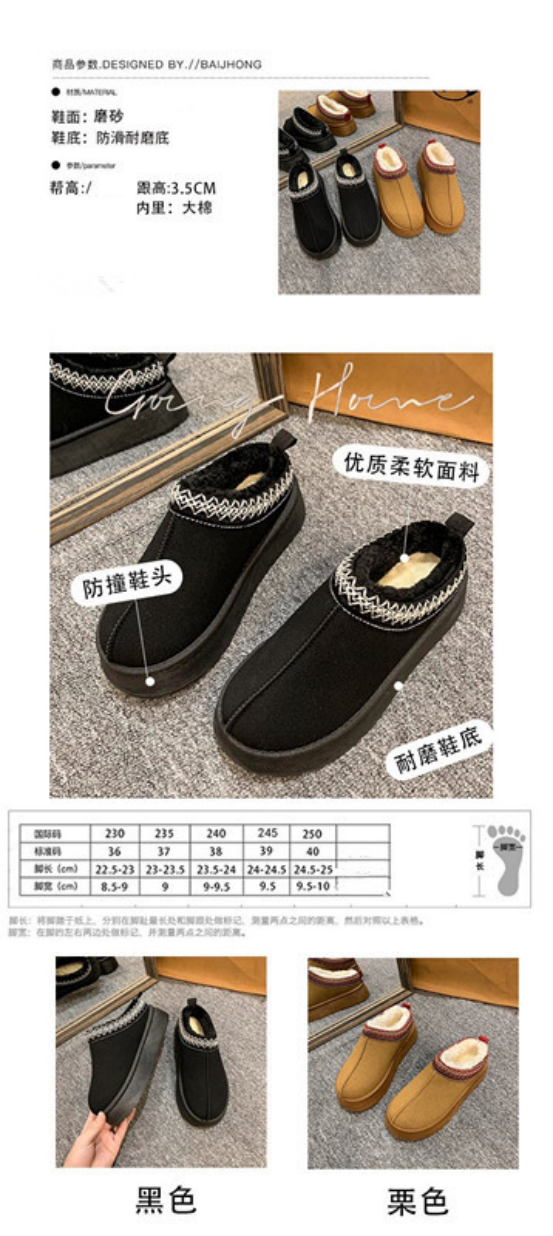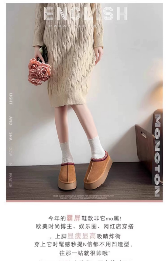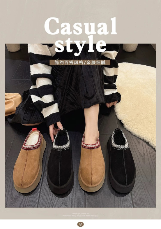 尽管是半托款,但丝毫不耽误保暖哦! 厚厚的绒毛内里暖暖哒 穿个羊毛袜更是加倍温暖, 保暖又好打理,穿脱也方便~