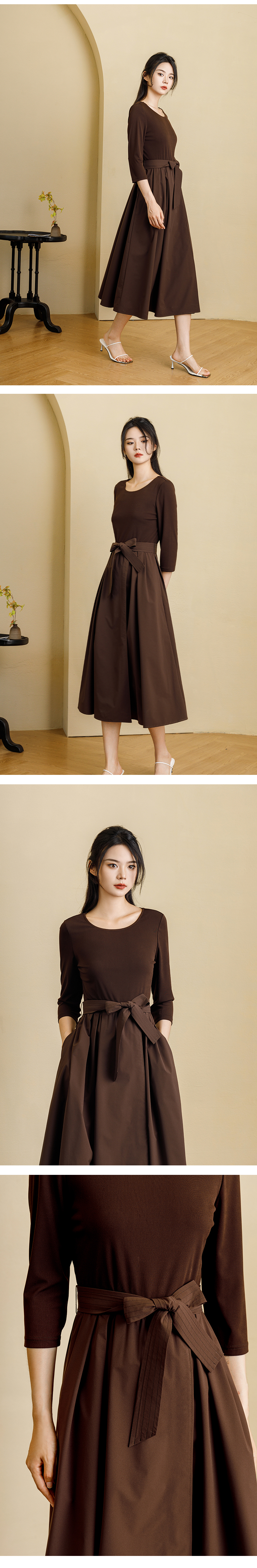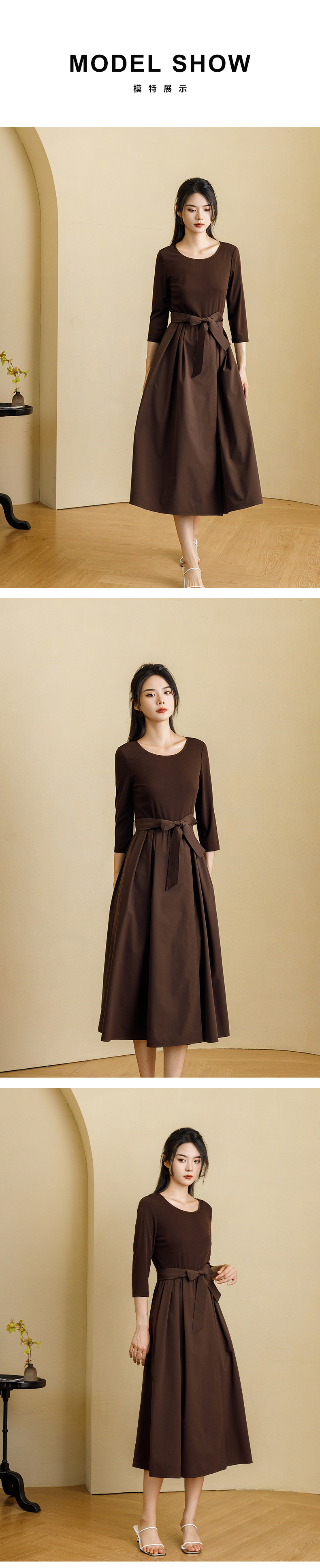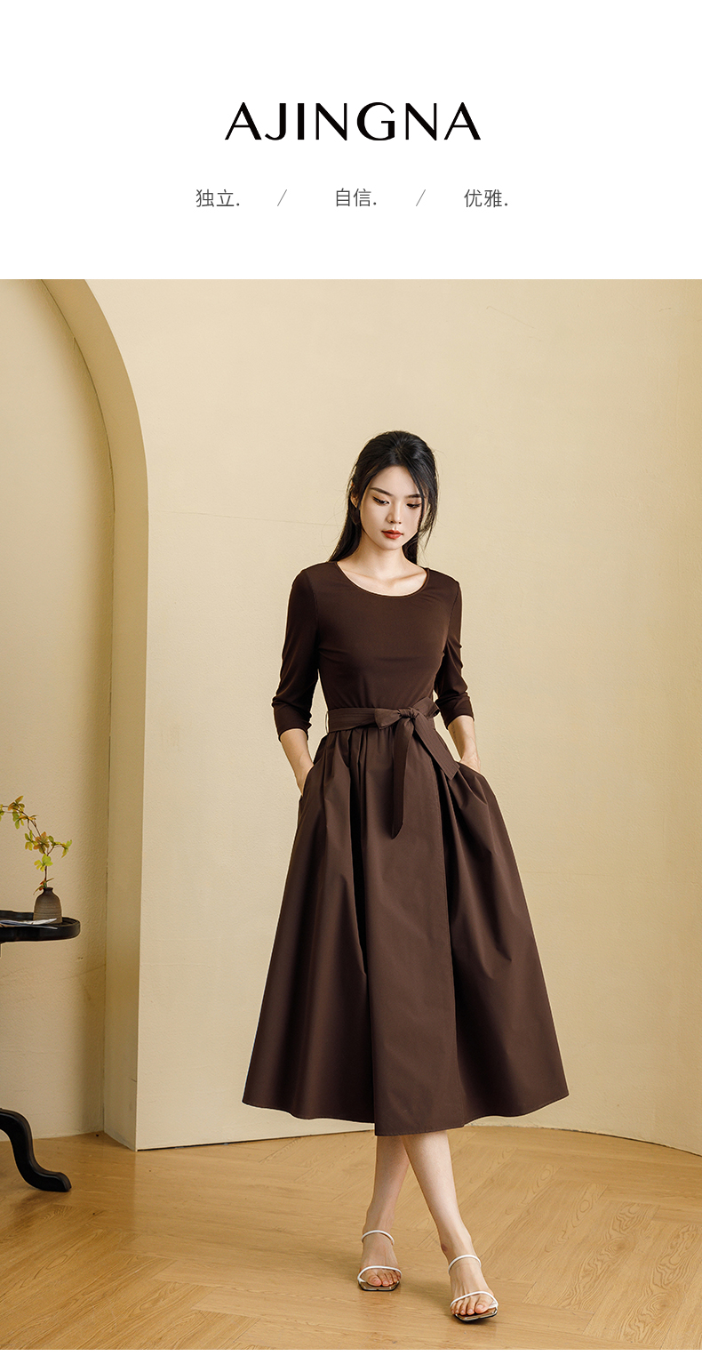 【商场同款】阿菁娜秋季新款法式圆领高腰连衣裙A29Q112062