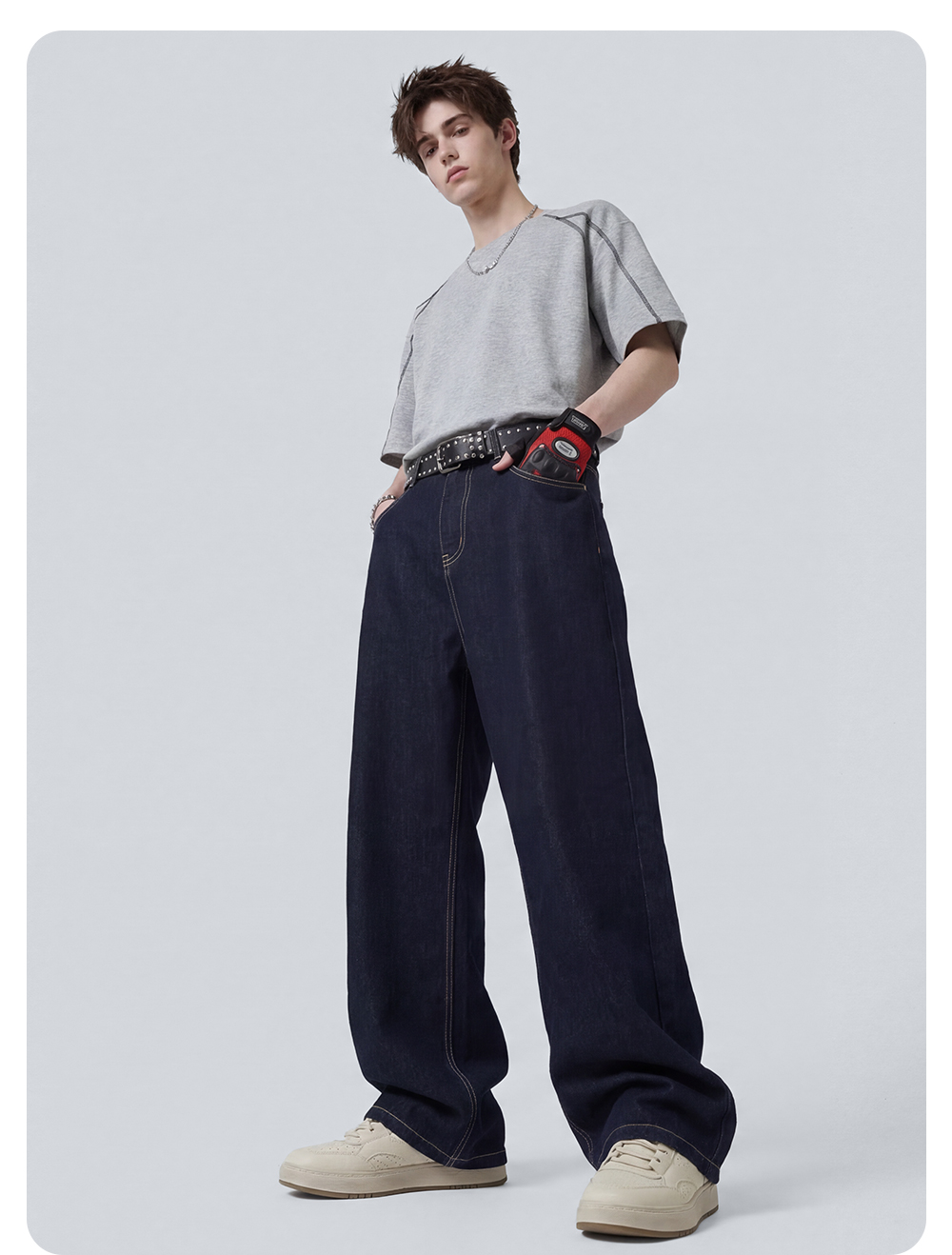 【含棉】圣得西阔弛牛仔裤男款2026新款春季宽松休闲亲肤透气长裤