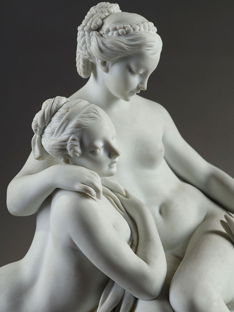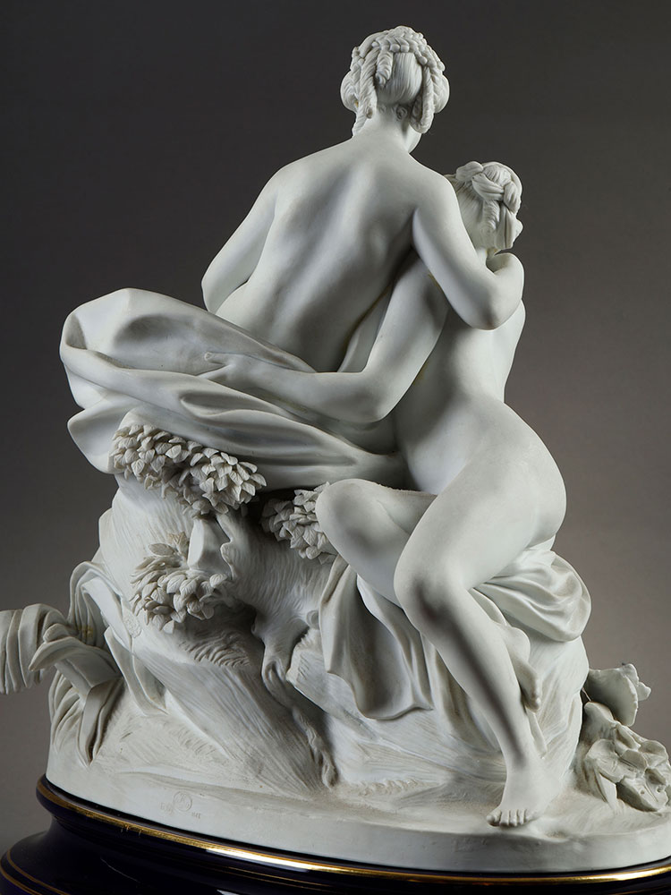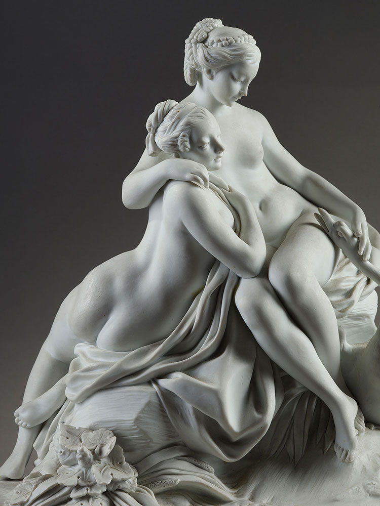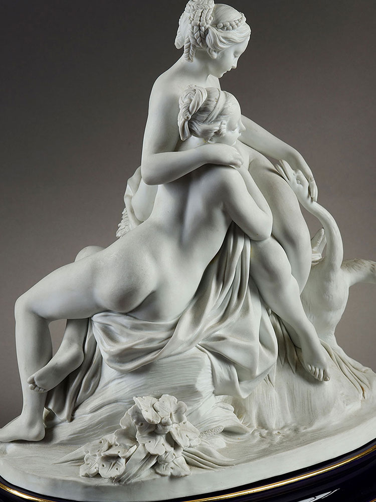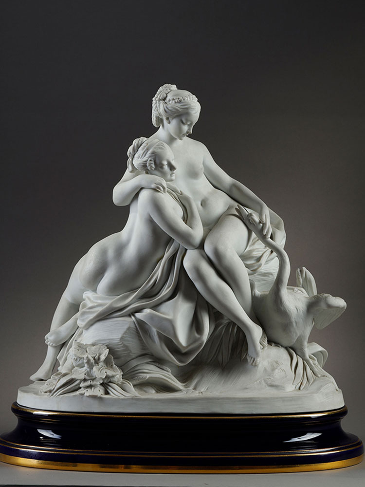 1986年代法国御窑塞弗尔设计出品素胎瓷群像雕塑《丽达与天鹅》