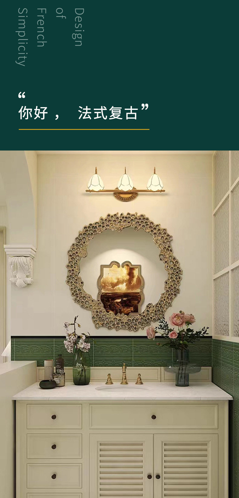 卫生间瓷砖墙砖法式厨房地板砖海基阳台复古布花砖松绿300x1200 商品图3