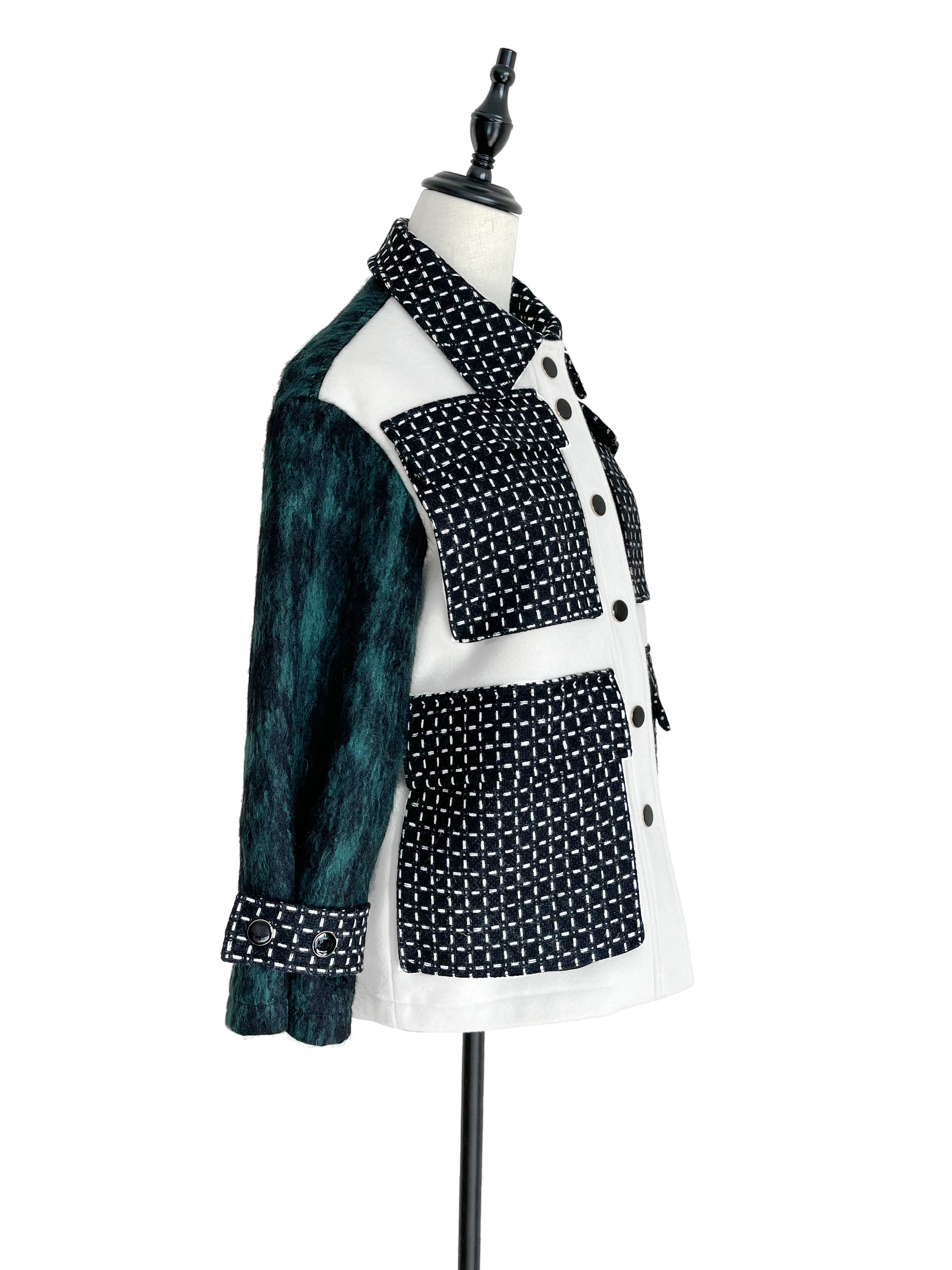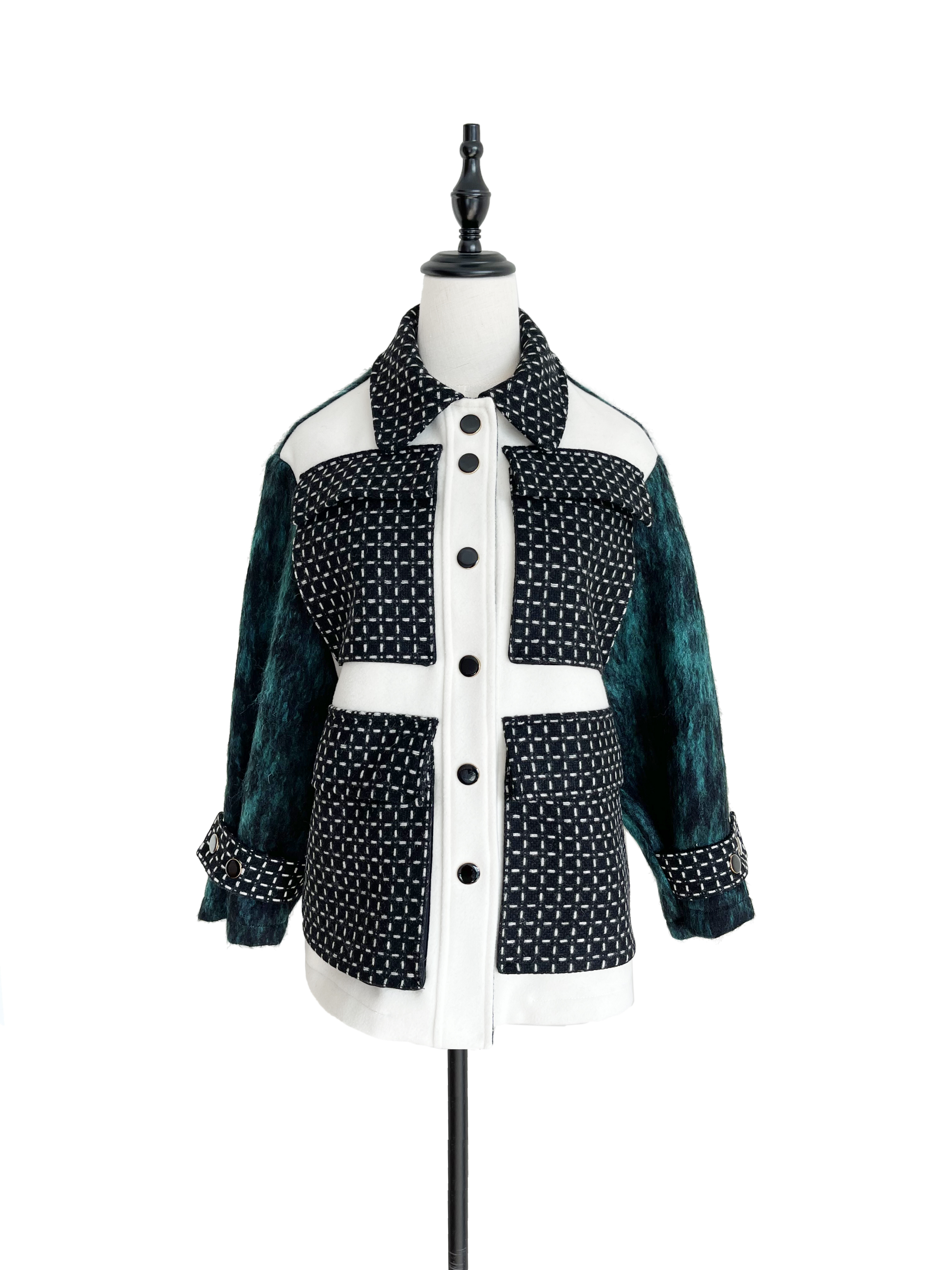 TYNVIE 大插袋拼接袖夹克-绿色拼接