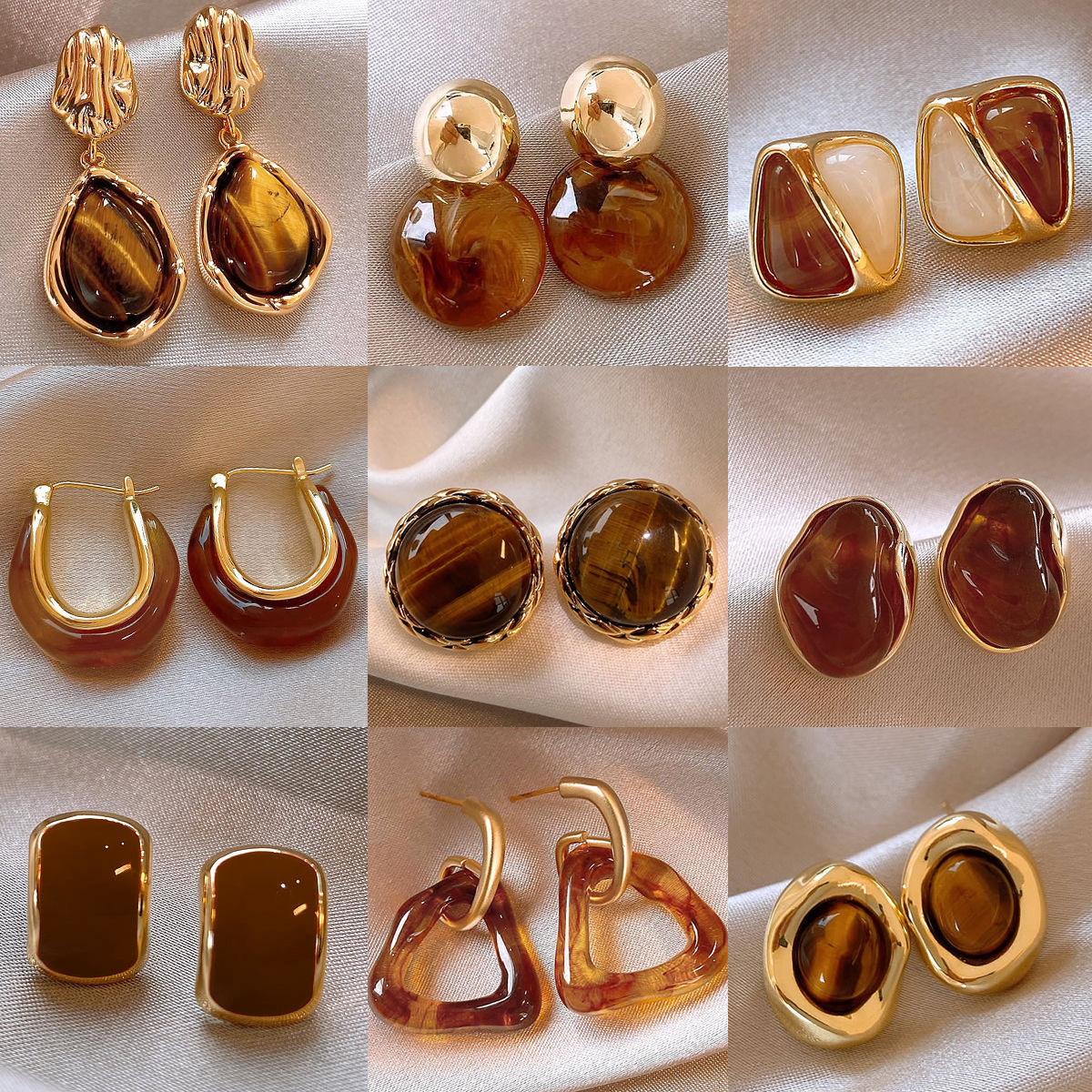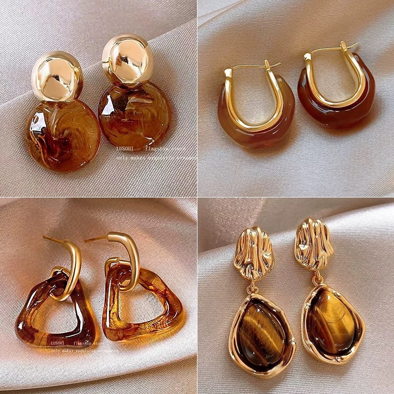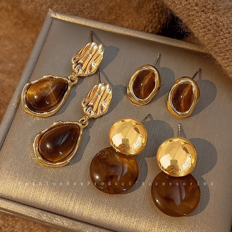 【YW】无忧购【鸿运当“红”】秋冬美拉德高级感琥珀流光耳环女复古气质耳环轻奢高级感时尚百搭耳饰(39/5件)2930-20(截单后3-5天发货)