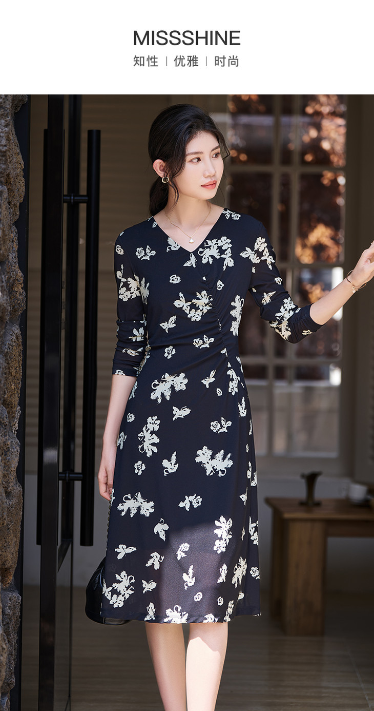 剩S/M/L/XL 【蝴蝶印花裙】2026春季新款时尚优雅气质显瘦连衣裙5M24AL0329