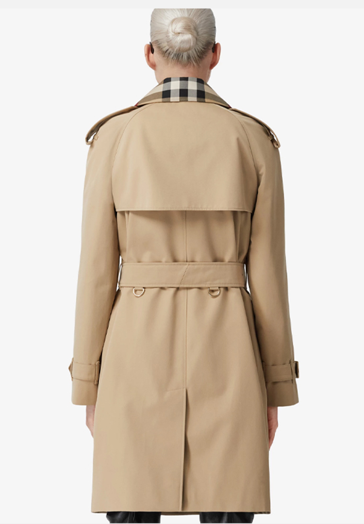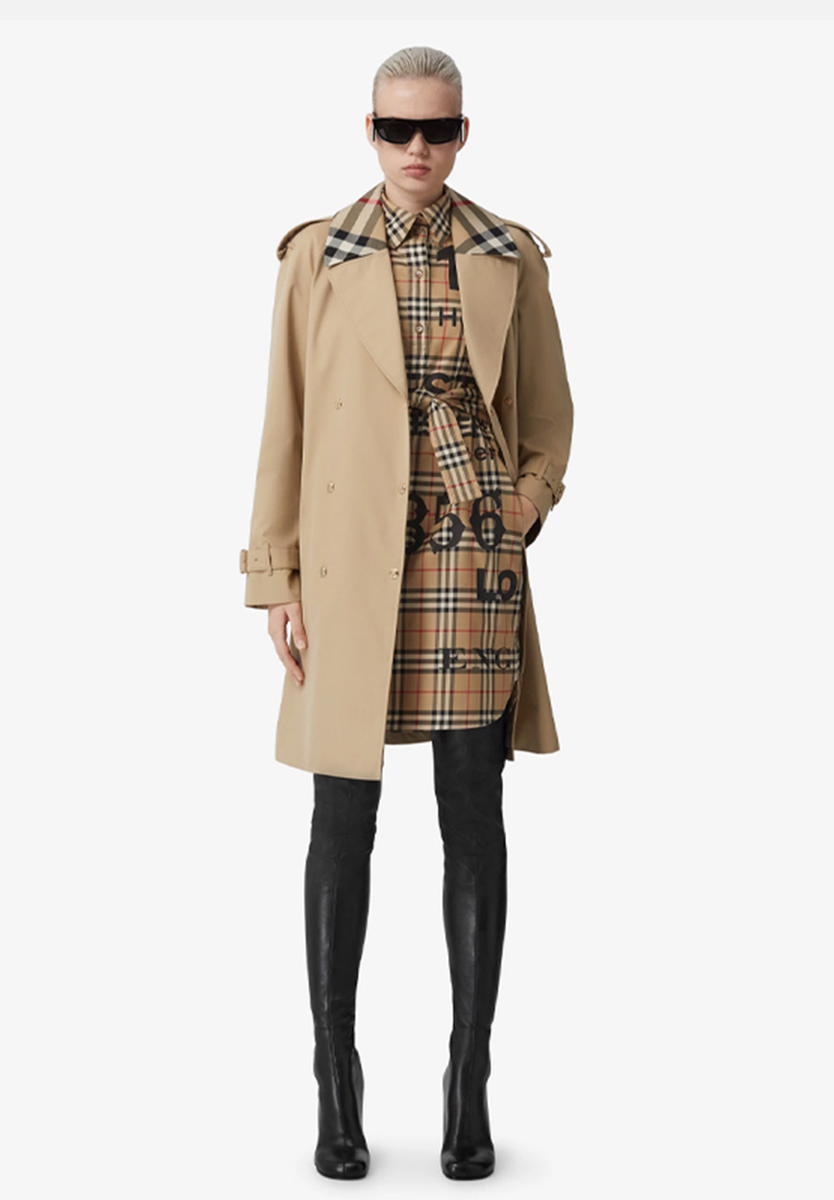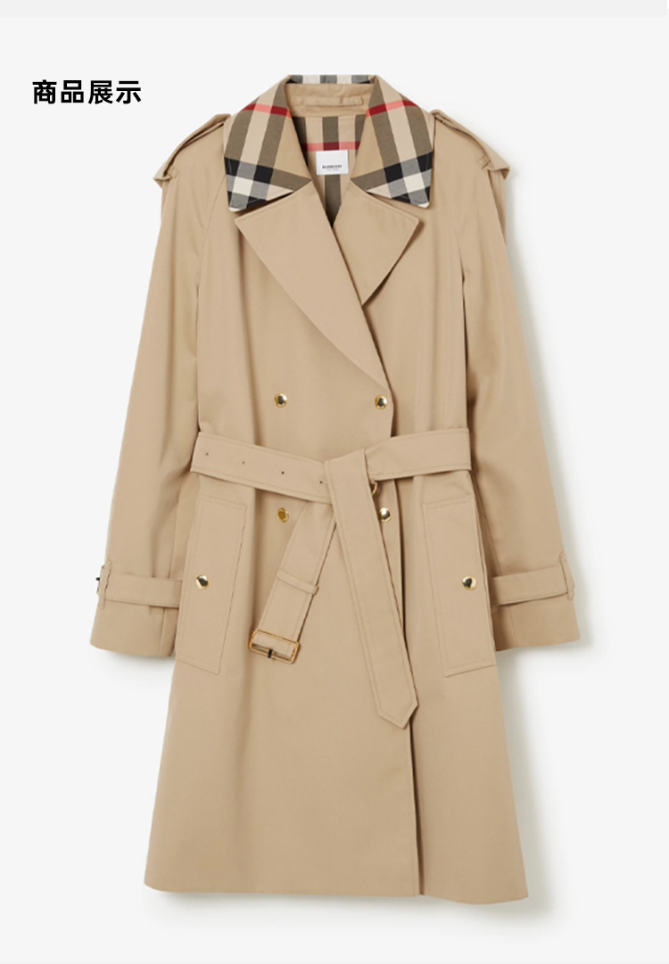 BURBERRY 巴宝莉 女士滑铁卢版型 - 格纹装饰棉质嘎巴甸 Trench 束腰风衣 卡其色 8058231 A1366