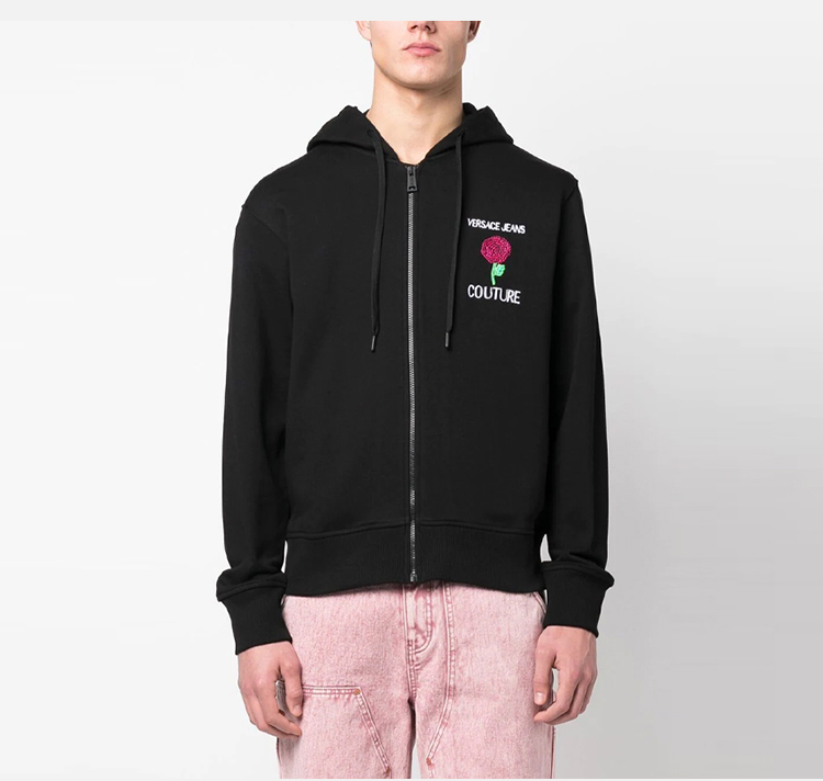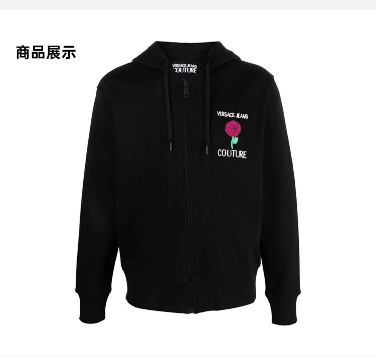 VERSACE JEANS COUTURE 范思哲 男士棉质刺绣徽标拉链连帽卫衣 黑色 74GAII02 CF00I 899
