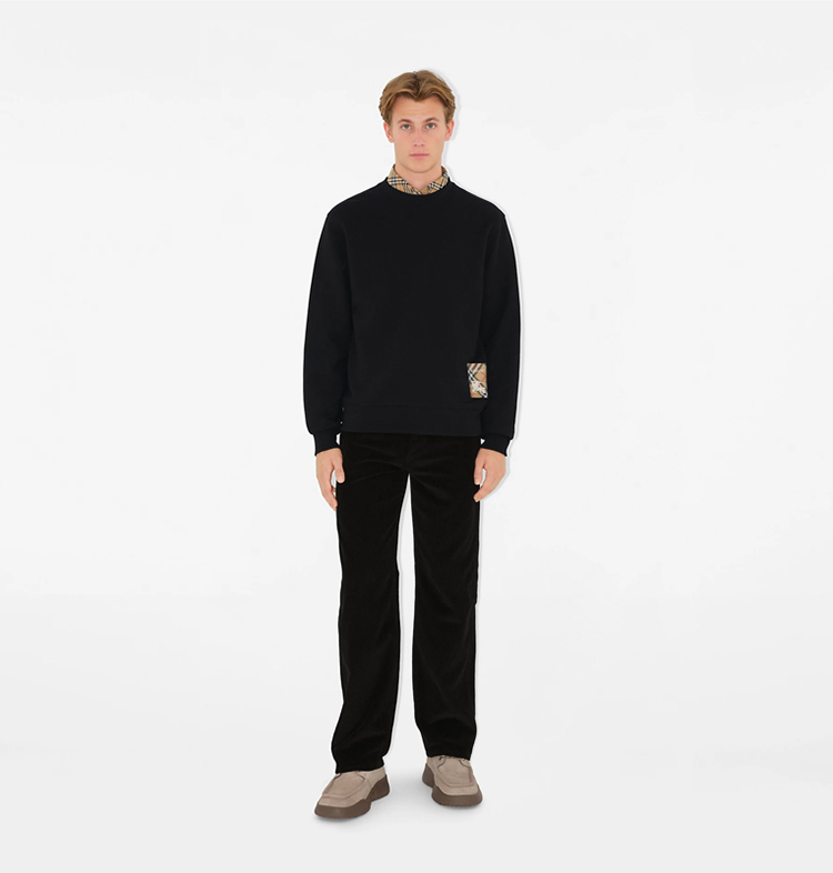 BURBERRY 巴宝莉 男士格纹马术骑士徽标标签棉质运动卫衣 黑色 8101889 A1189