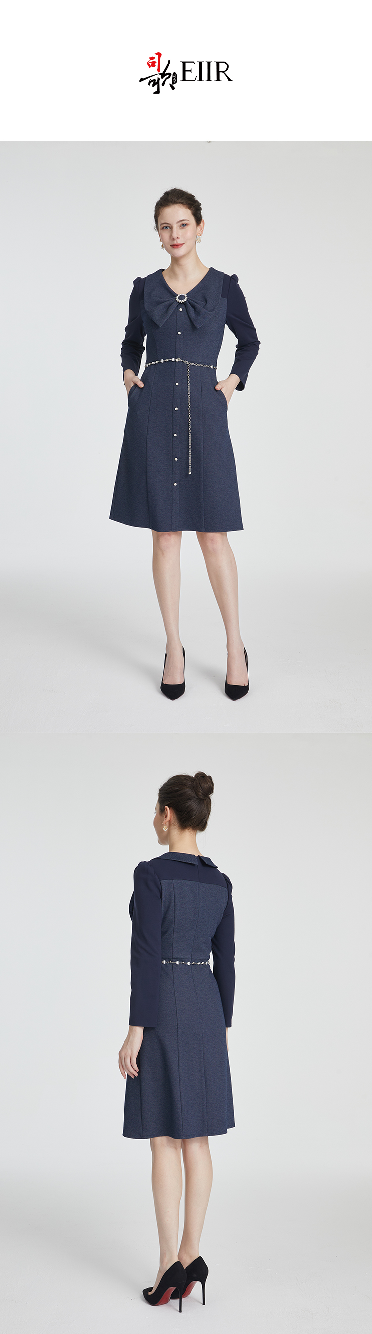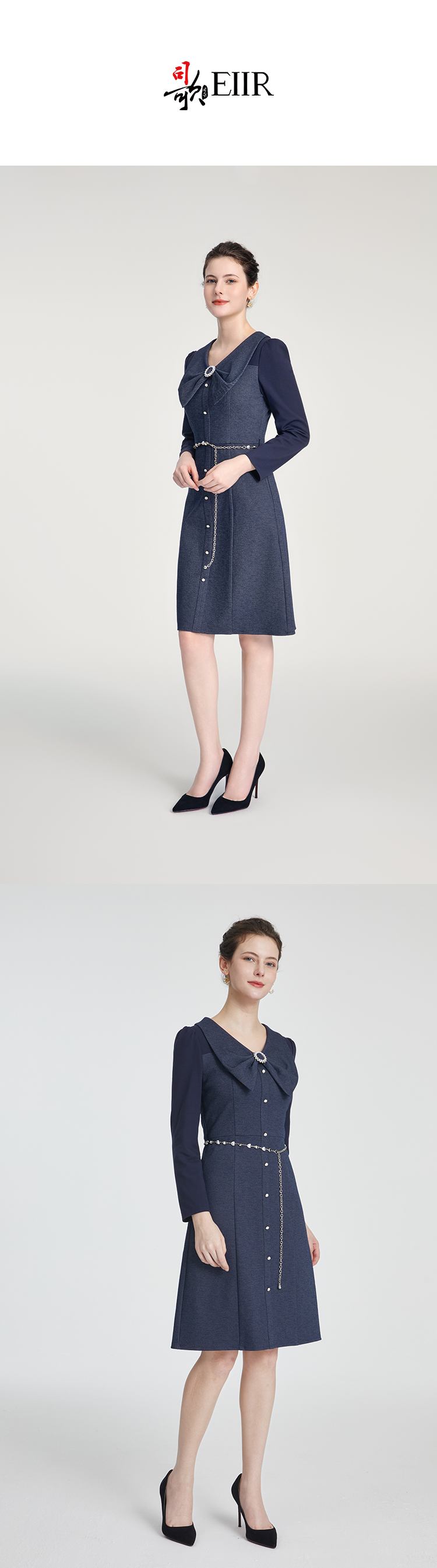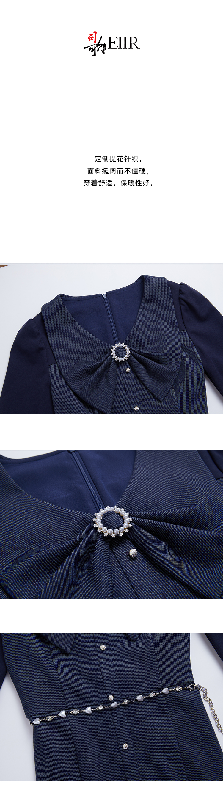 司歌冬连衣裙精致优雅v领长袖裙子收腰气质A881093