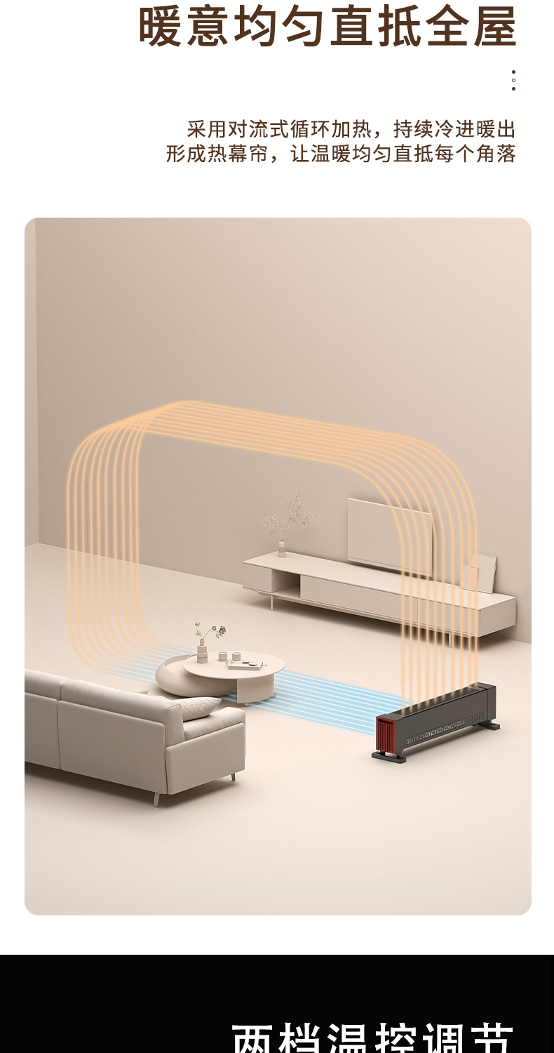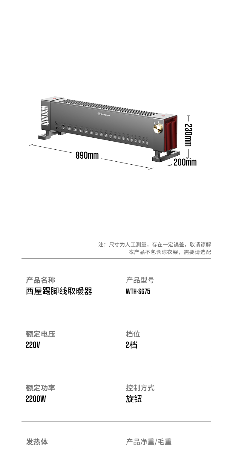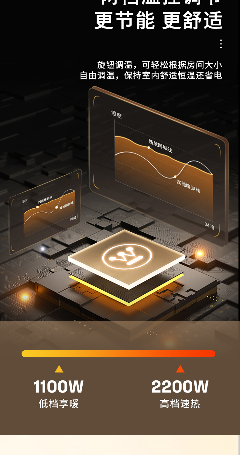西屋(Westinghouse) 家用取暖器轻音石墨烯电暖器移动地暖居浴两用对流电暖气节能省电暖气 WTH-S675