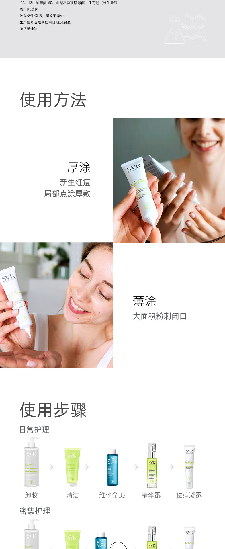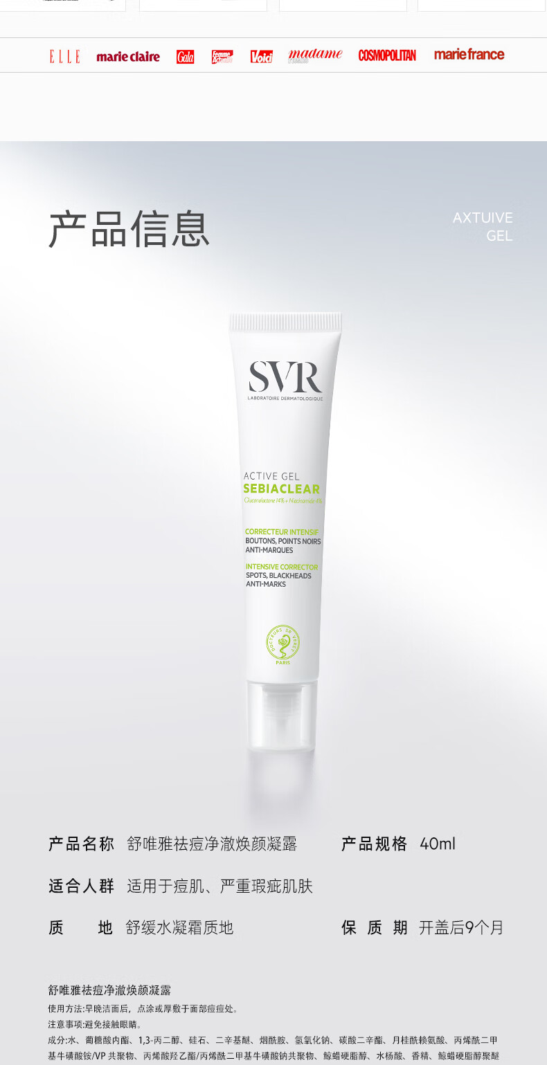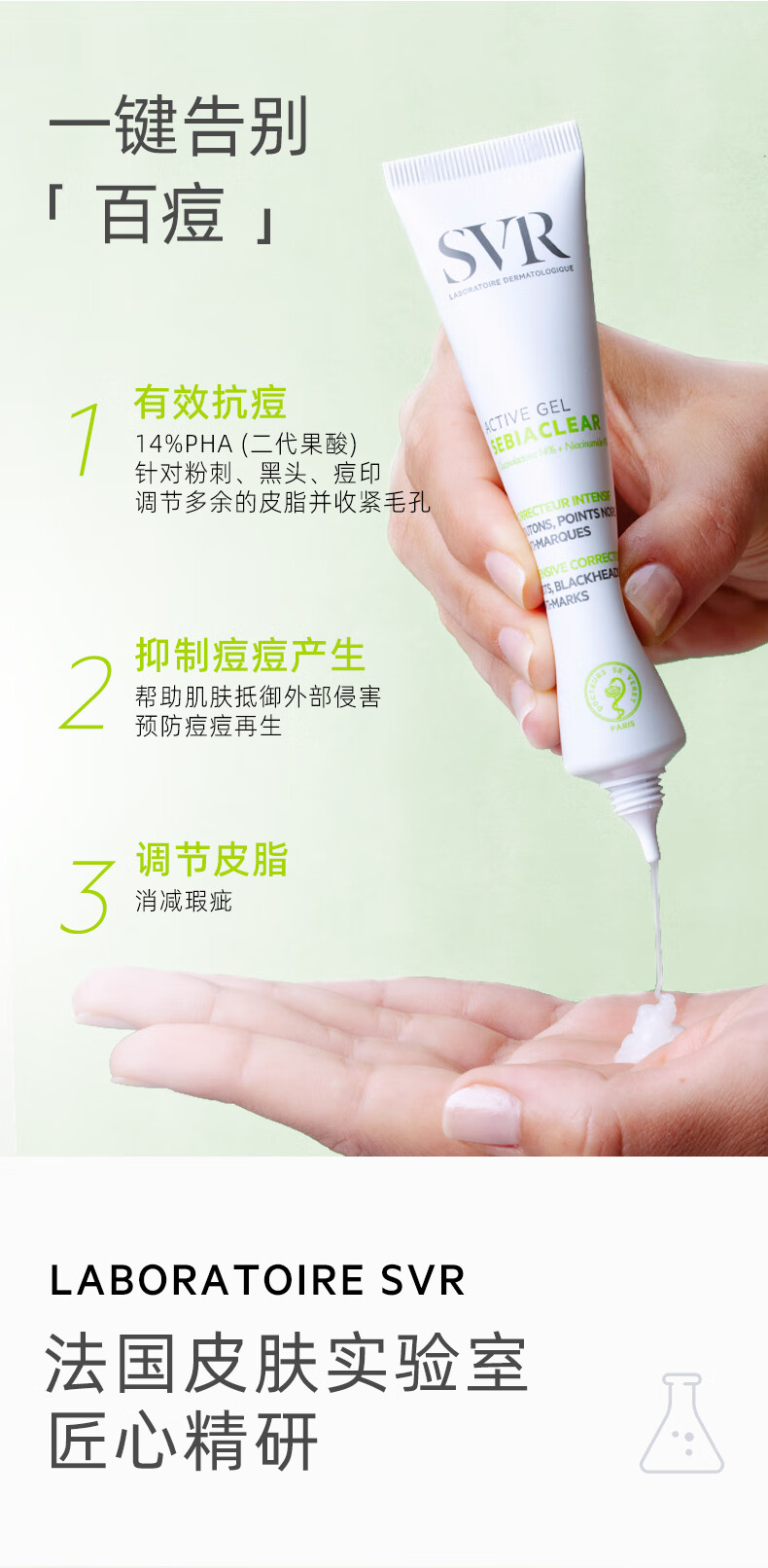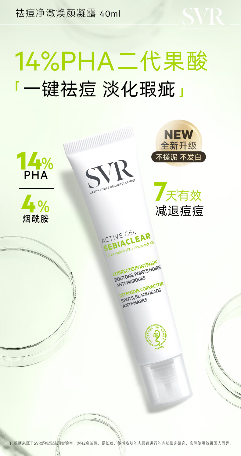 舒唯雅(SVR)祛痘精华消除痘印闭口温和控油水杨酸百痘膏40ml