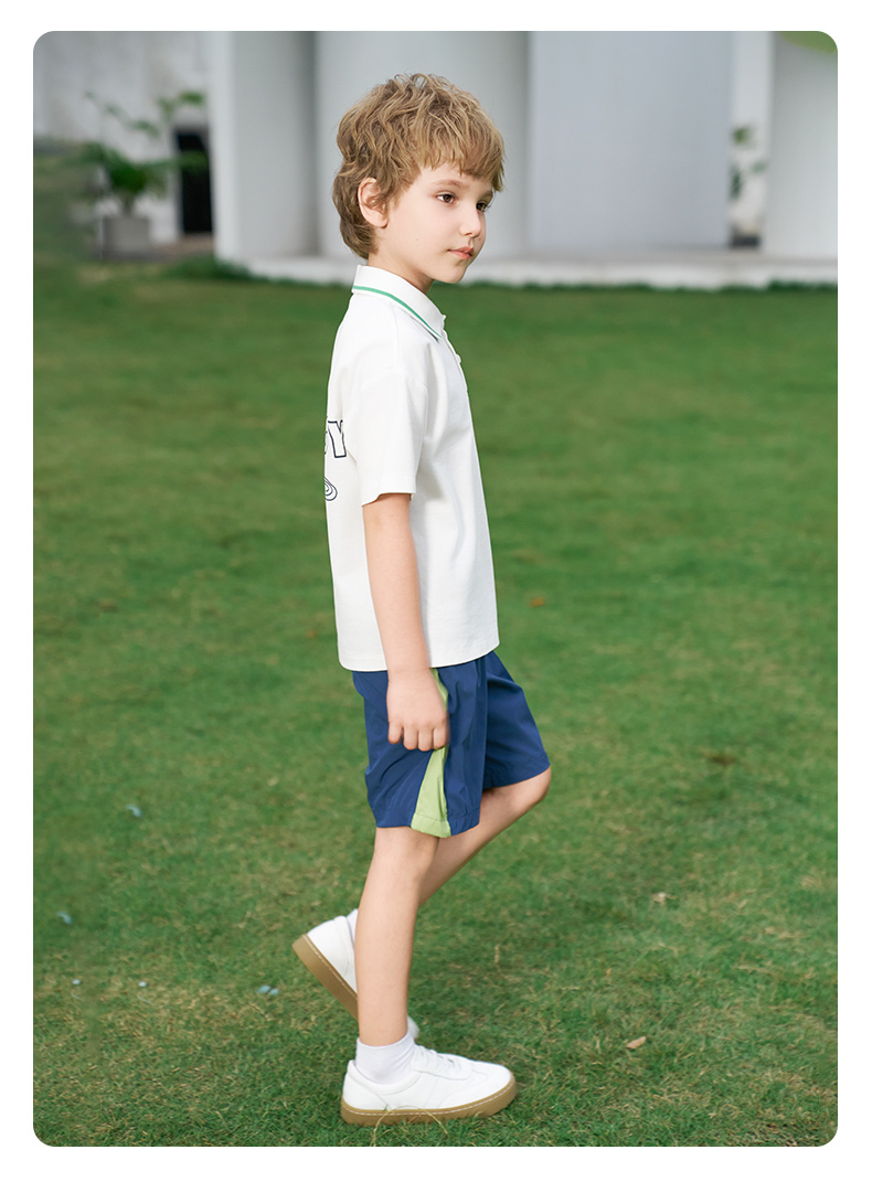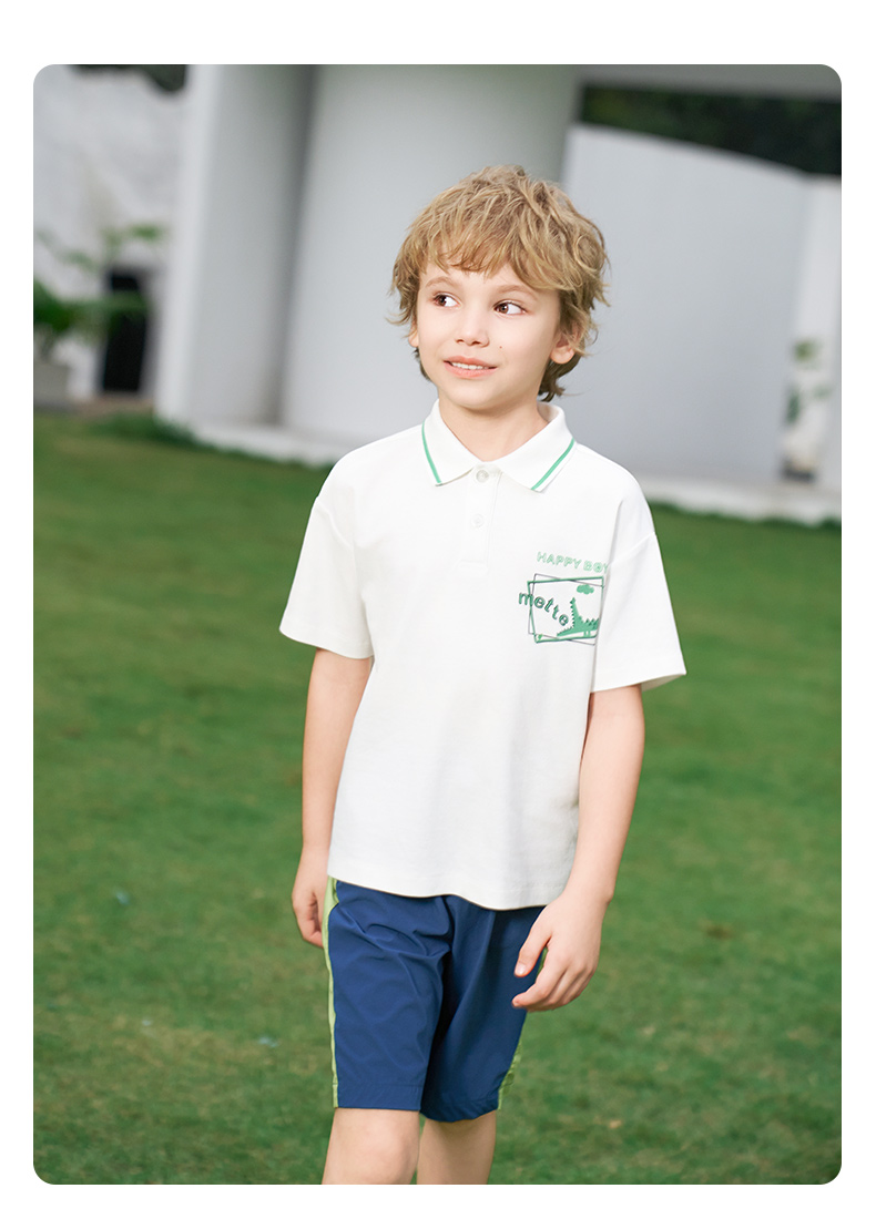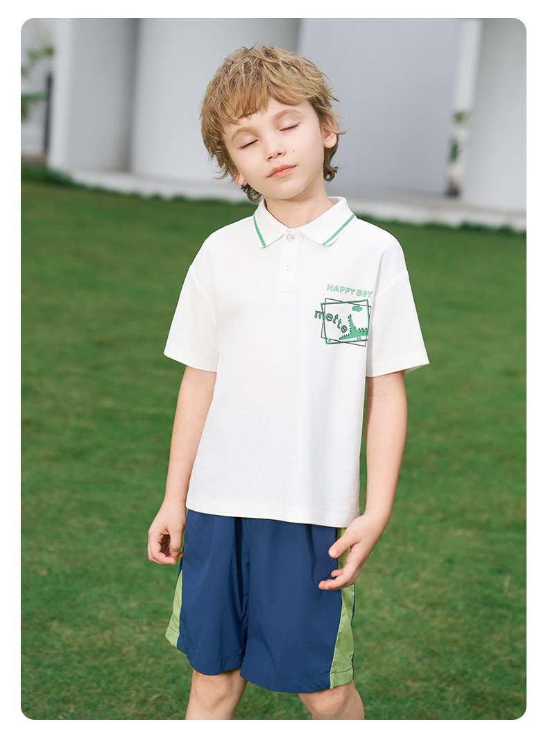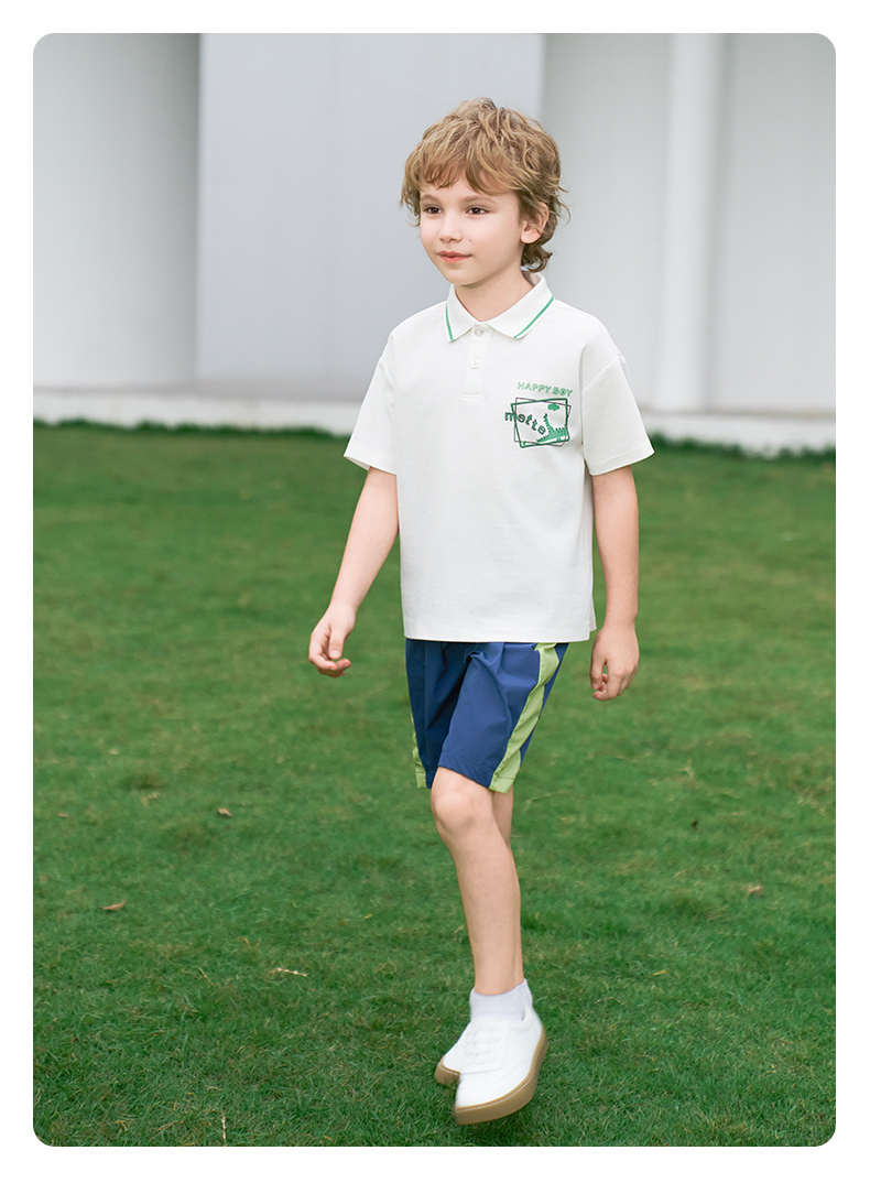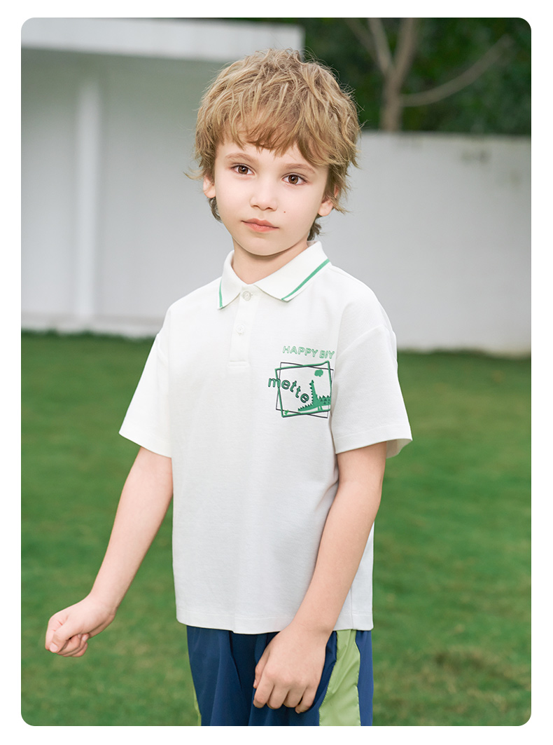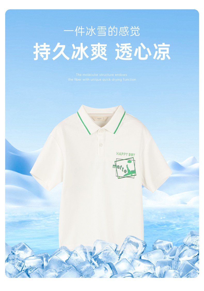 【凉感】mettekids男童短袖t恤2024夏新款儿童白色大童透气Polo衫