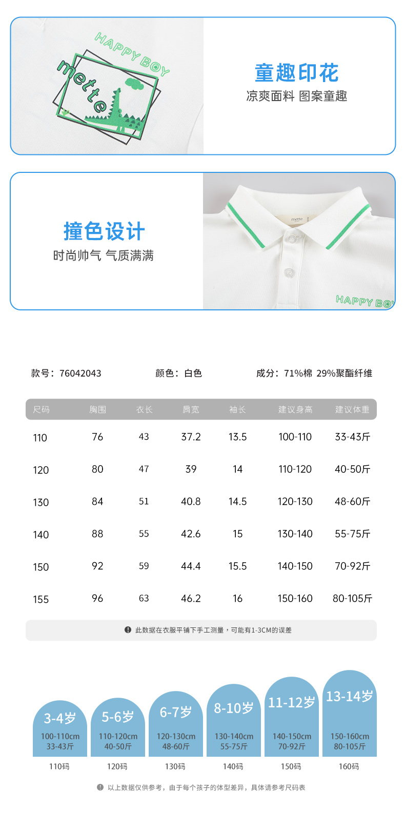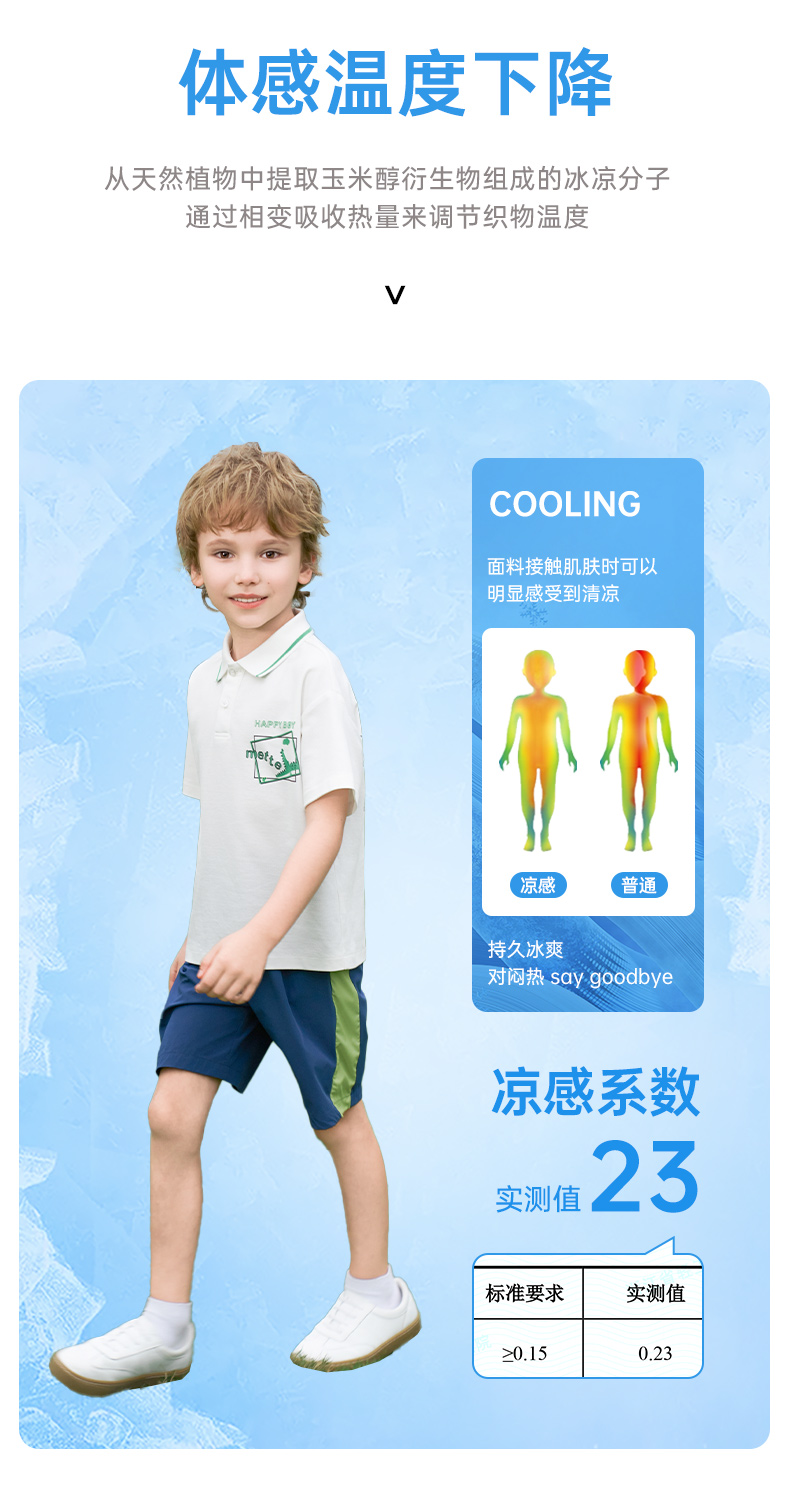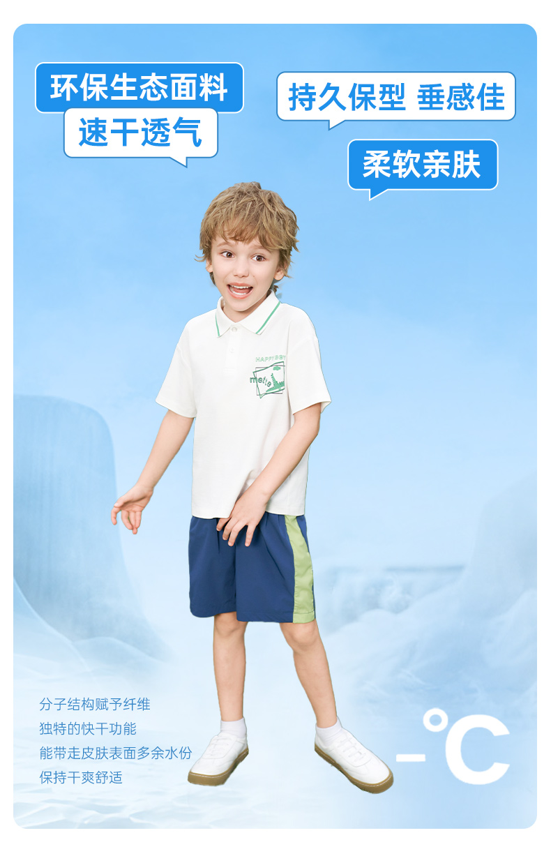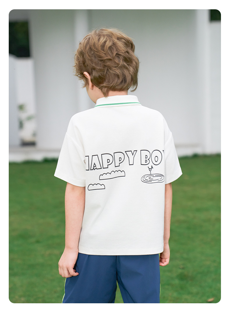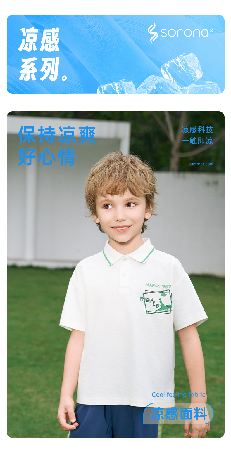 【凉感】mettekids男童短袖t恤2024夏新款儿童白色大童透气Polo衫