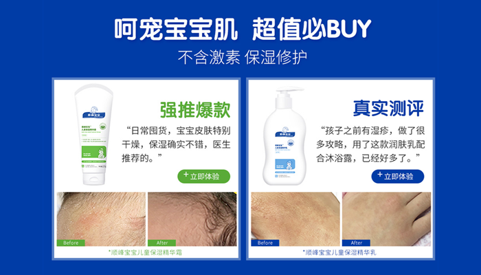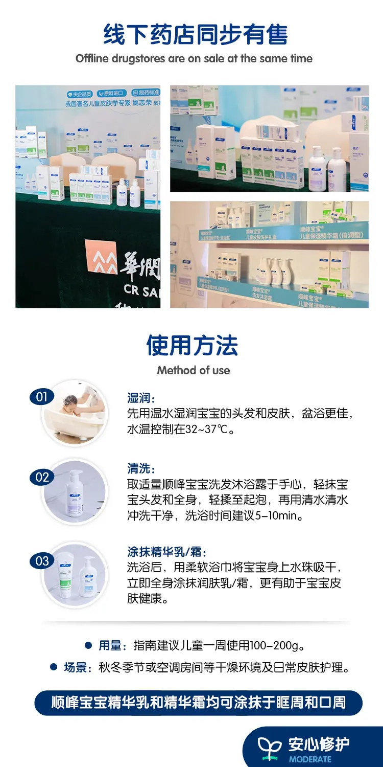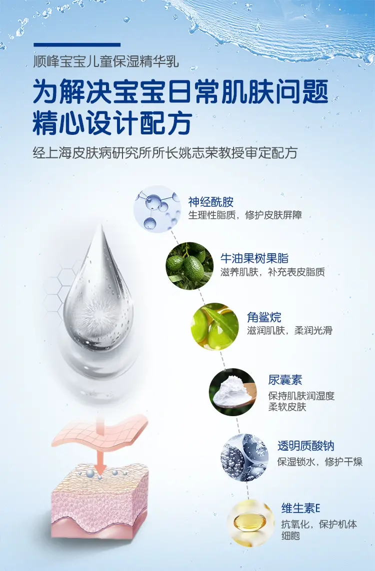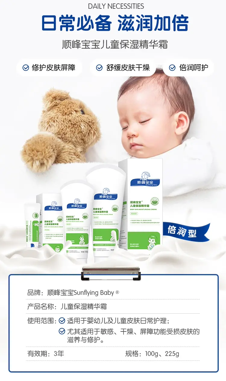 顺峰宝宝儿童专业护理套装:顺峰宝宝保湿精华霜225g/瓶 +洗发沐浴露300ml/瓶
