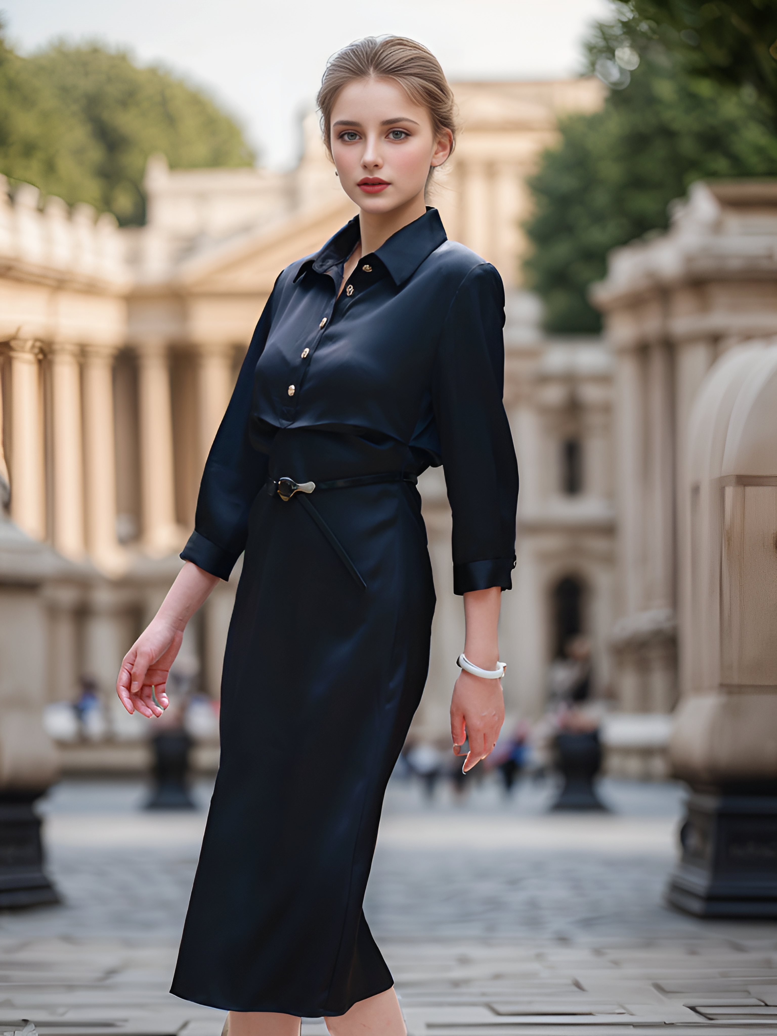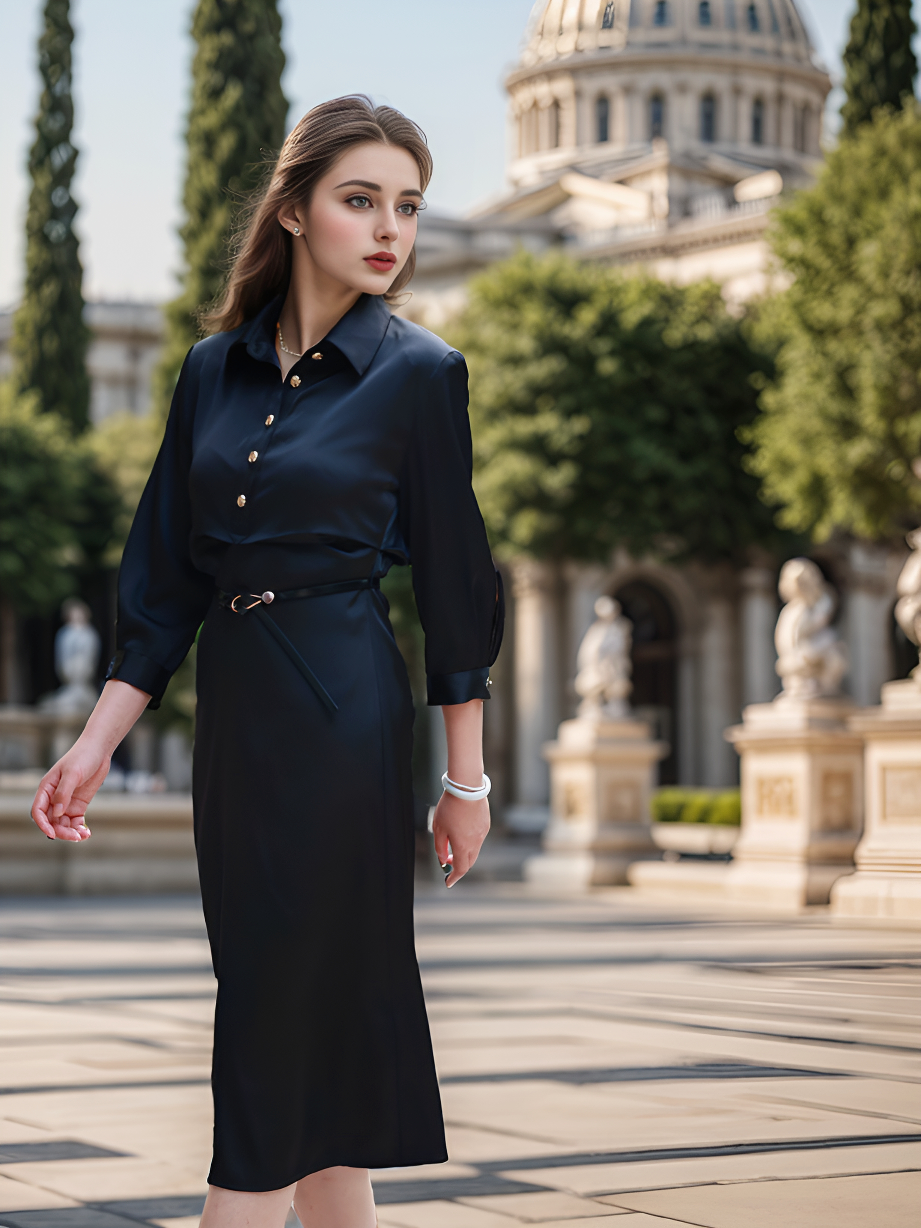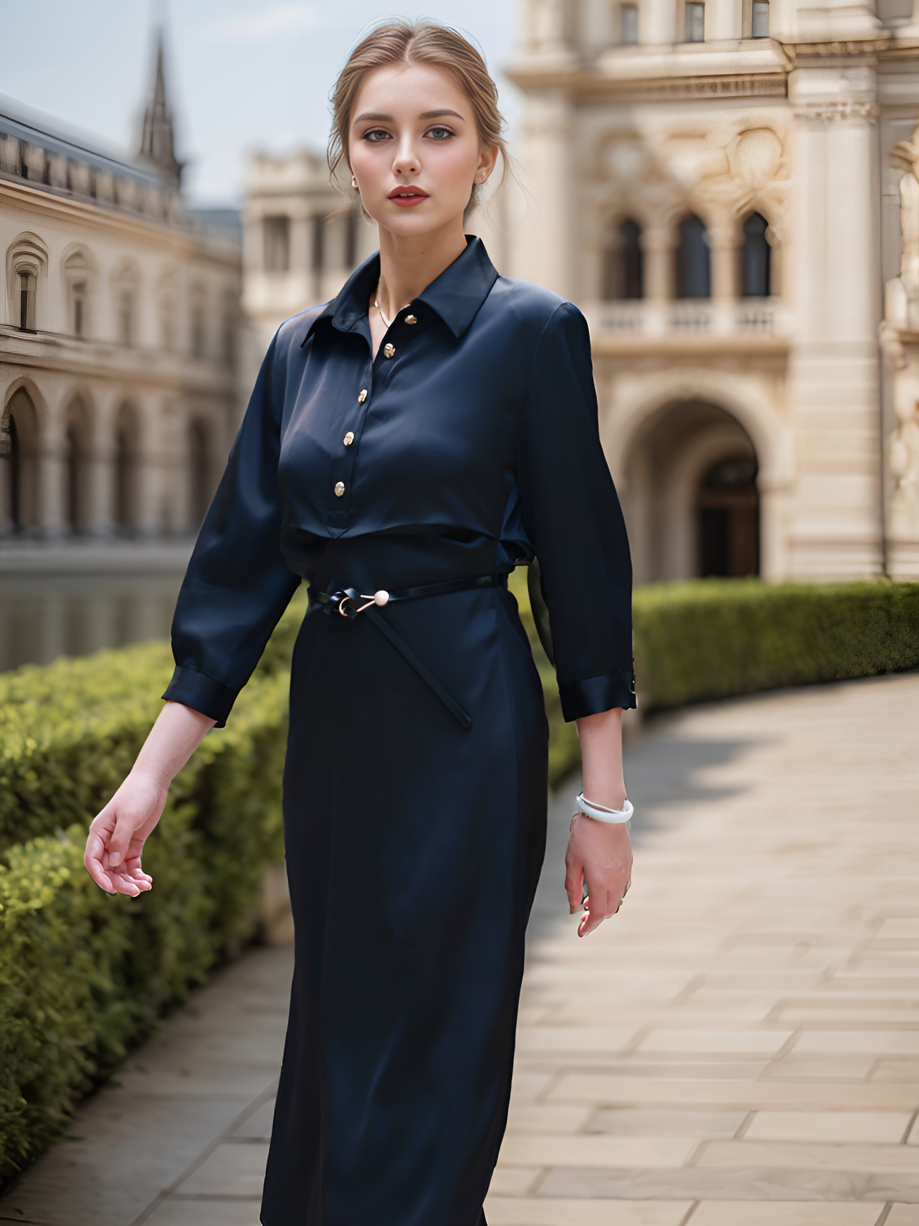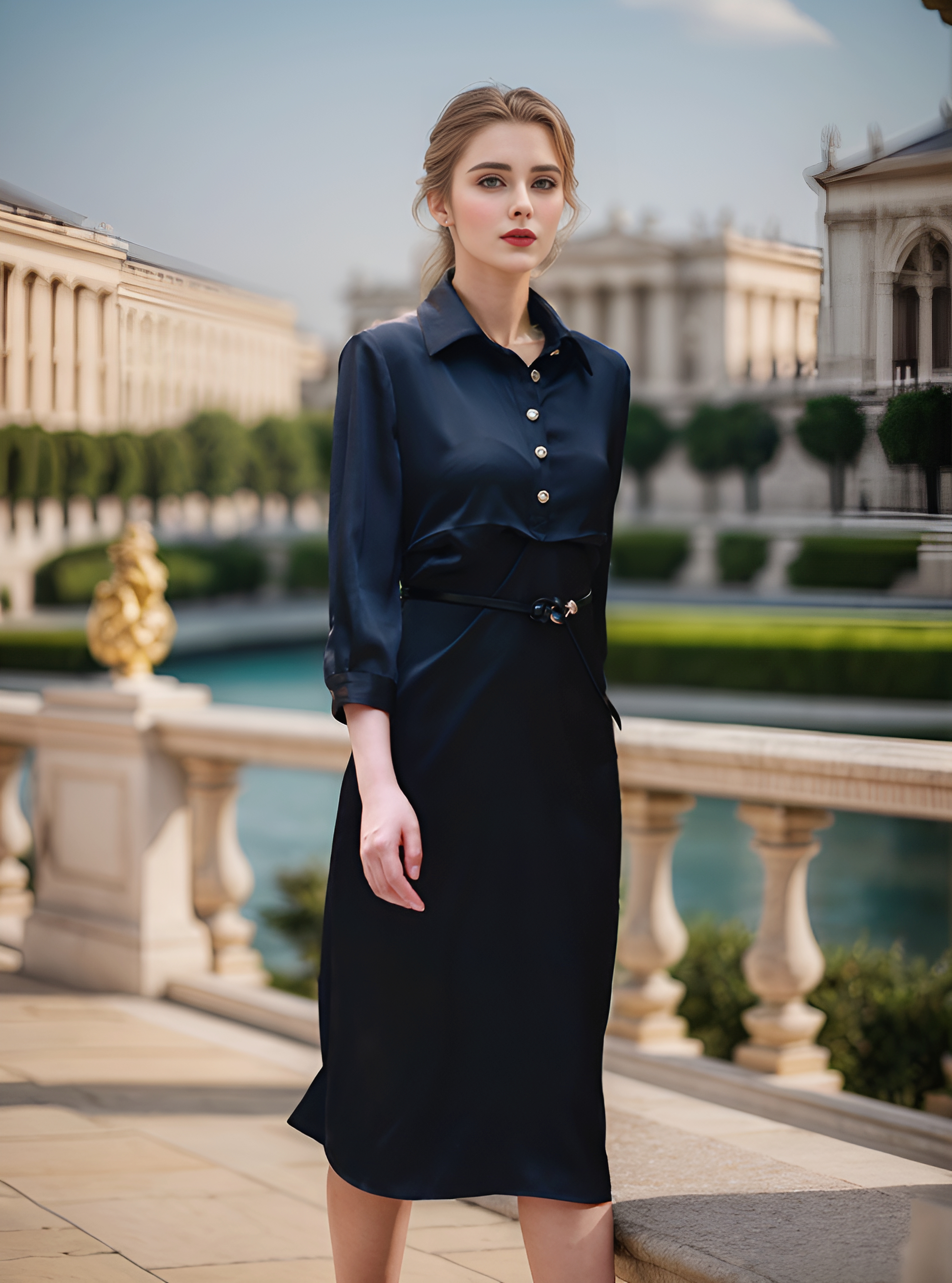 商品:Anica XN 复古通勤翻领气质衬衫连衣裙(附腰带)