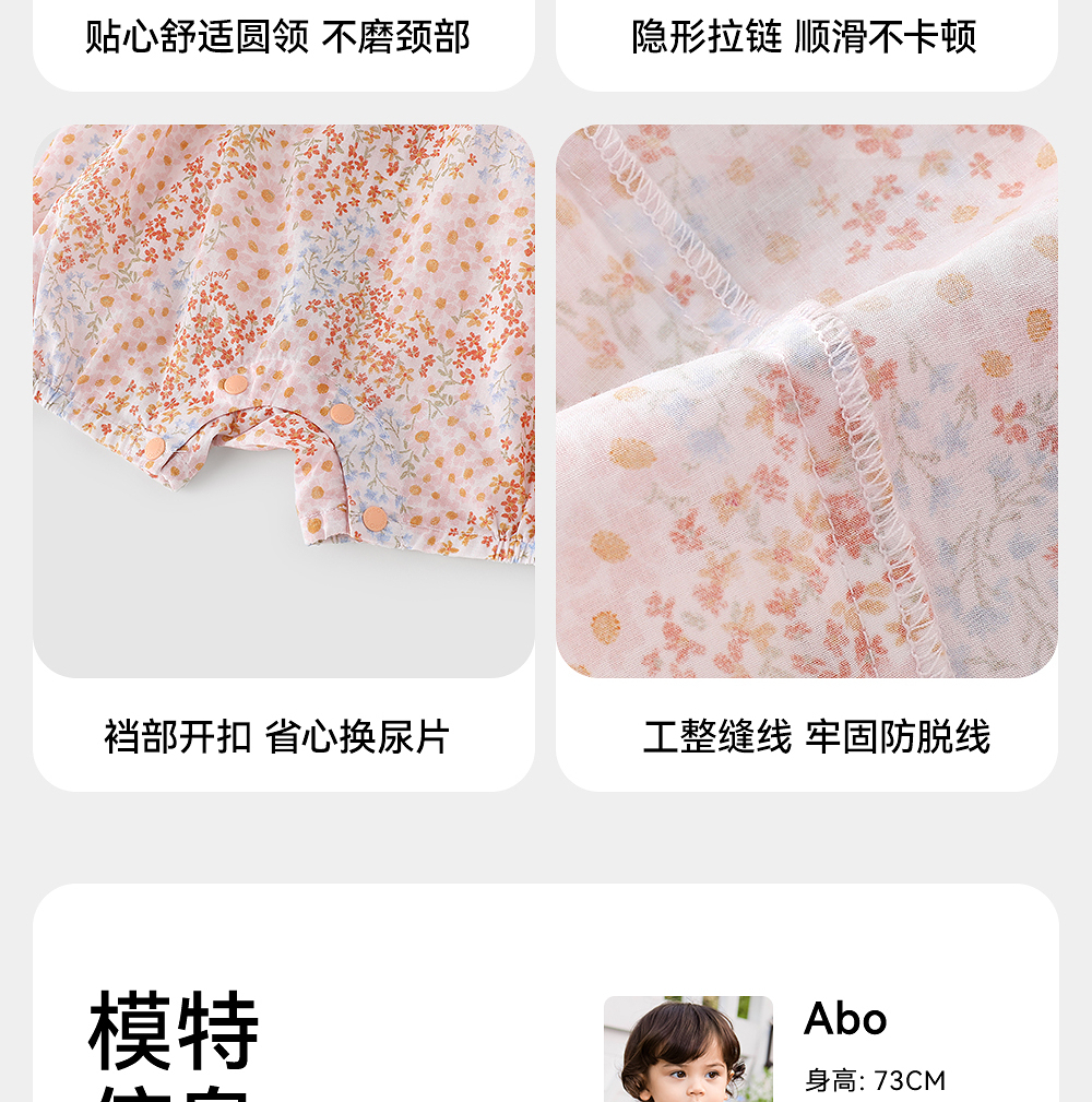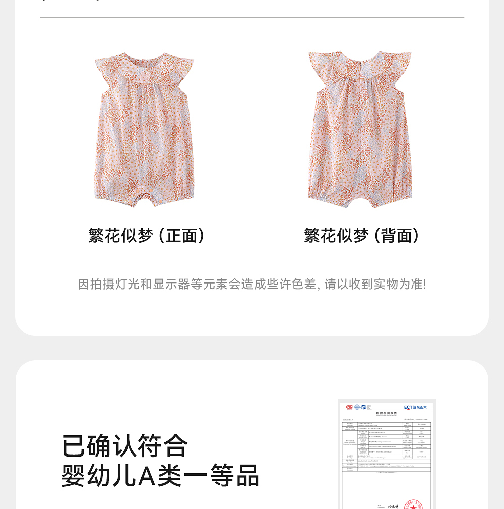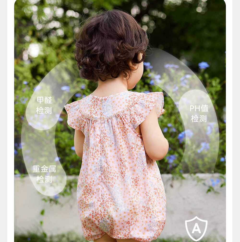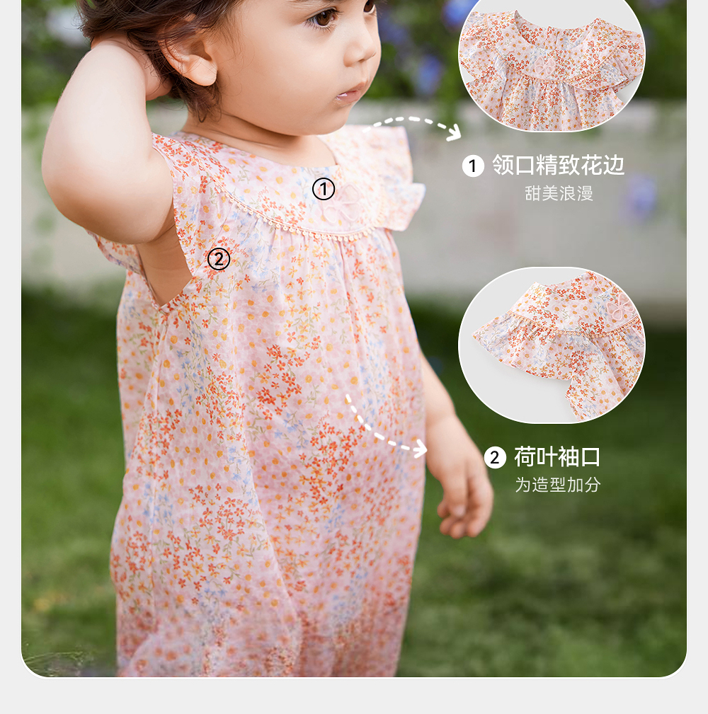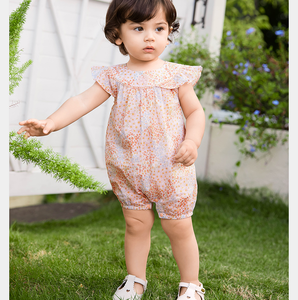 英氏婴儿衣服夏季轻薄纯棉月亮裆爬服女童碎花连体衣YRHBJ2R024A
