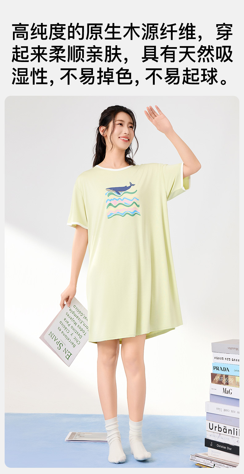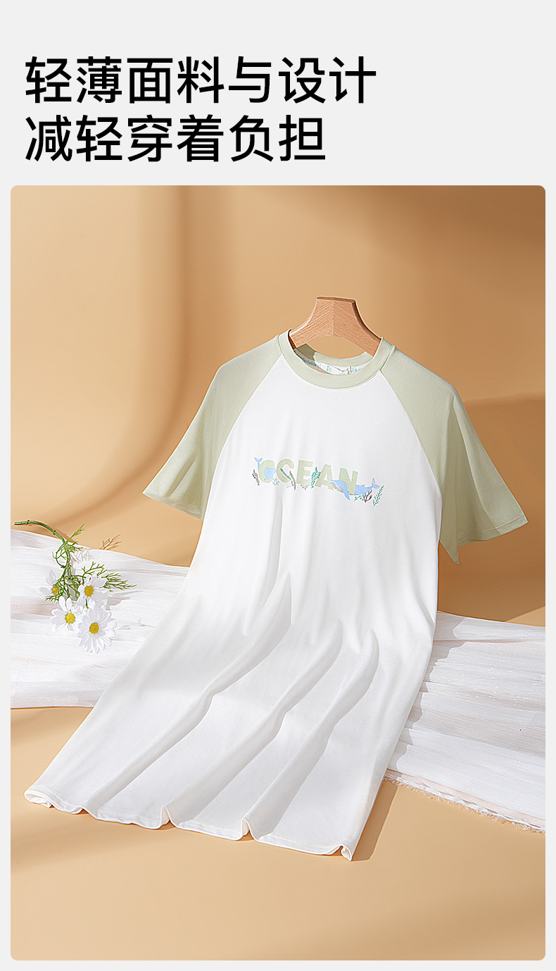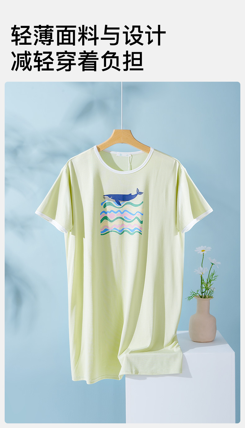 爱帝夏季睡裙女士清爽海洋印花冰丝凉感连衣裙