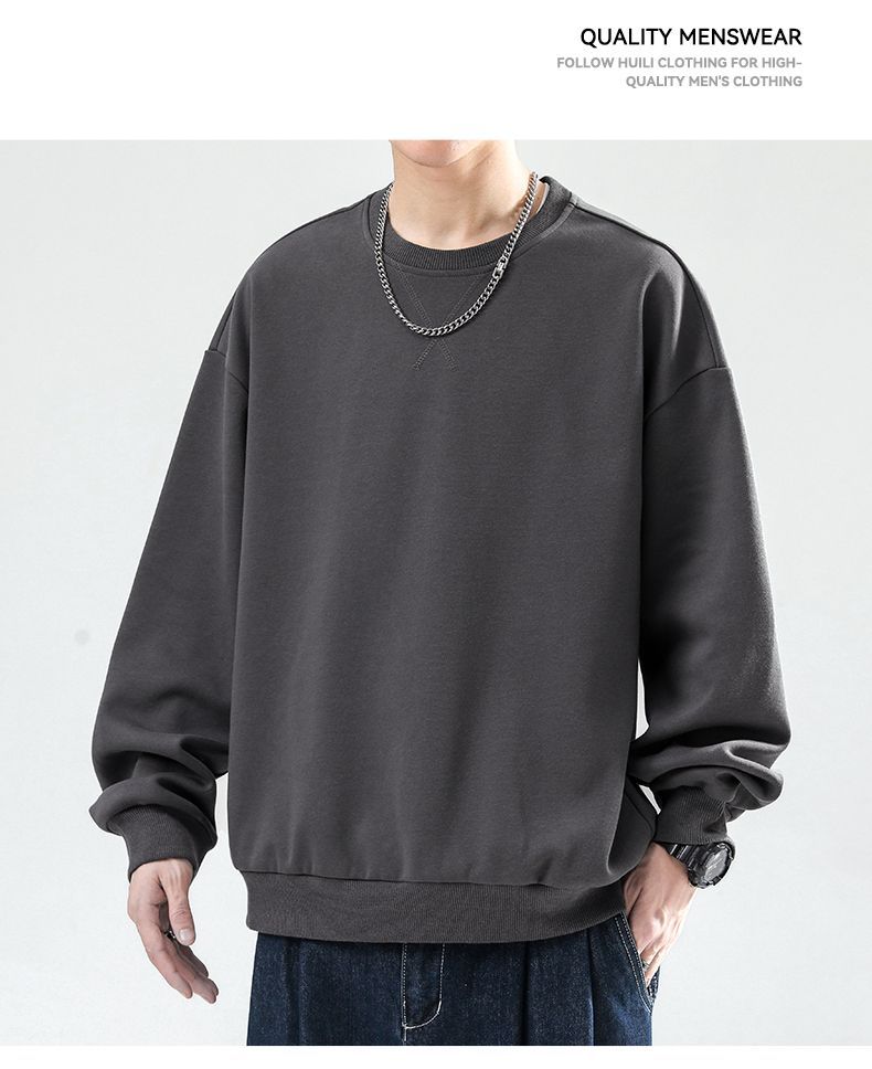 回力卫衣男2025新款春秋圆领宽松重磅男士长袖T恤上衣内搭打底衫