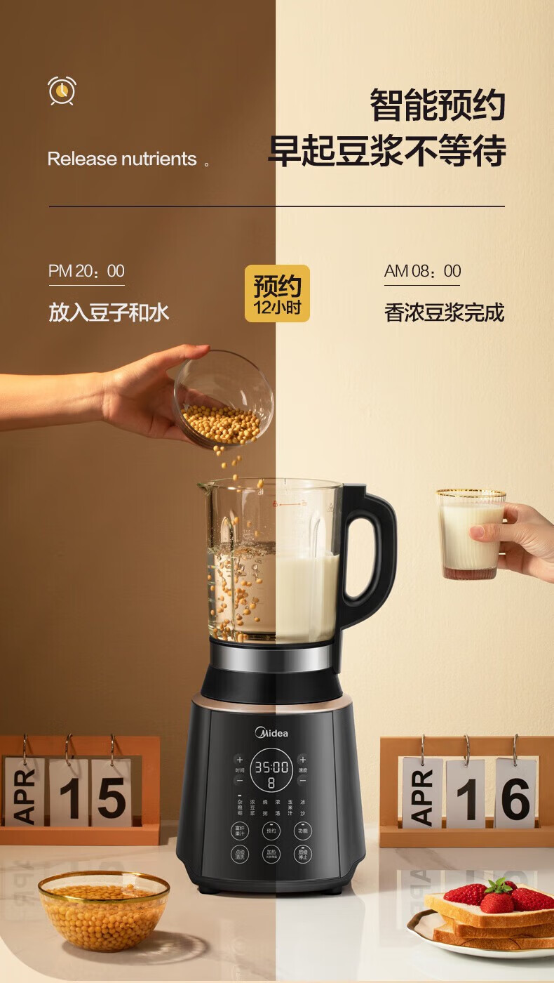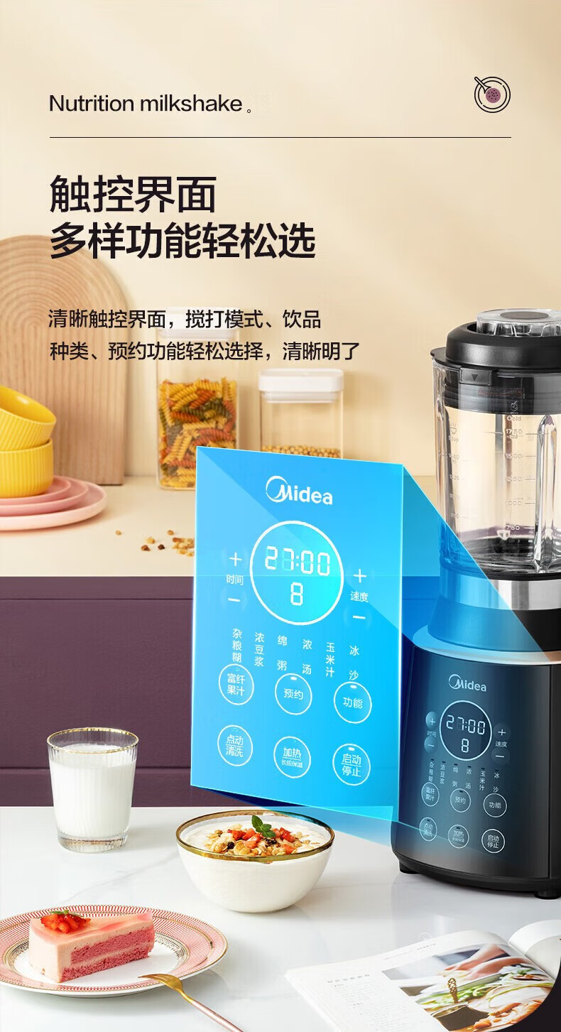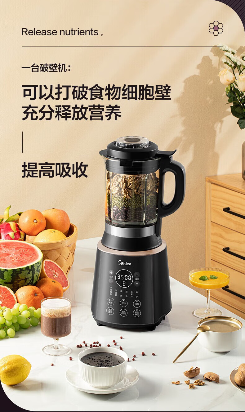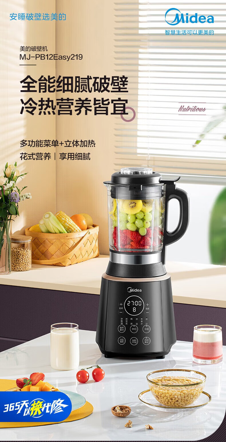 美的MJ-PB12Easy219破壁机料理机榨汁豆浆机智能预冷热营养皆宜BL1339A