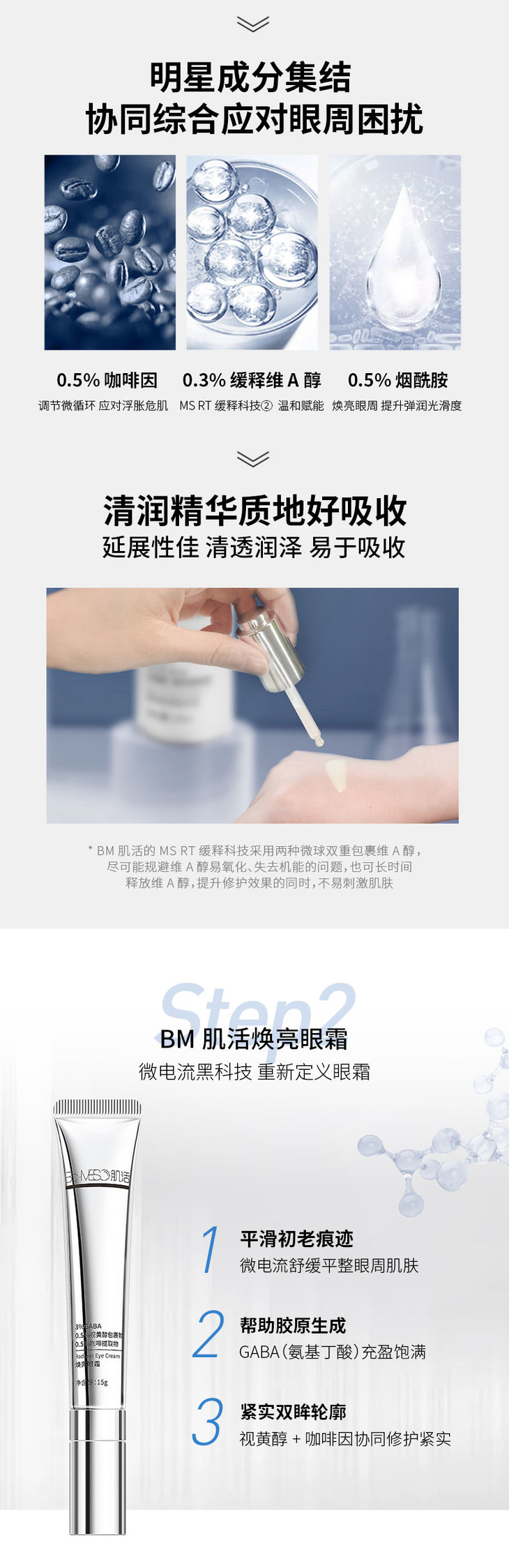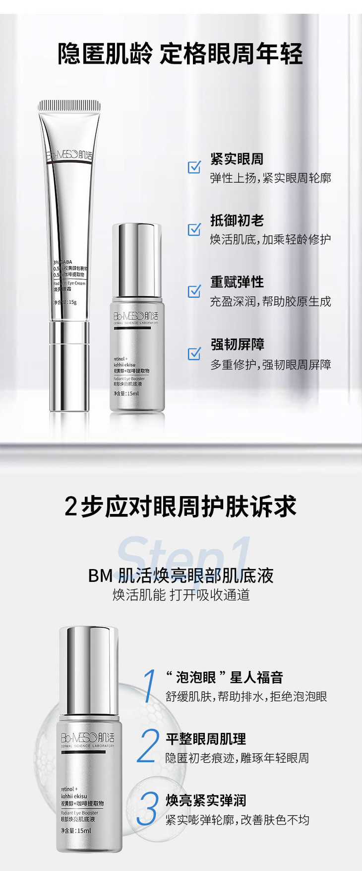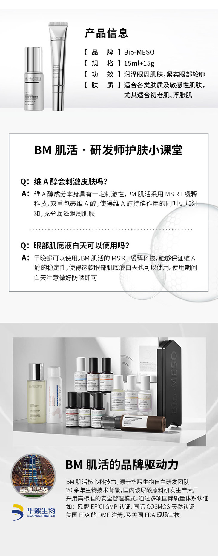 【华熙肌活】华熙BM肌活焕亮眼霜15g/眼精华15mlA醇视黄醇淡文紧致提亮眼周送10片小样