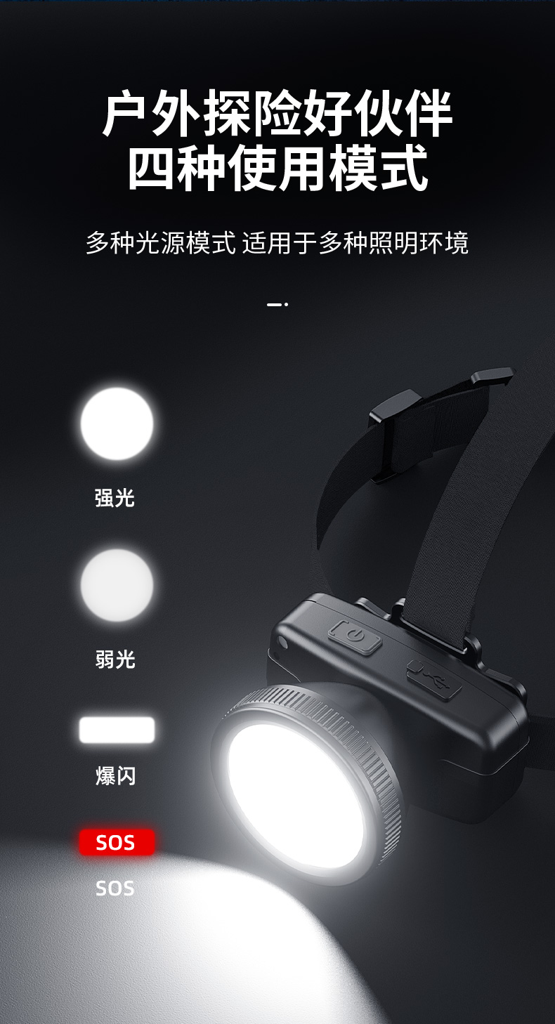 SUPERFIRE神火新品HL55头灯头戴式强光远射充电夜钓灯防水户外露营超轻便携钓鱼灯