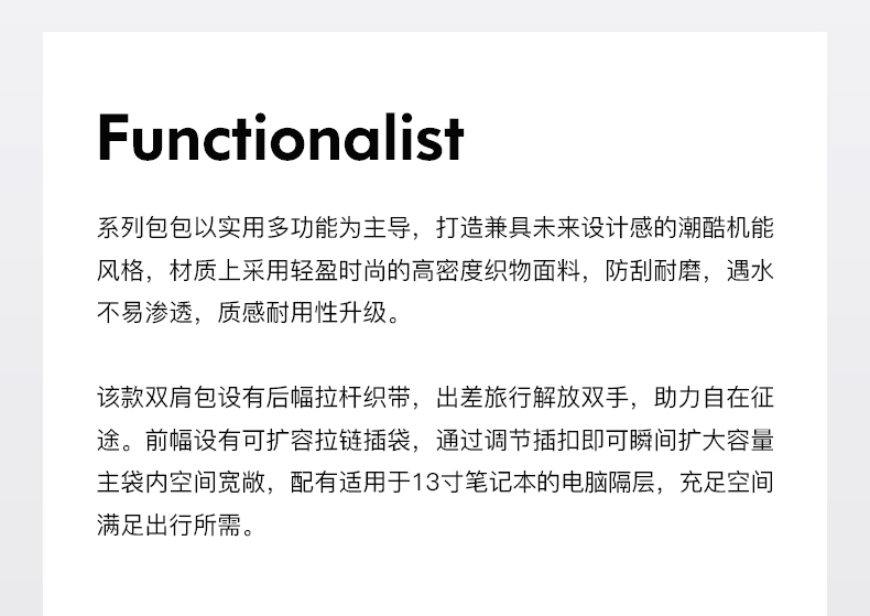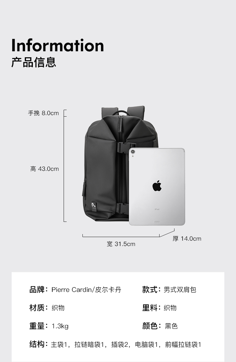 皮尔卡丹functionalist系列 大容量潮酷男士双肩包