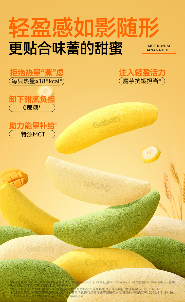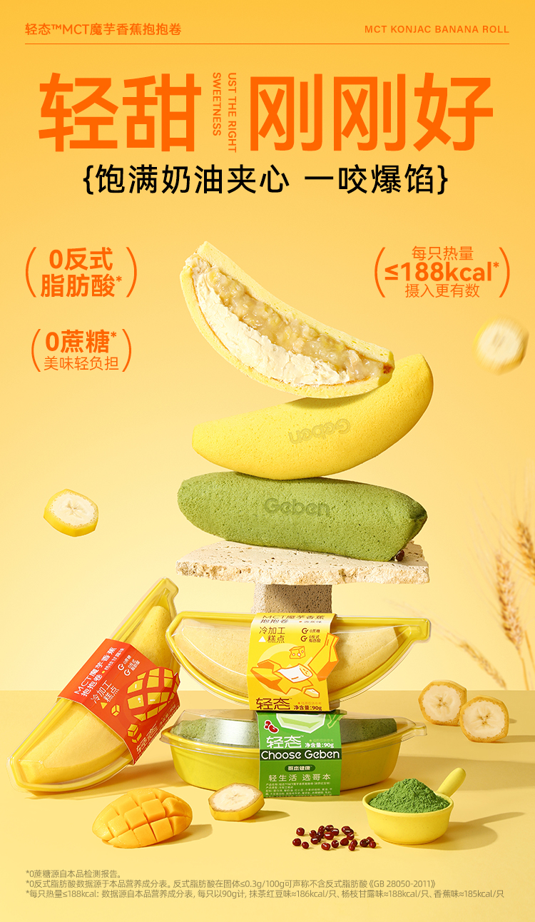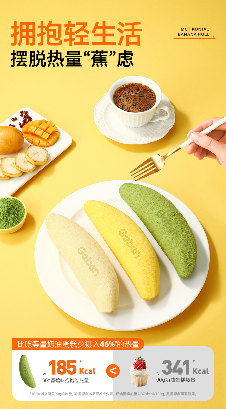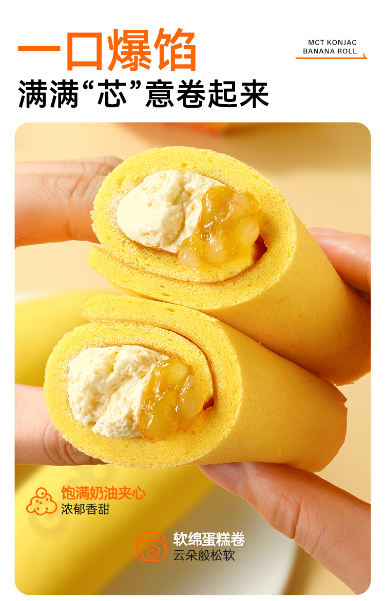 【共享分销】不添加蔗糖!哥本MCT魔芋香蕉抱抱卷蛋糕 一只约200多大卡 自律期放心吃 每只90g