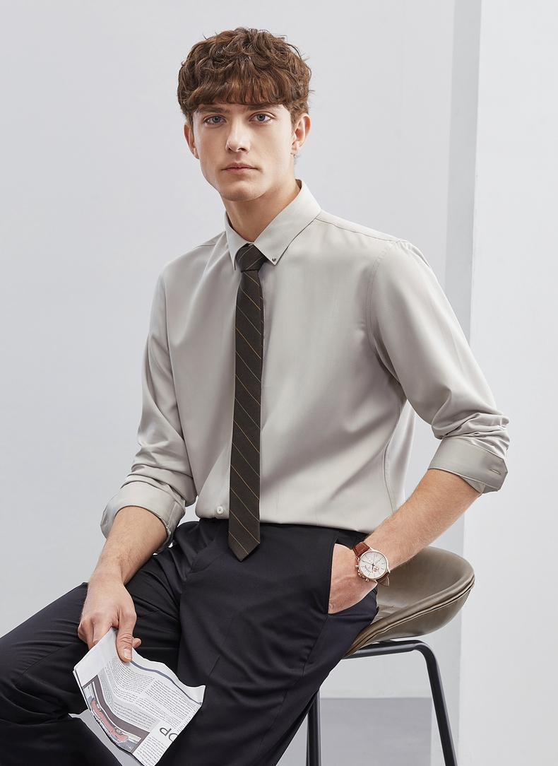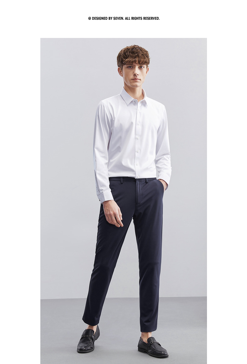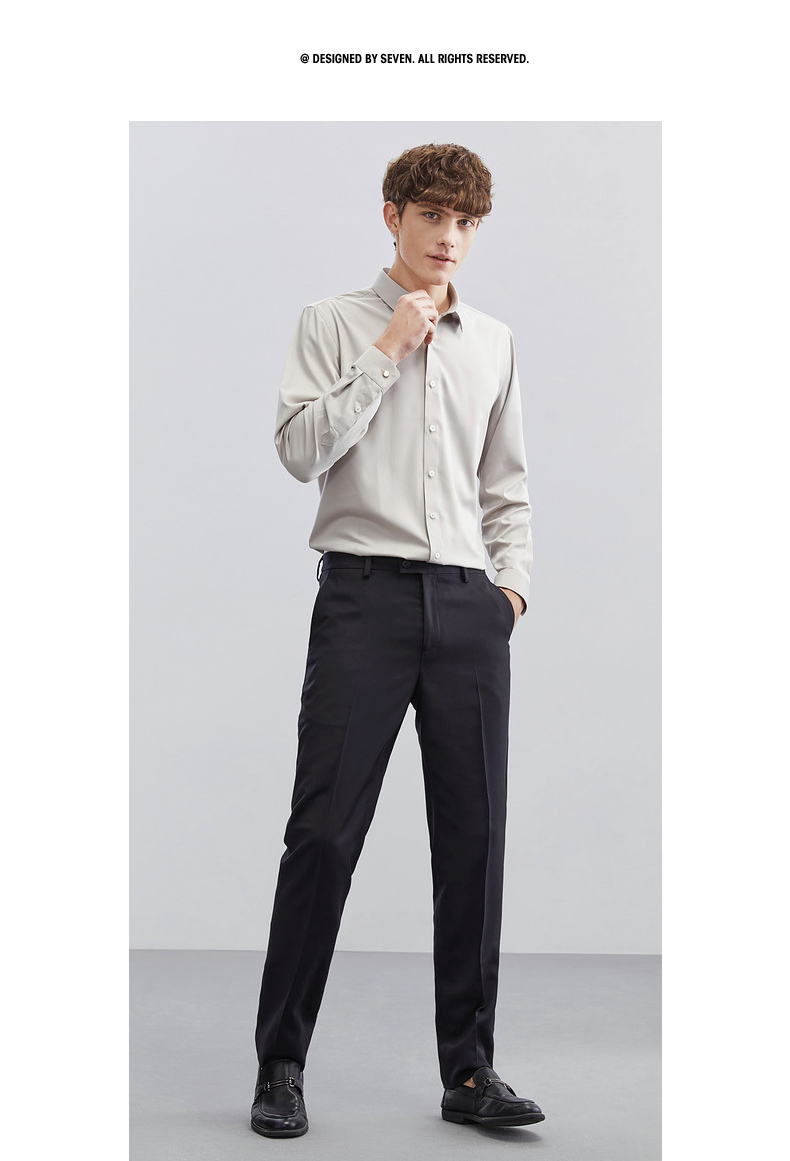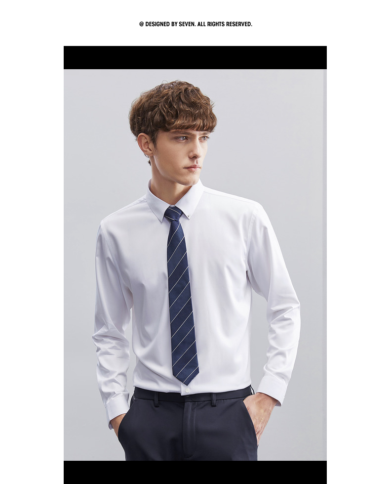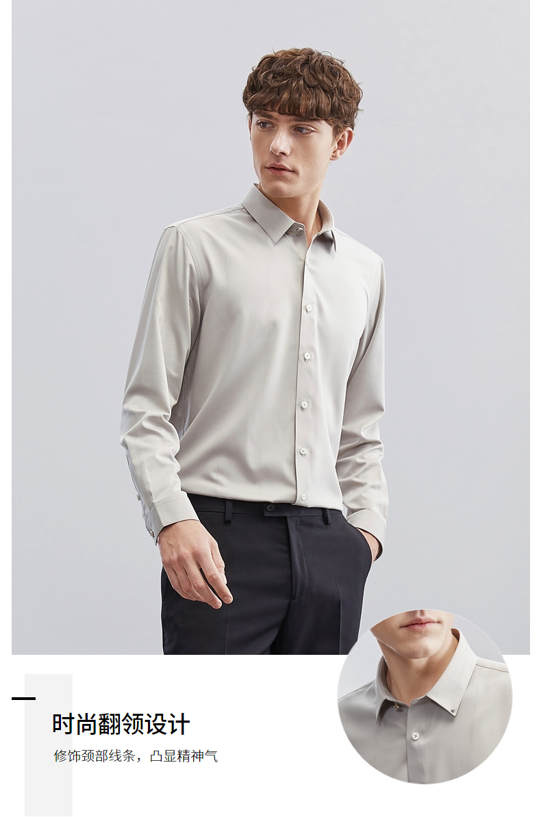 【特价】柒牌长袖衬衫男春季新款舒适中青年商务休闲男装翻领印花衬衣 124A70830
